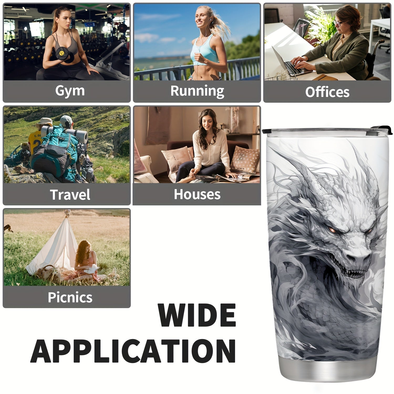3D ajdaho dizayni bilan bezatilgan zanglamaydigan po'latdan yasalgan tumbler, oqim o'tkazmaydigan va BPA dan holi. Tashqi faoliyatlar uchun vakuum izolyatsiyalangan. Bayramlar va tug'ilgan kunlar uchun ideal sovg'a.