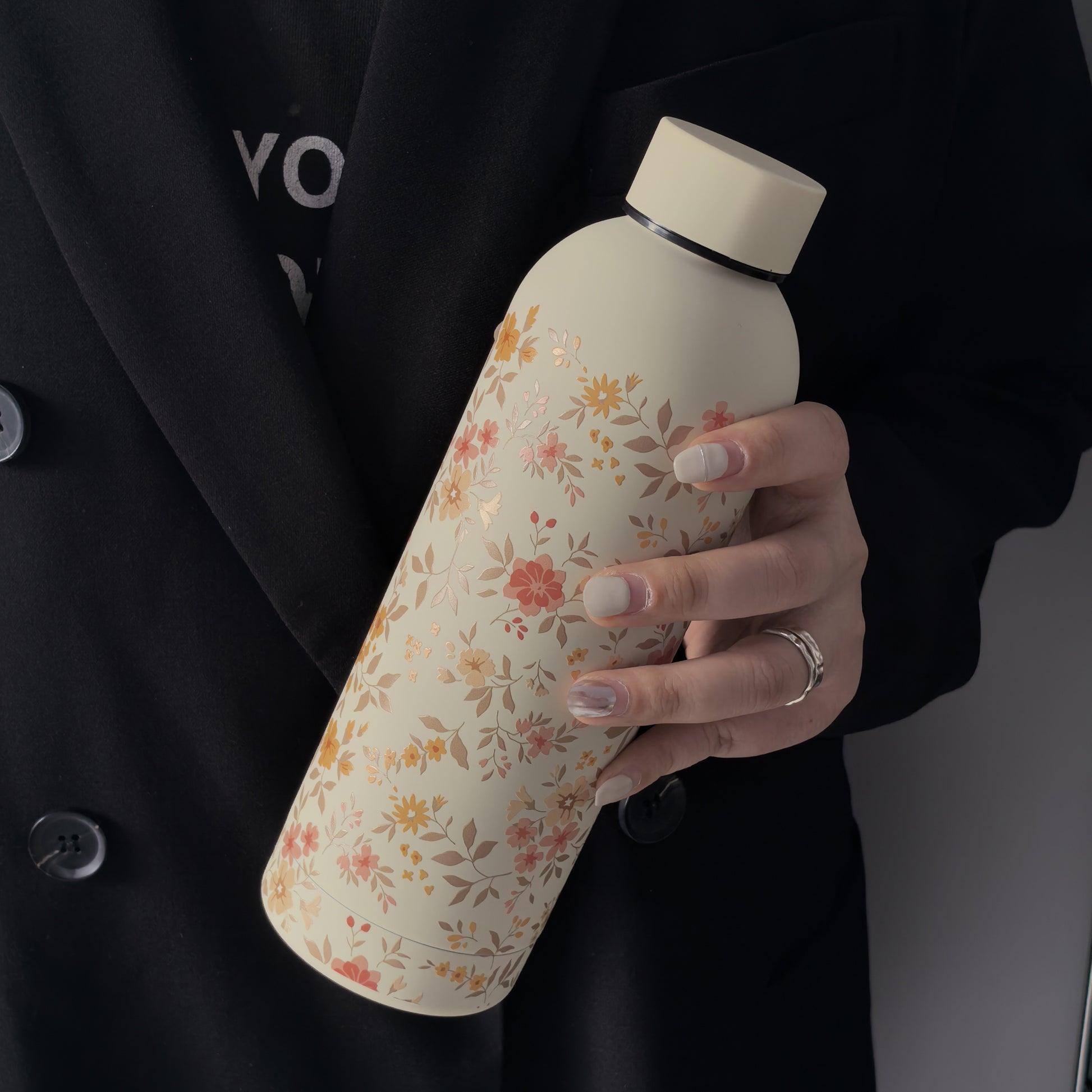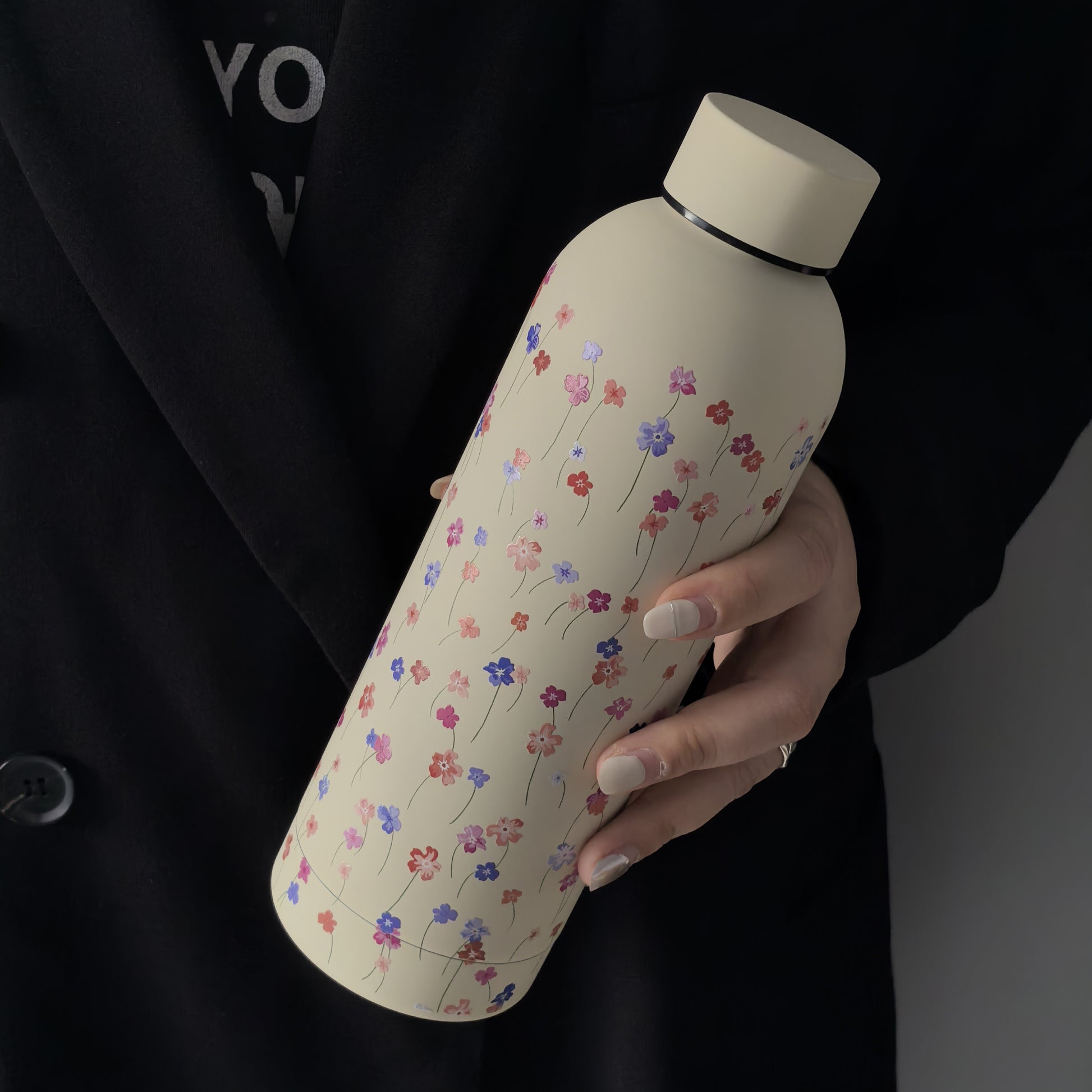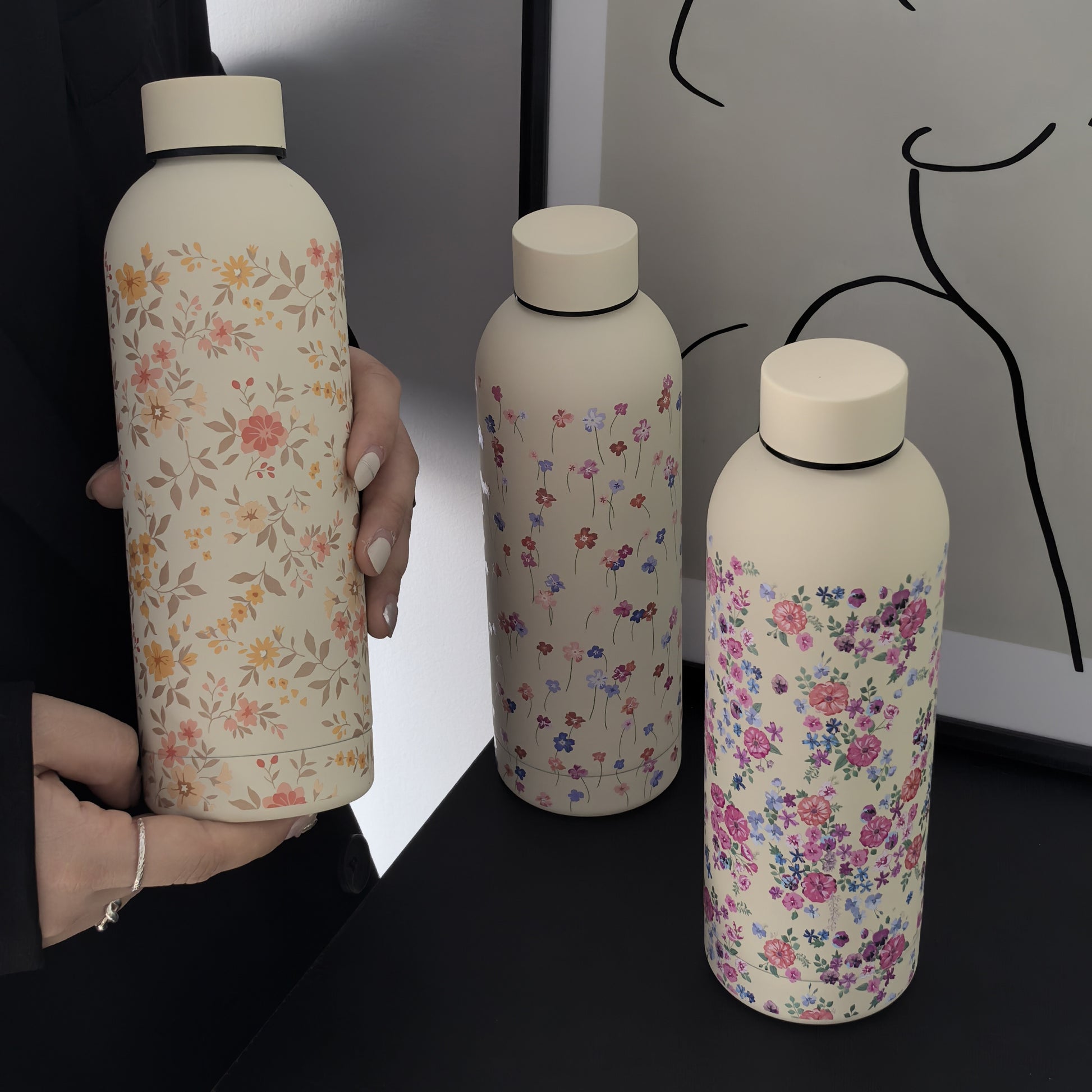 Noxud qotishdan yasalgan suv shishasi, 500ml, gullar dizayni, issiq va sovuq ichimliklar uchun izolyatsiyalangan, sayohat/sport/zahiralar uchun ideal, faqat qo'l bilan yuvish, ajoyib sovg'a tanlovi.