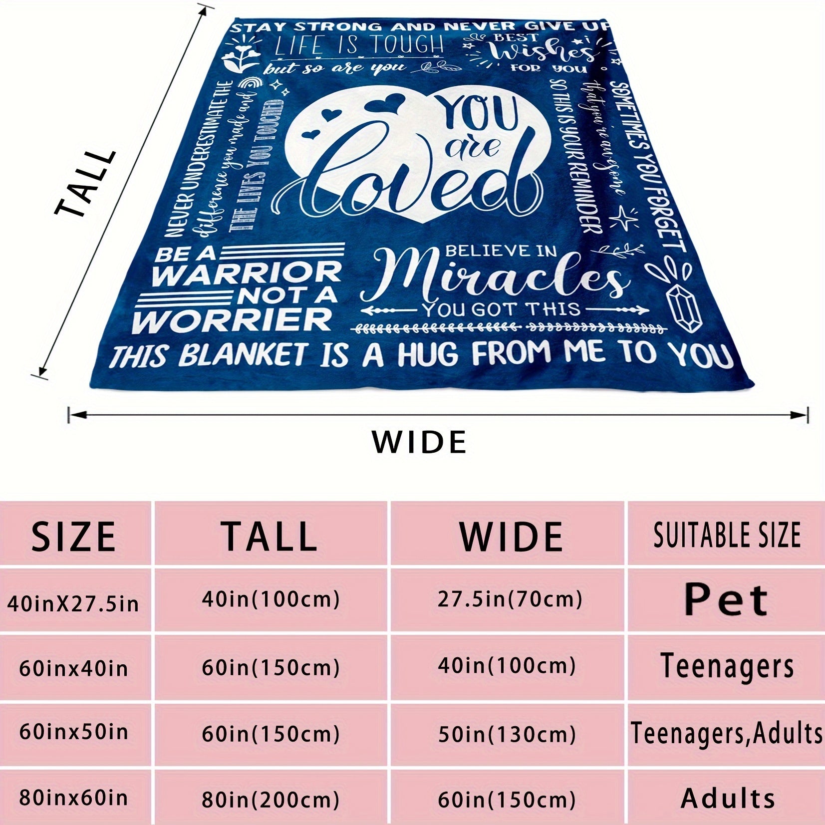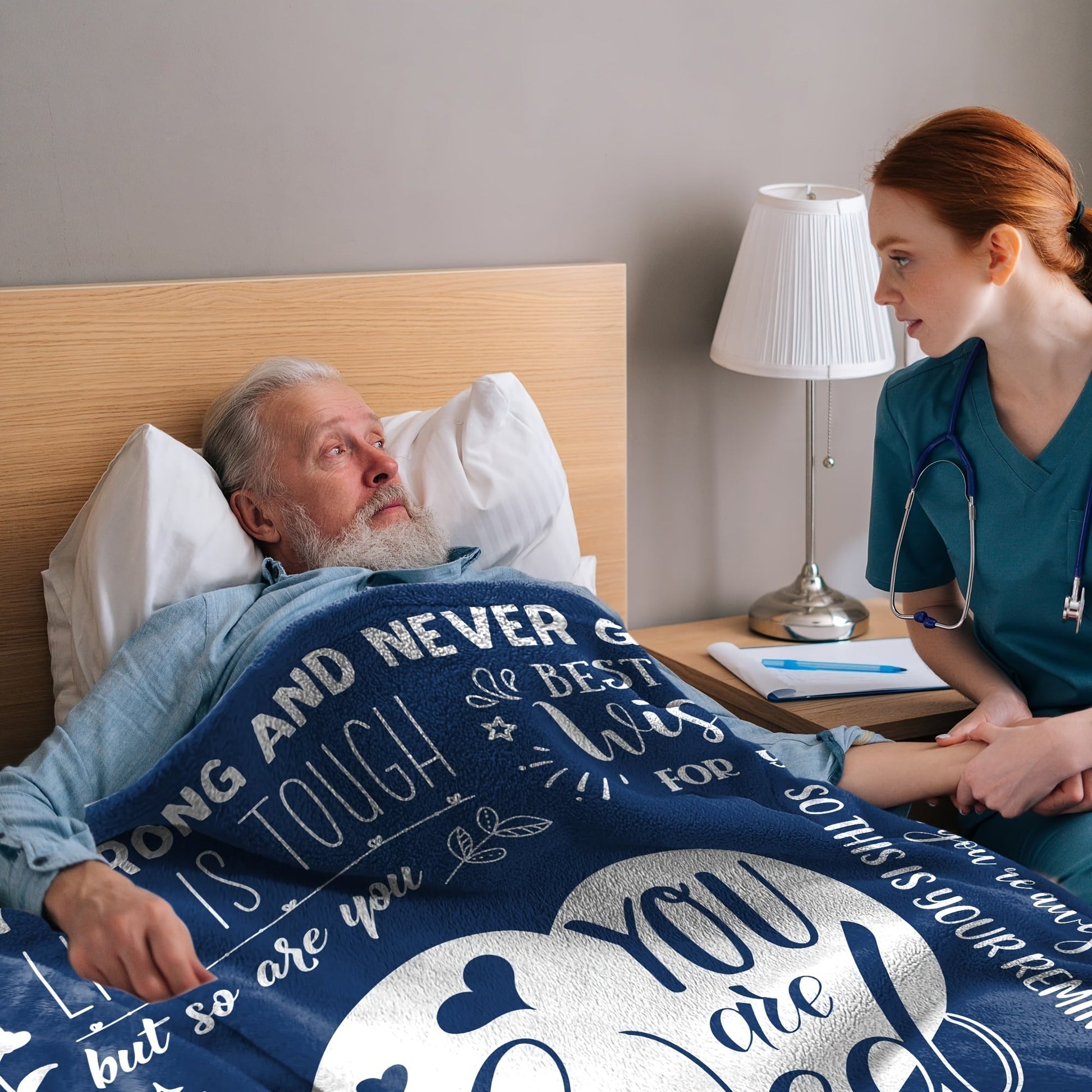 Qayta tiklanish va quchoqlash uchun rag'batlantiruvchi xabarlar bilan ko'k Flanel yostiqchasi
