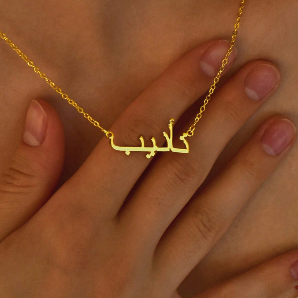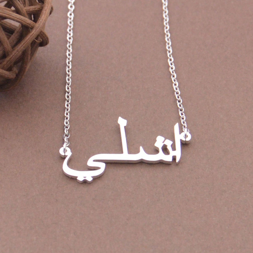 Kundalik kiyish uchun uniseks rostlangan zanglamaydigan po'latdan yasalgan arabcha ismli taqinchoq taqilishi