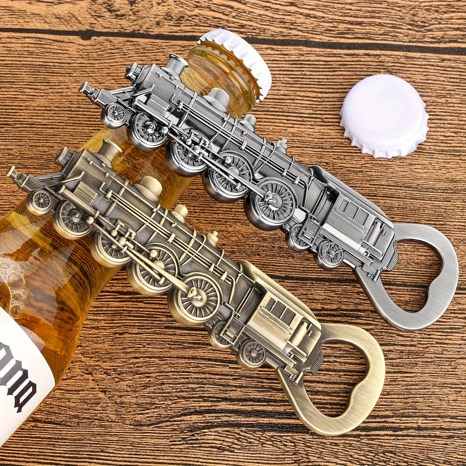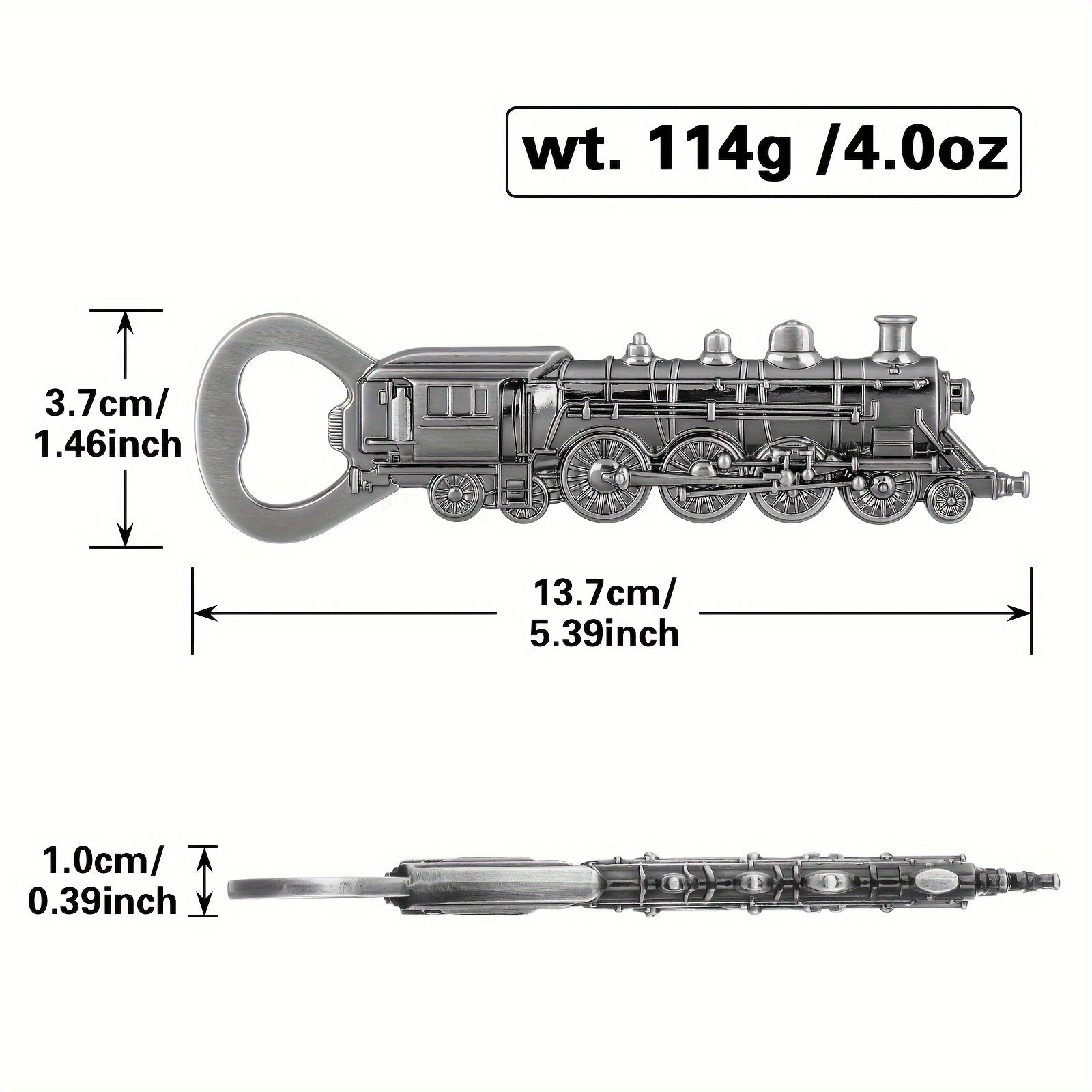 Temir yo'l lokomotivi shaklidagi shisha ochgich, pivo, vino va sharbatlar uchun mo'ljallangan, barlar, klublar, restoranlar, uy barlari va yozgi ichimliklar uchun ideal, ipak sumkada.