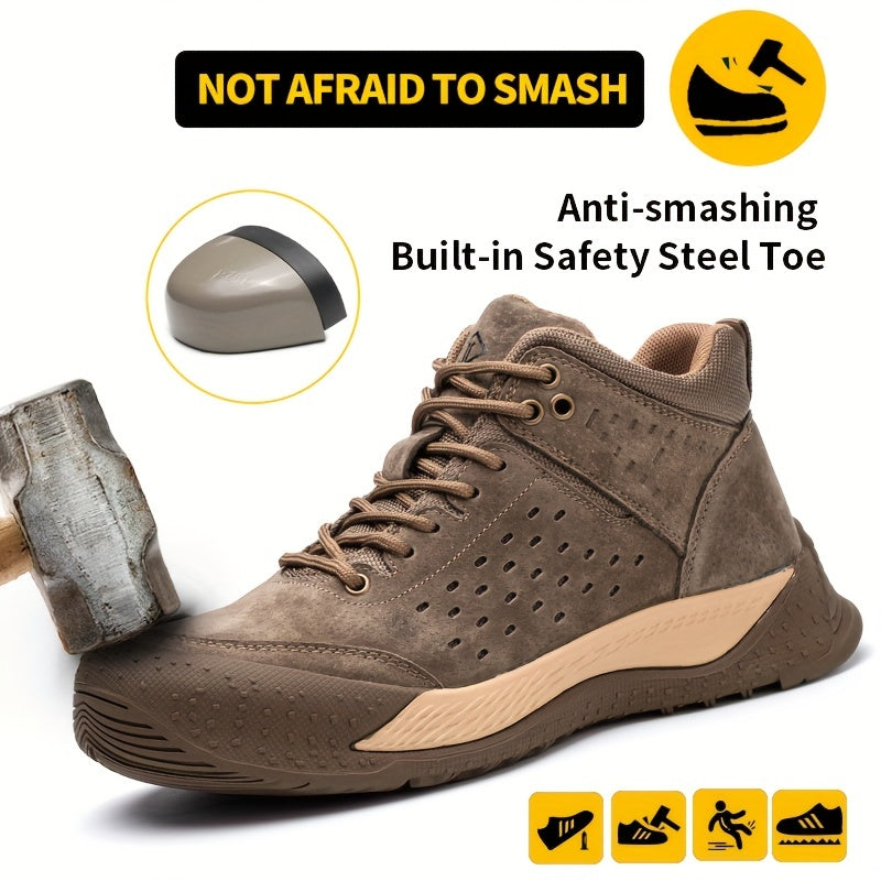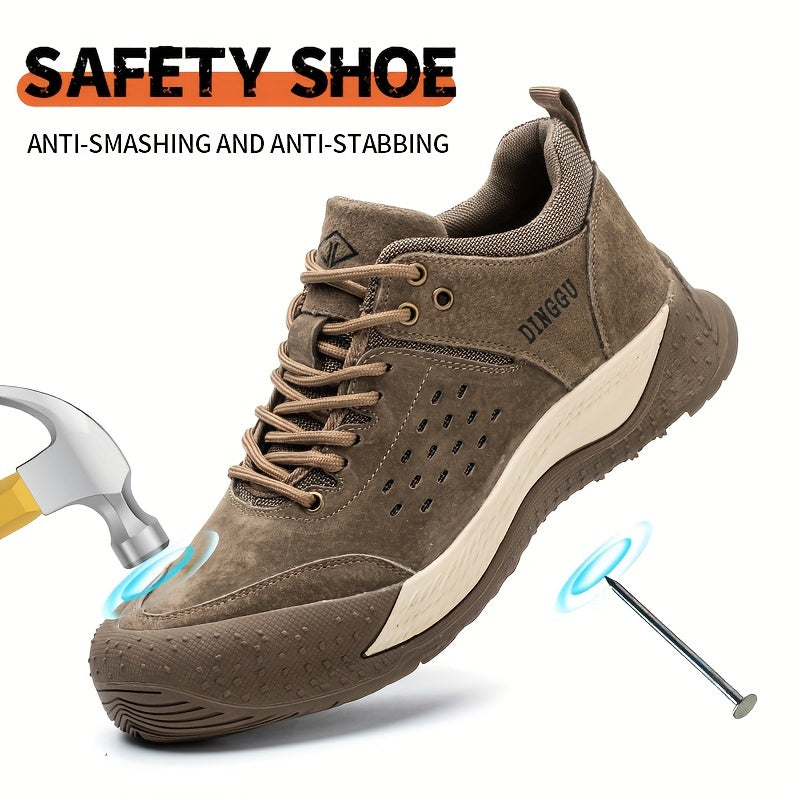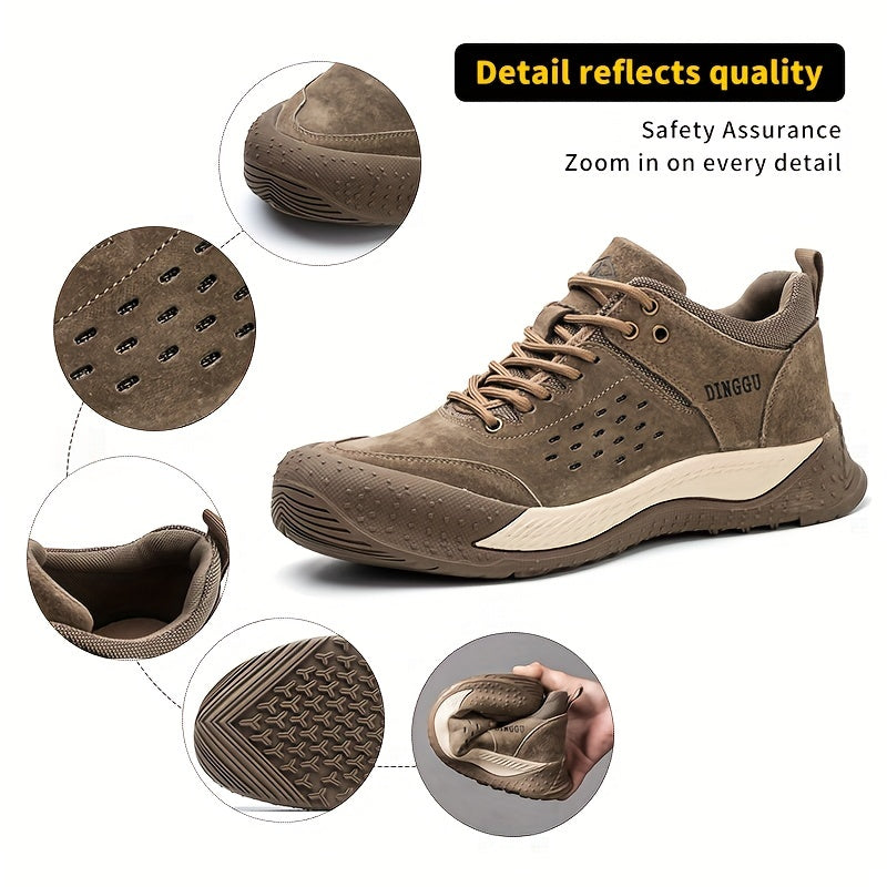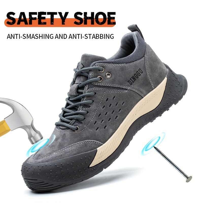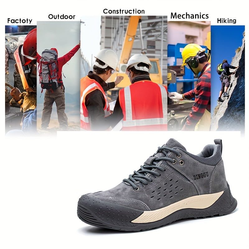 Sanoat xavfsizligi uchun teshilmas tagliklar, sirpanmas, bosilmas va teshilmas xususiyatlarga ega po'lat barmoqli ish botinkalari.