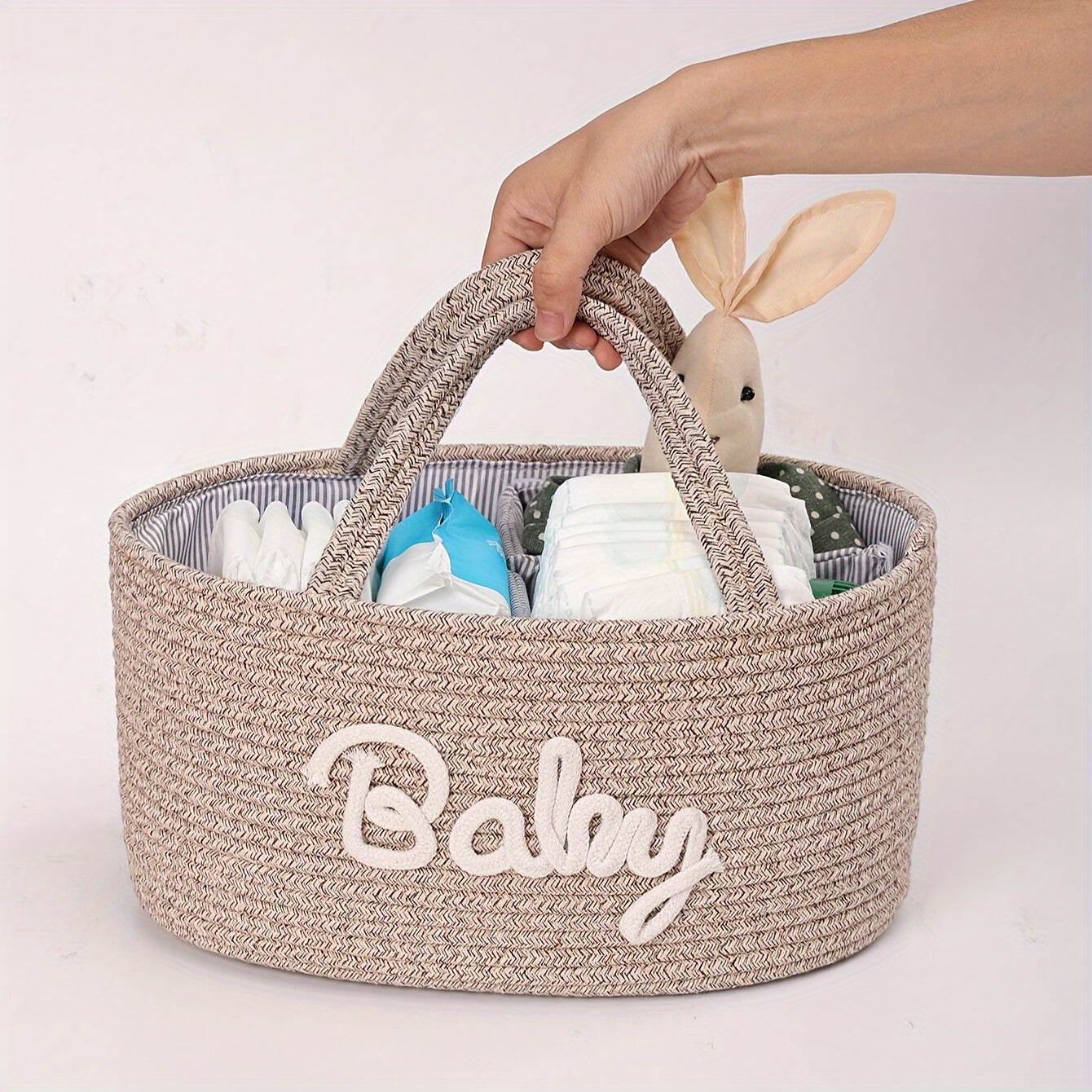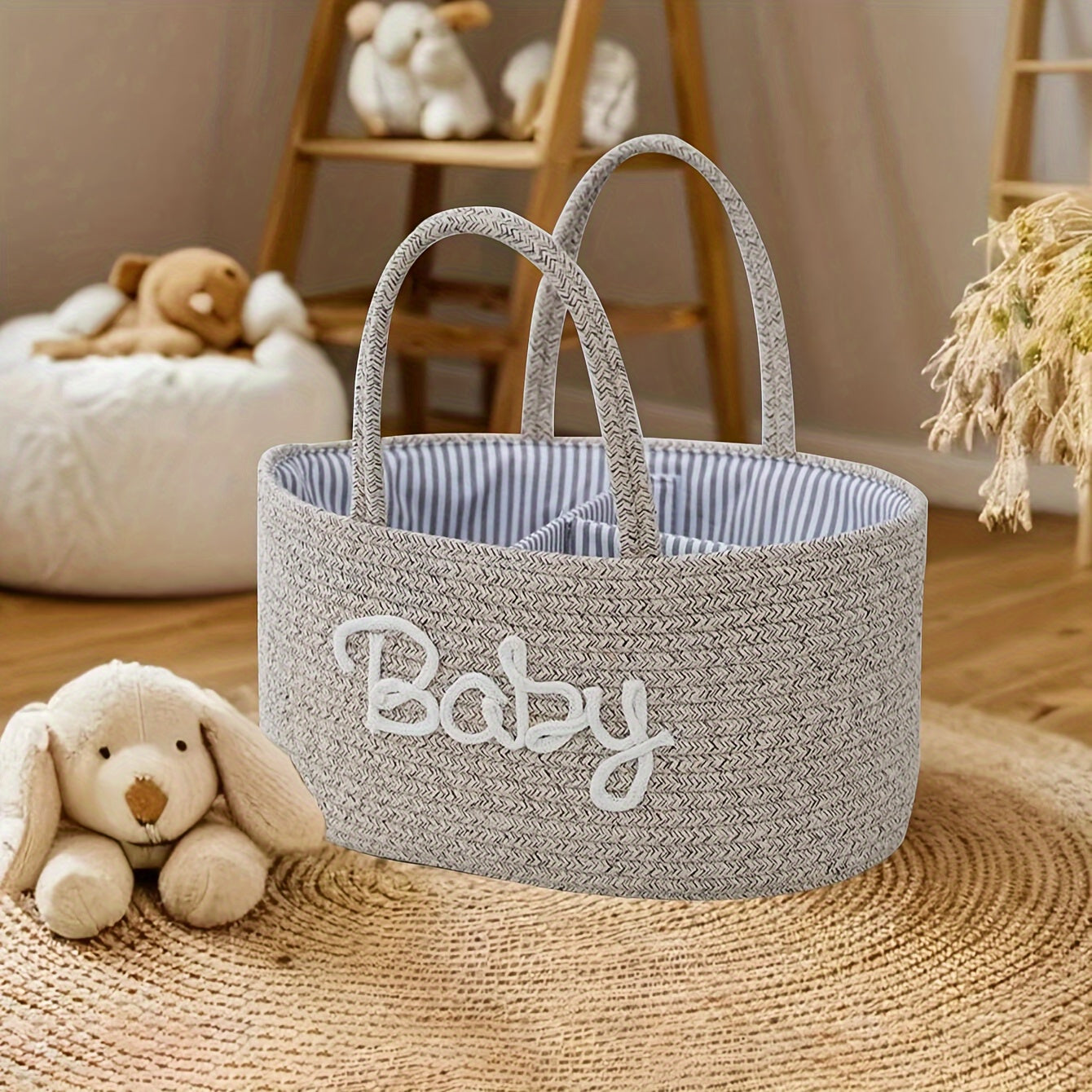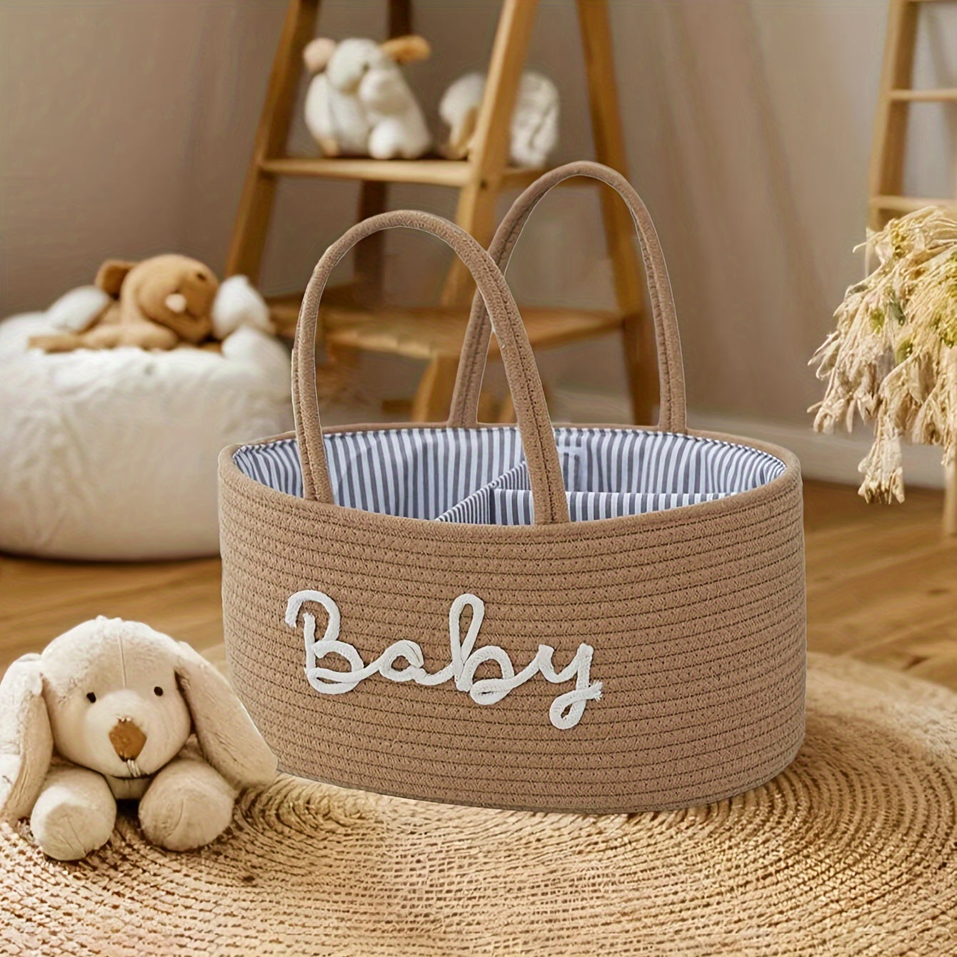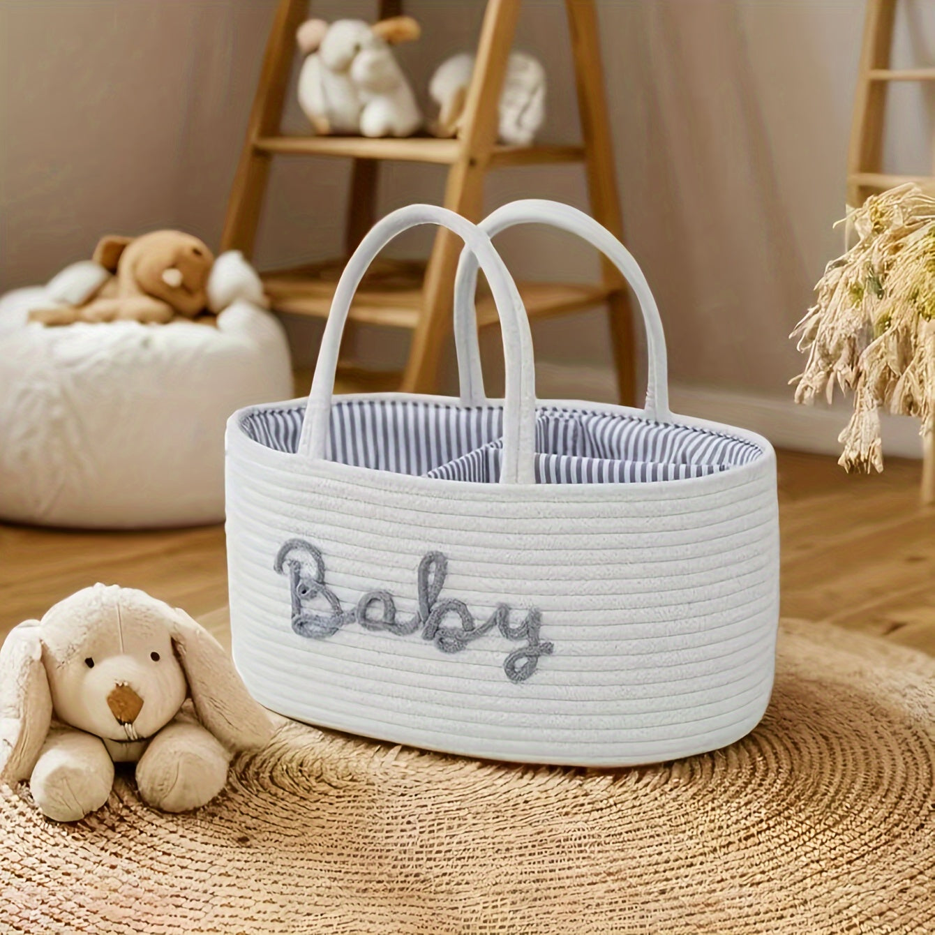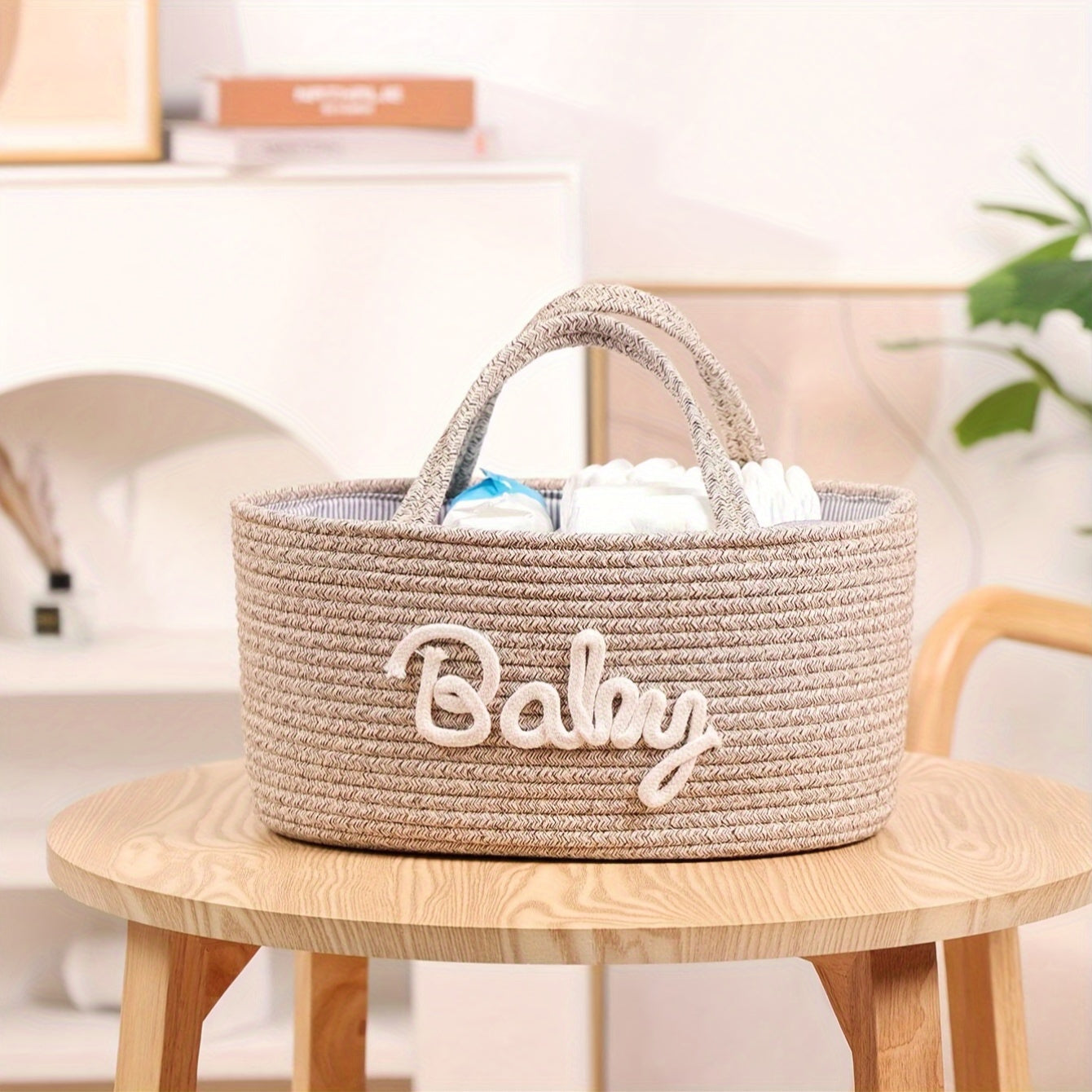 Paxta ipi saqlash savati, ajraladigan ichki qismi va harflar bilan dizayni bilan qo‘l ushlash uchun tashkilotchi