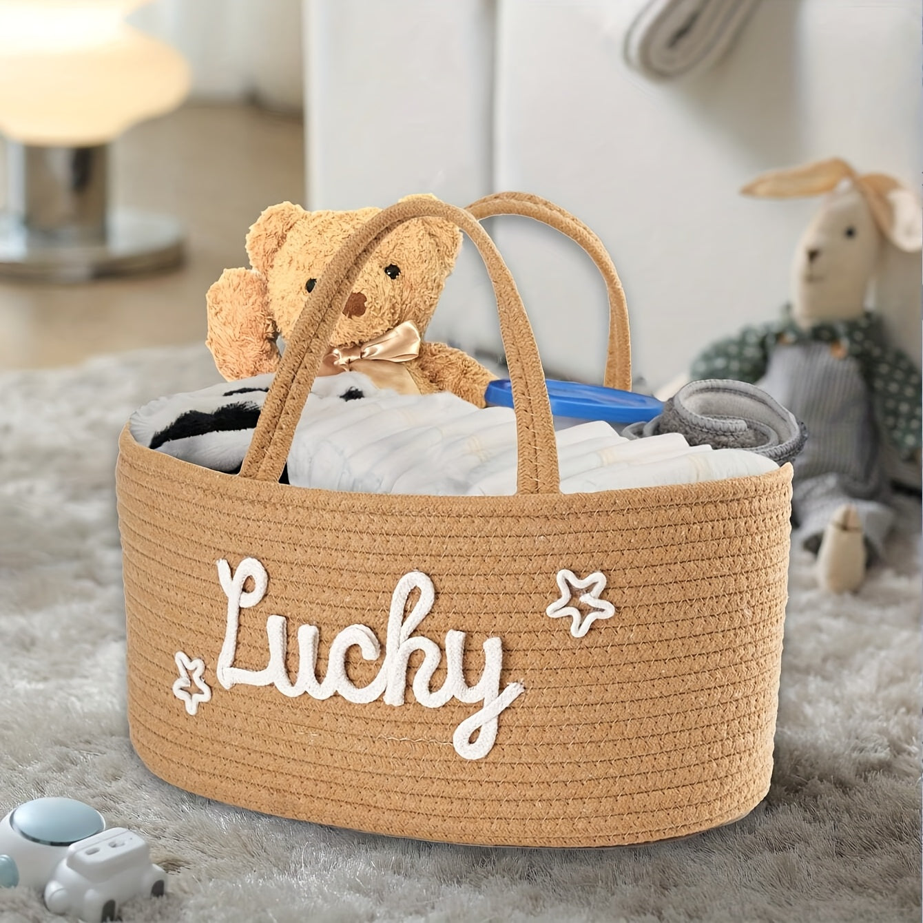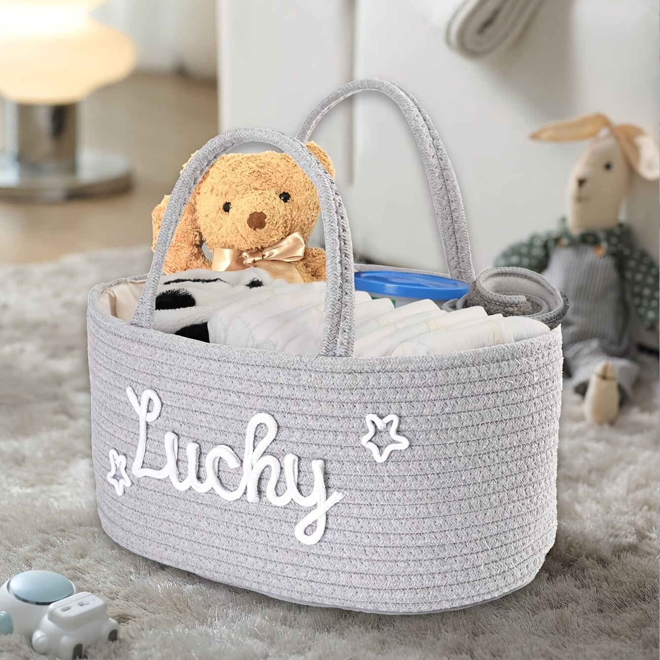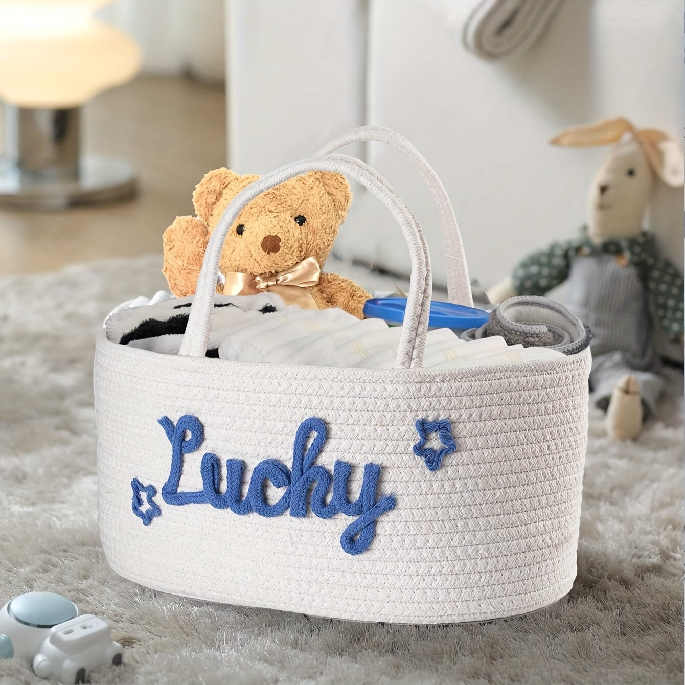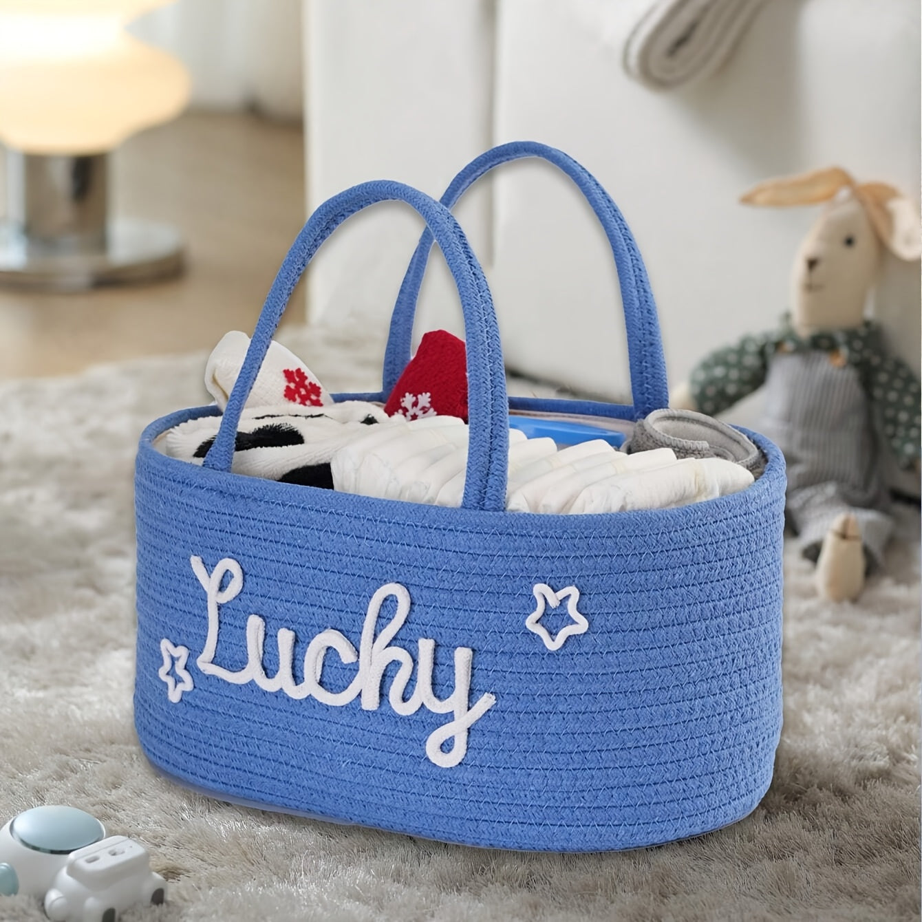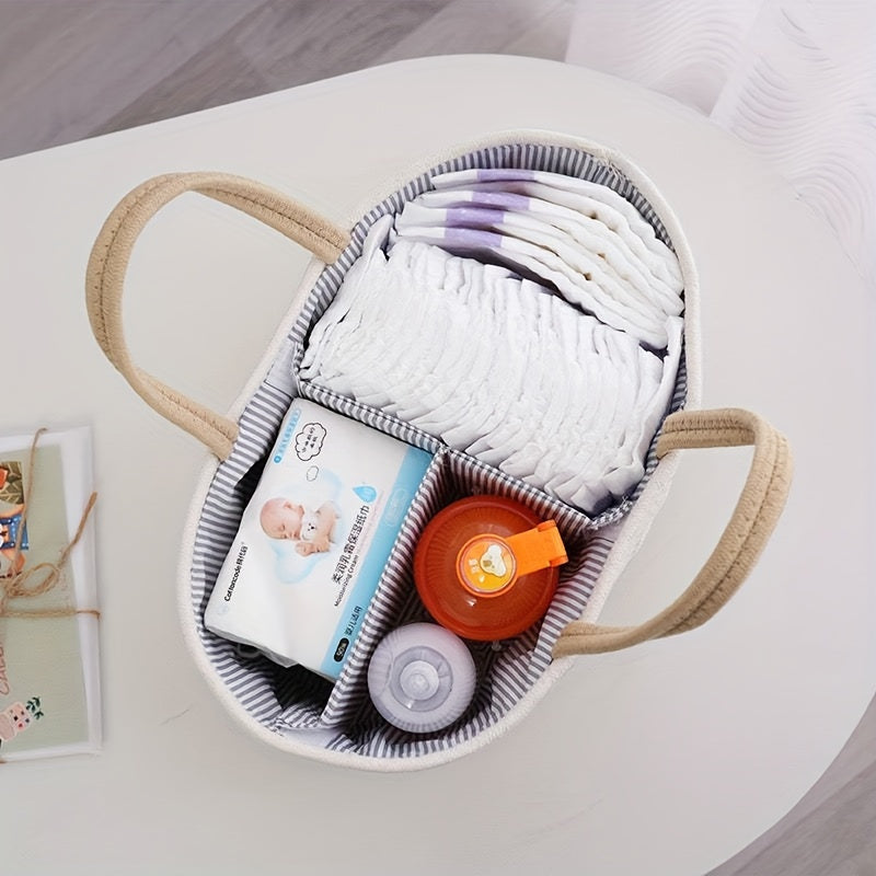 Paxta ipi saqlash savati, ajraladigan ichki qismi va harflar bilan dizayni bilan qo‘l ushlash uchun tashkilotchi