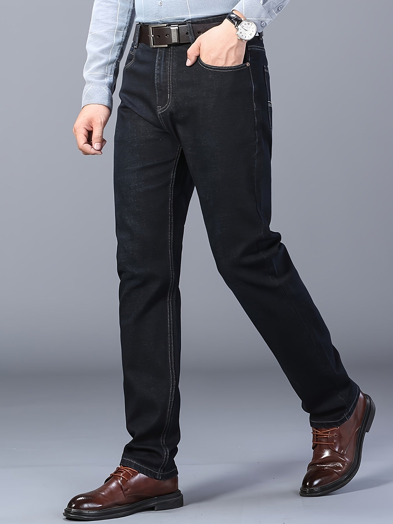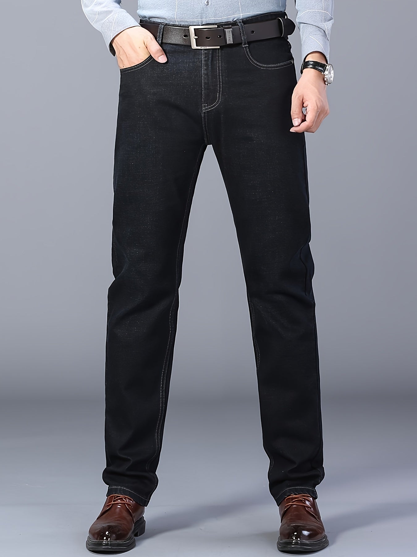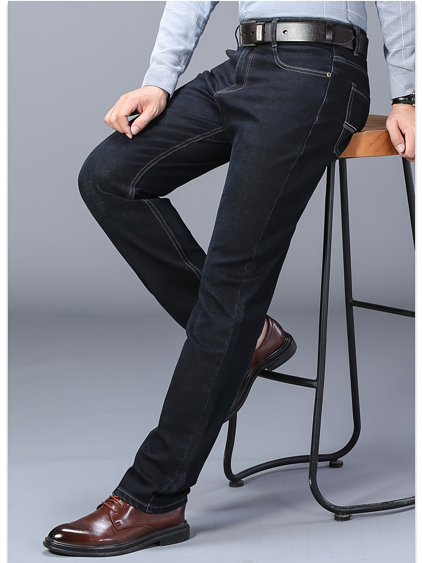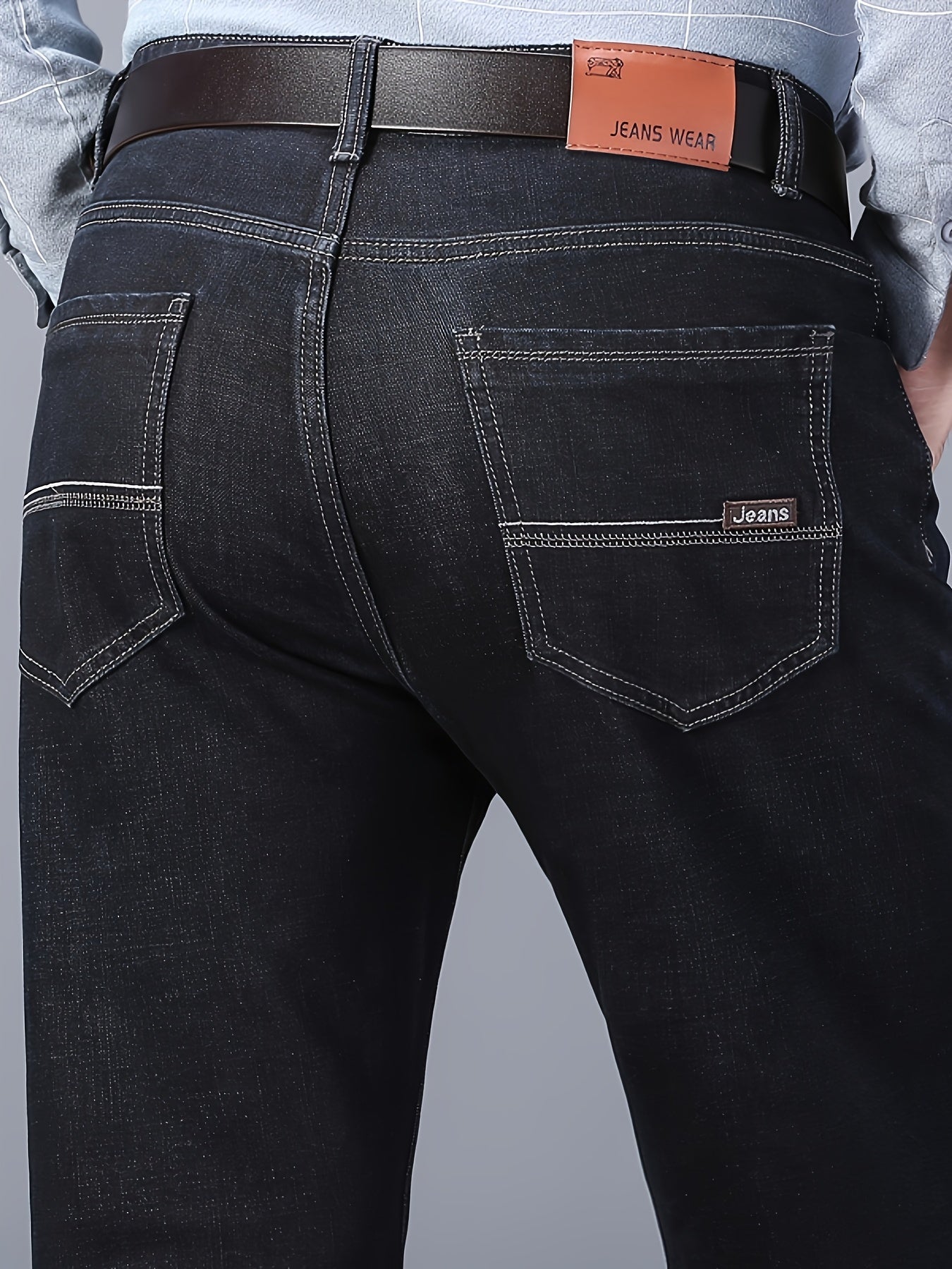 To'g'ri oyoq denim jinsi shimlar, klassik dizayn, biznes va dam olish kiyimlarida ko'p qirrali bo'lishi uchun biroz cho'ziluvchan.