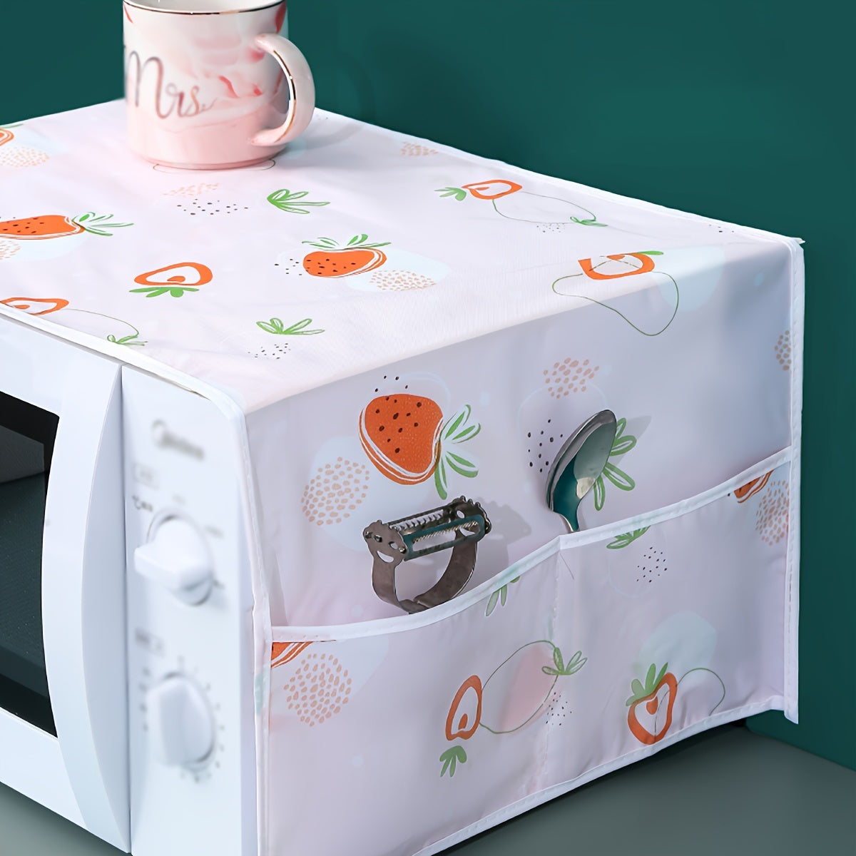 "Qizilchali va Yurak naqshli PVC mikroto'lqinli pechka chang qopqog'i - Suv o'tkazmaydigan va yog' o'tkazmaydigan, pushti va oq rangda, cho'ntak detali bilan, uy jihozlari himoyachisi"