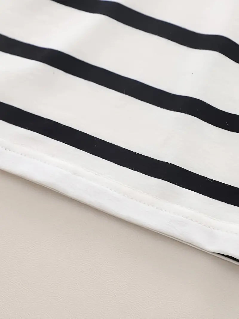 Yoz uchun mukammal, nafas oladigan polyester aralashmasidan yasalgan bolalar uchun chiziqli ko'ylaklar.