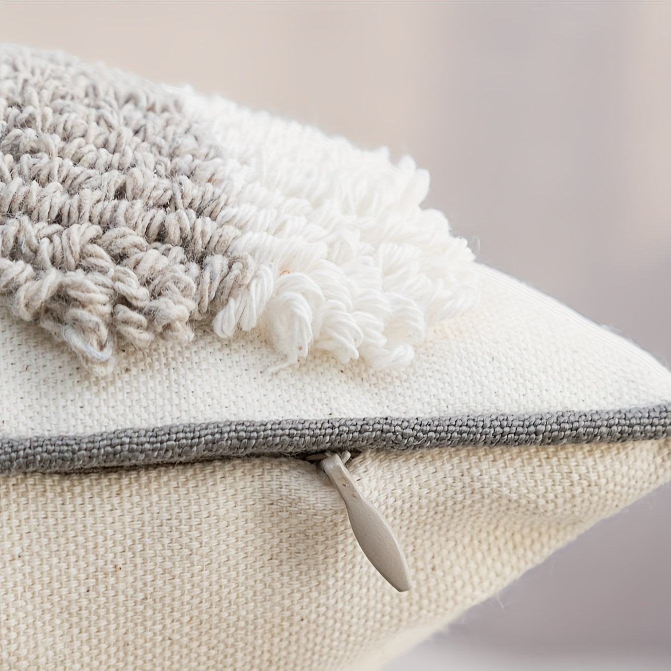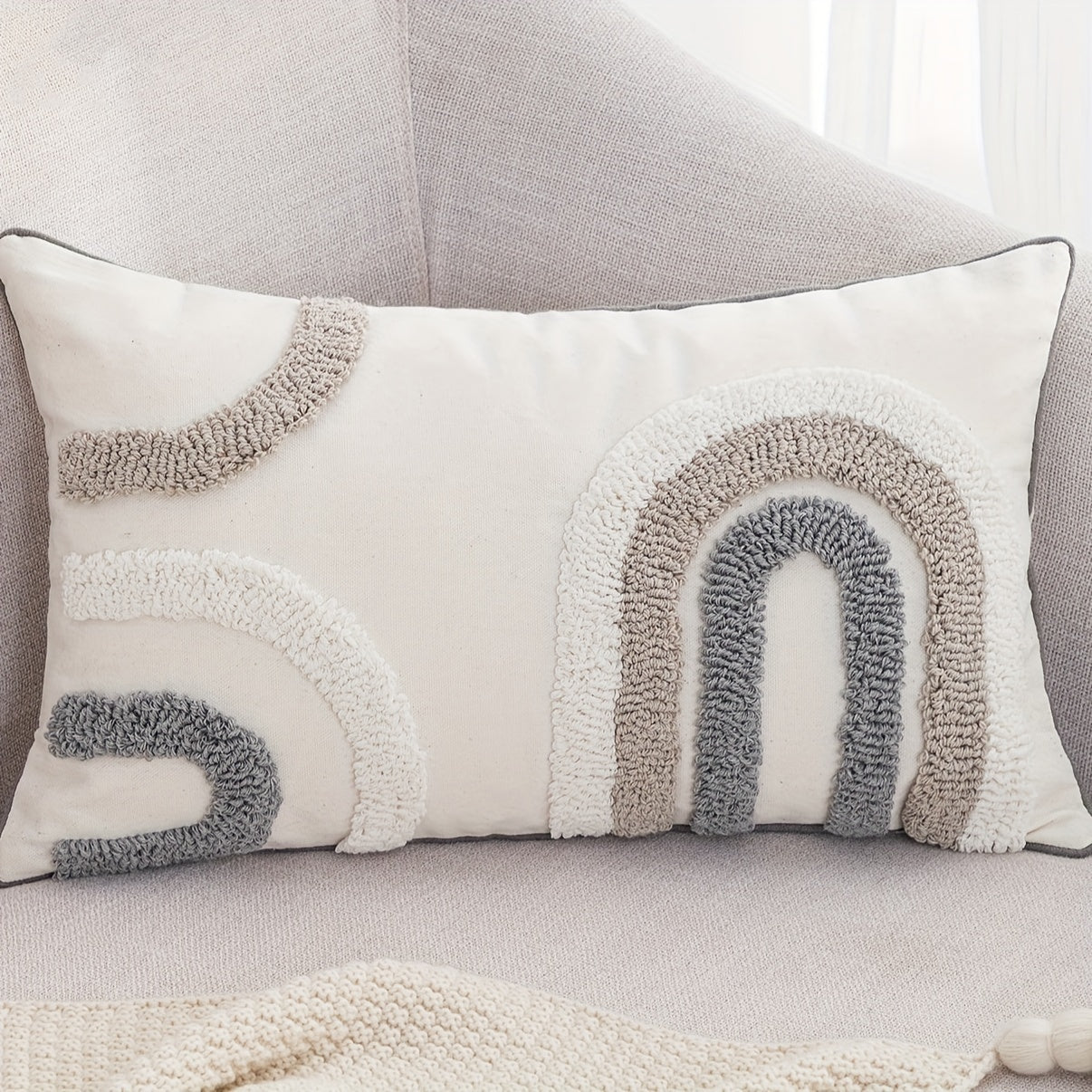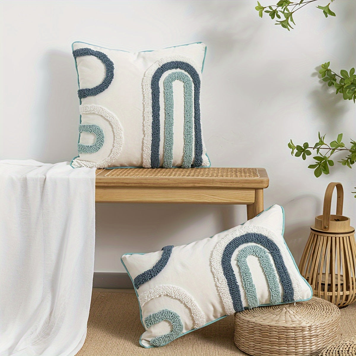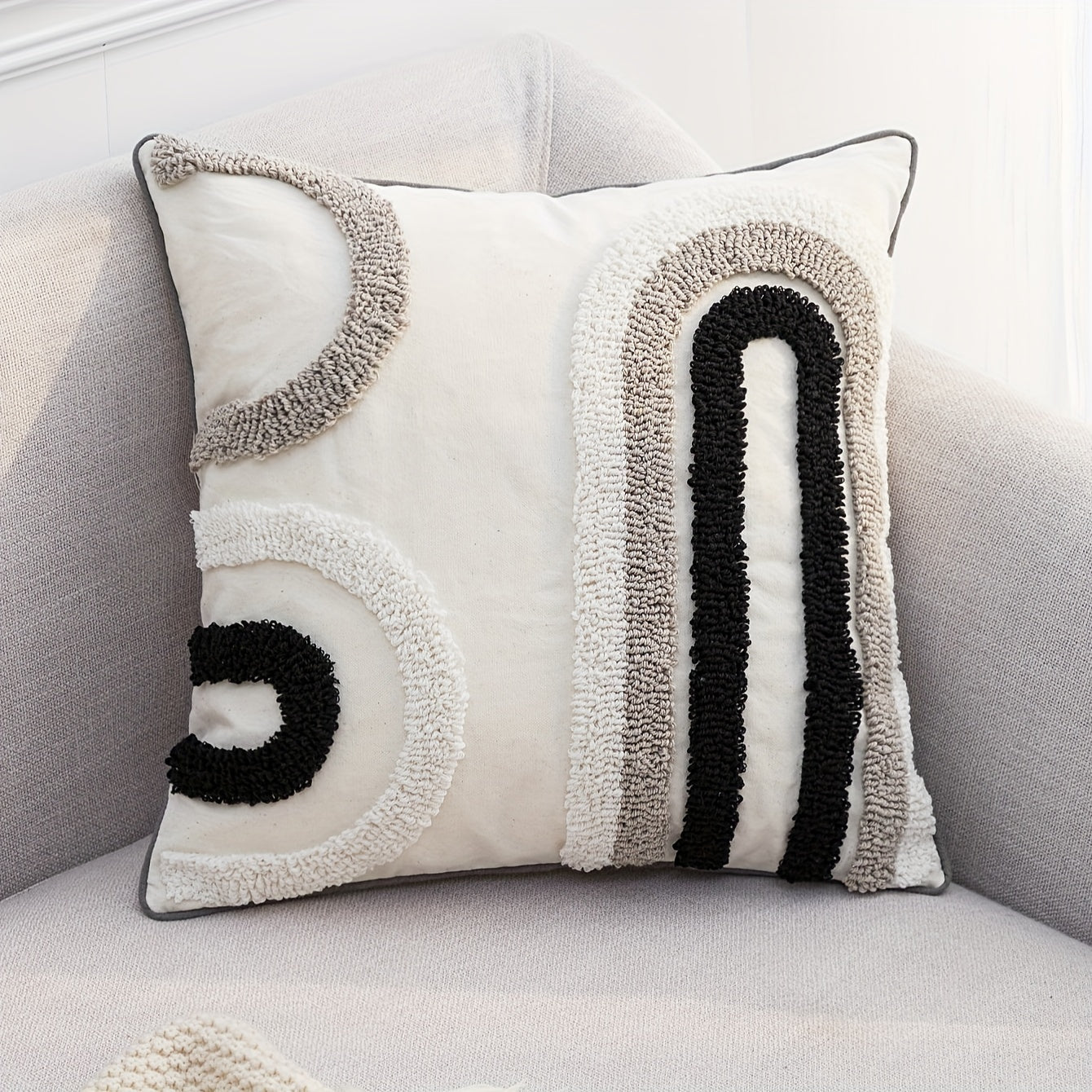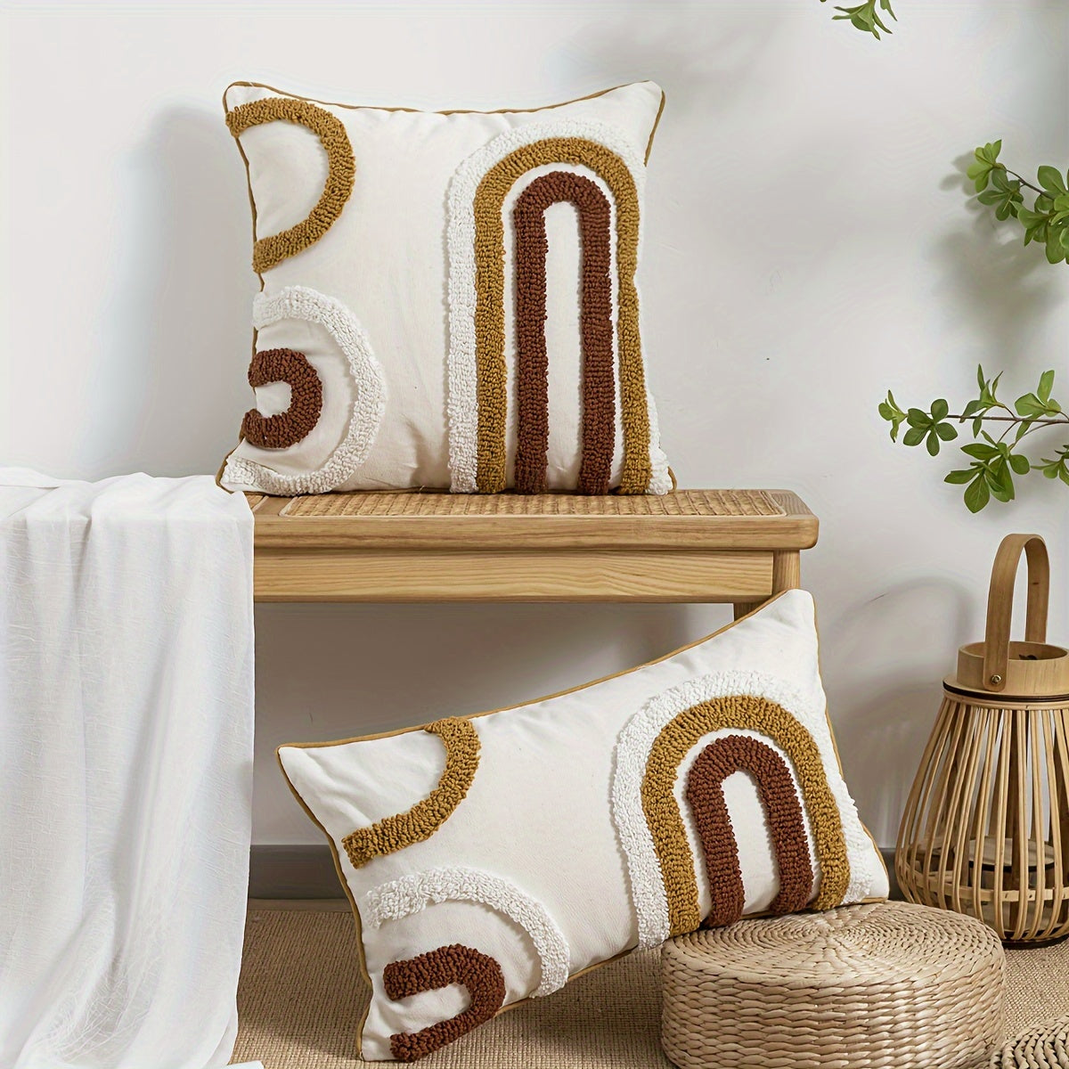 Skandinaviya bohem uslubida chiziqli U-shaklidagi yostiq qopqog'i, yotoqxona va yashash xonasi divan yostiqlari uchun velur qirralar bilan tayyorlangan.