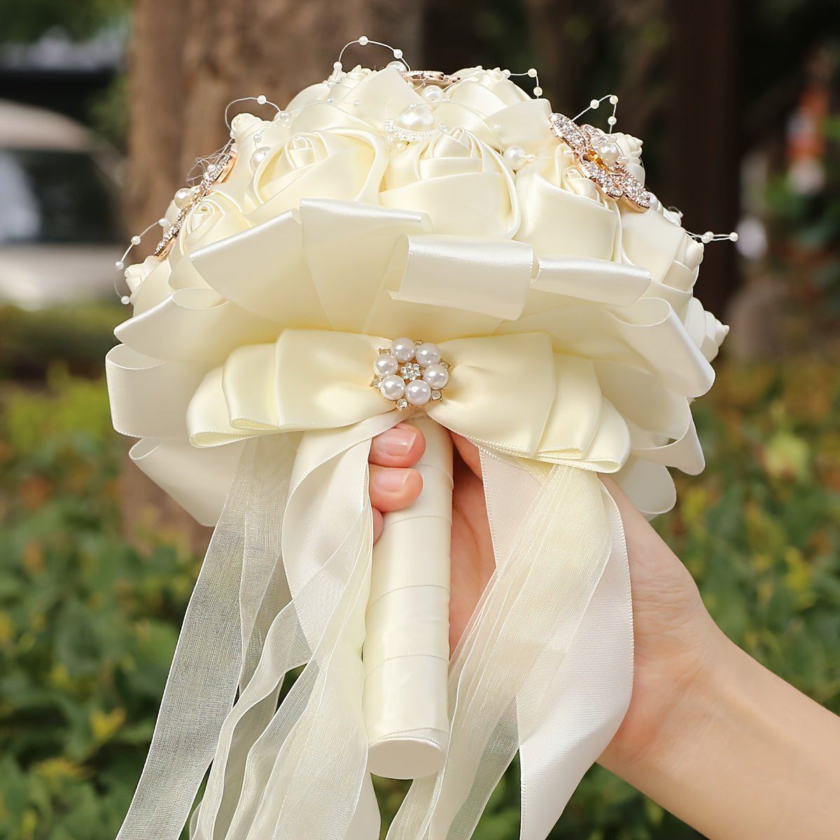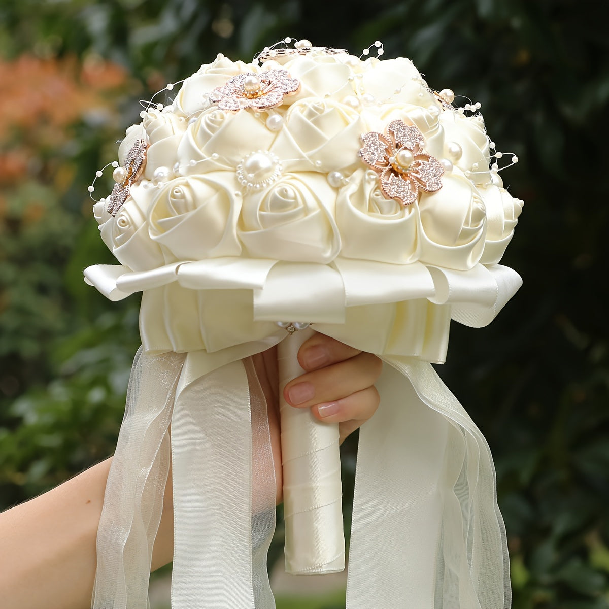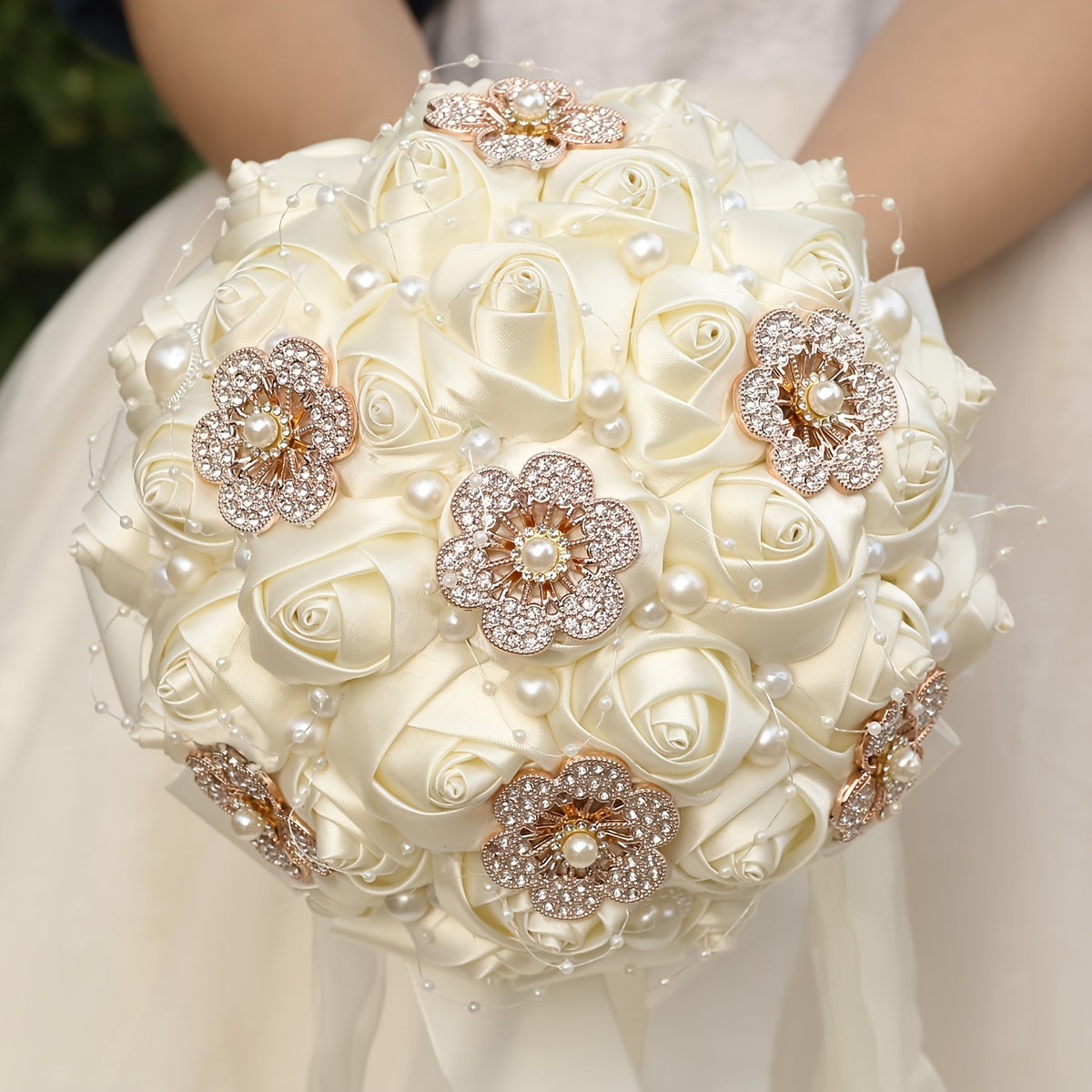 Sun'iy to'y gullari buketi, rhinestone brosh va marjonlar bilan