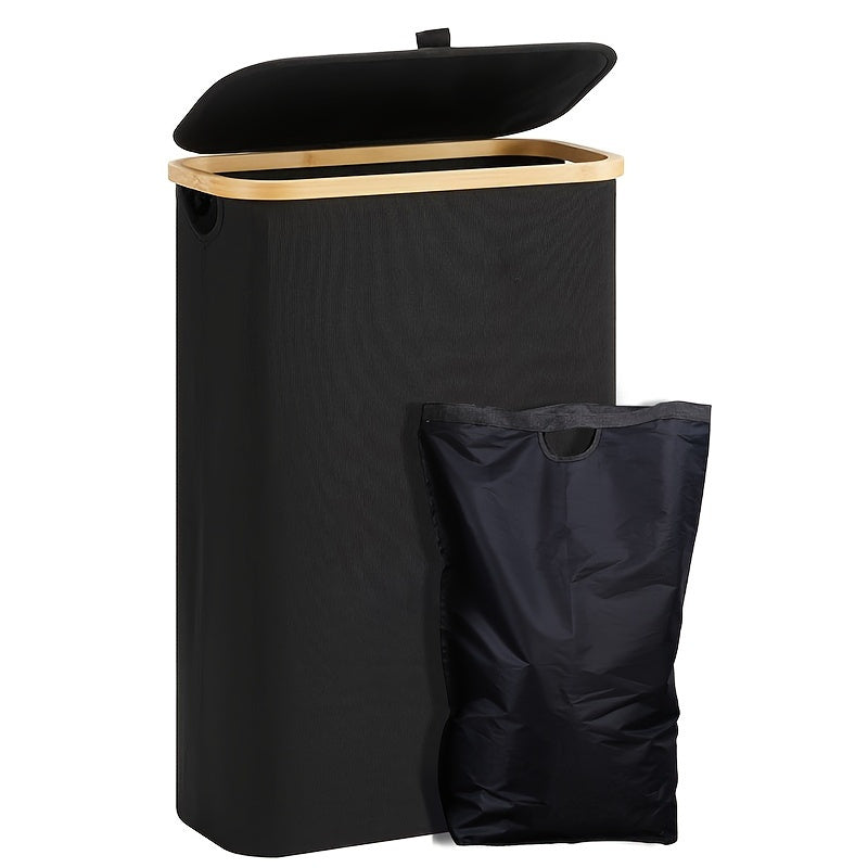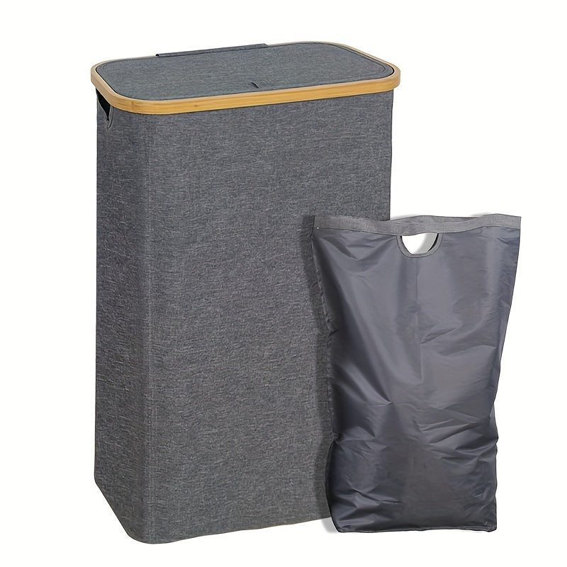 Uy saqlash uchun qopqog'i va tutqichlari bilan 60L suv o'tkazmaydigan bambuk kir yuvish qutisi