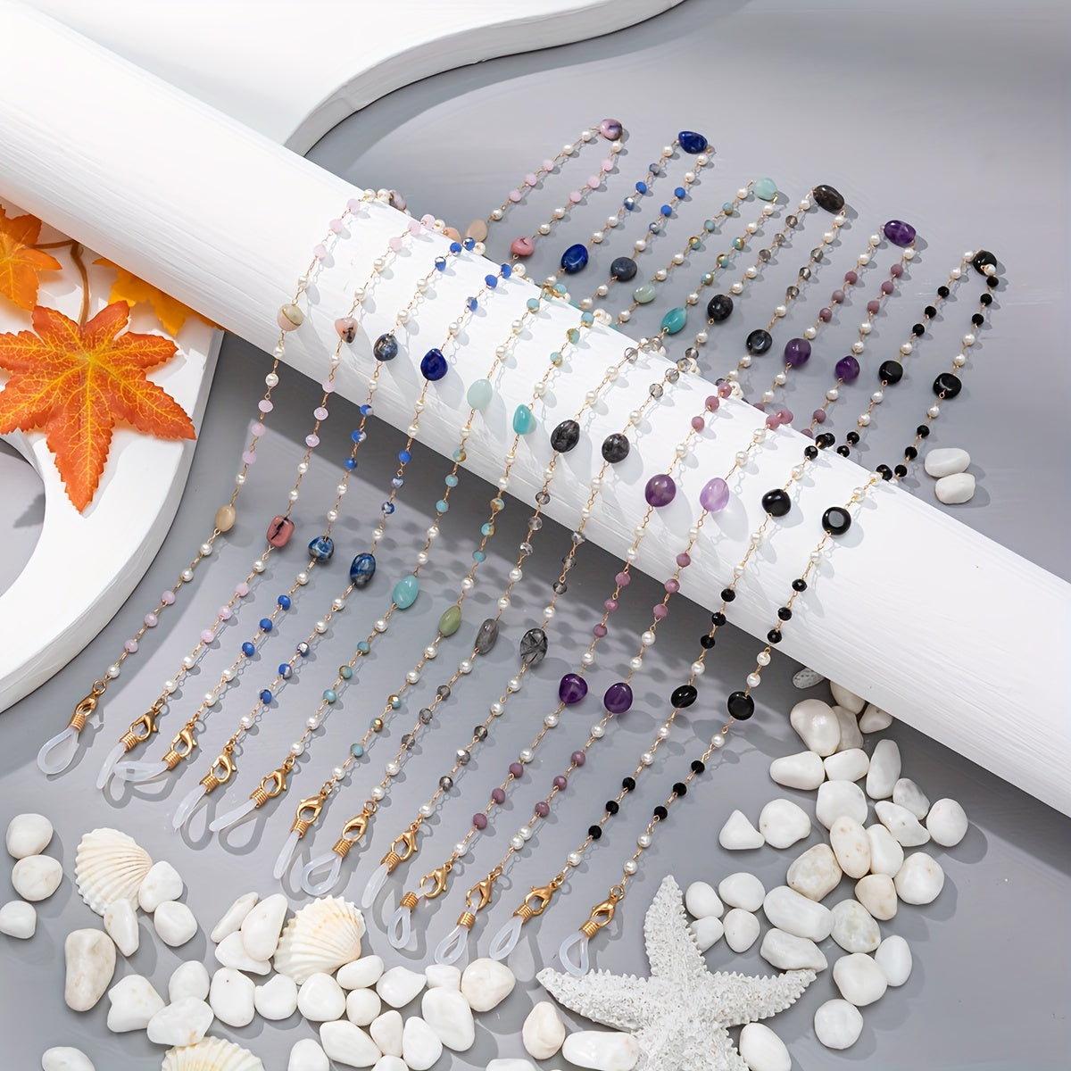 Rang-barang toshlar bilan bezatilgan shisha ko'zoynak zanjiri, quyosh ko'zoynaklari va o'qish ko'zoynaklari uchun retainer