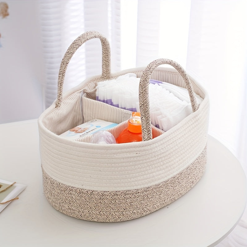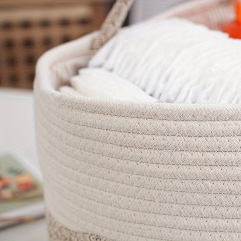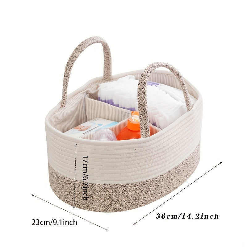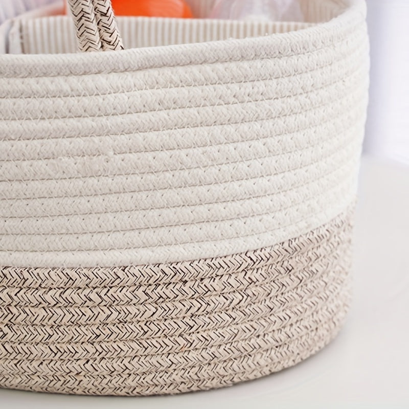 Bej toʻqilgan saqlash savati, choyshablar va muhim narsalar uchun, koʻchirish uchun ipli tashkilotchi, oʻzgartirish stoliga va kir yuvish savatlari uchun portativ.