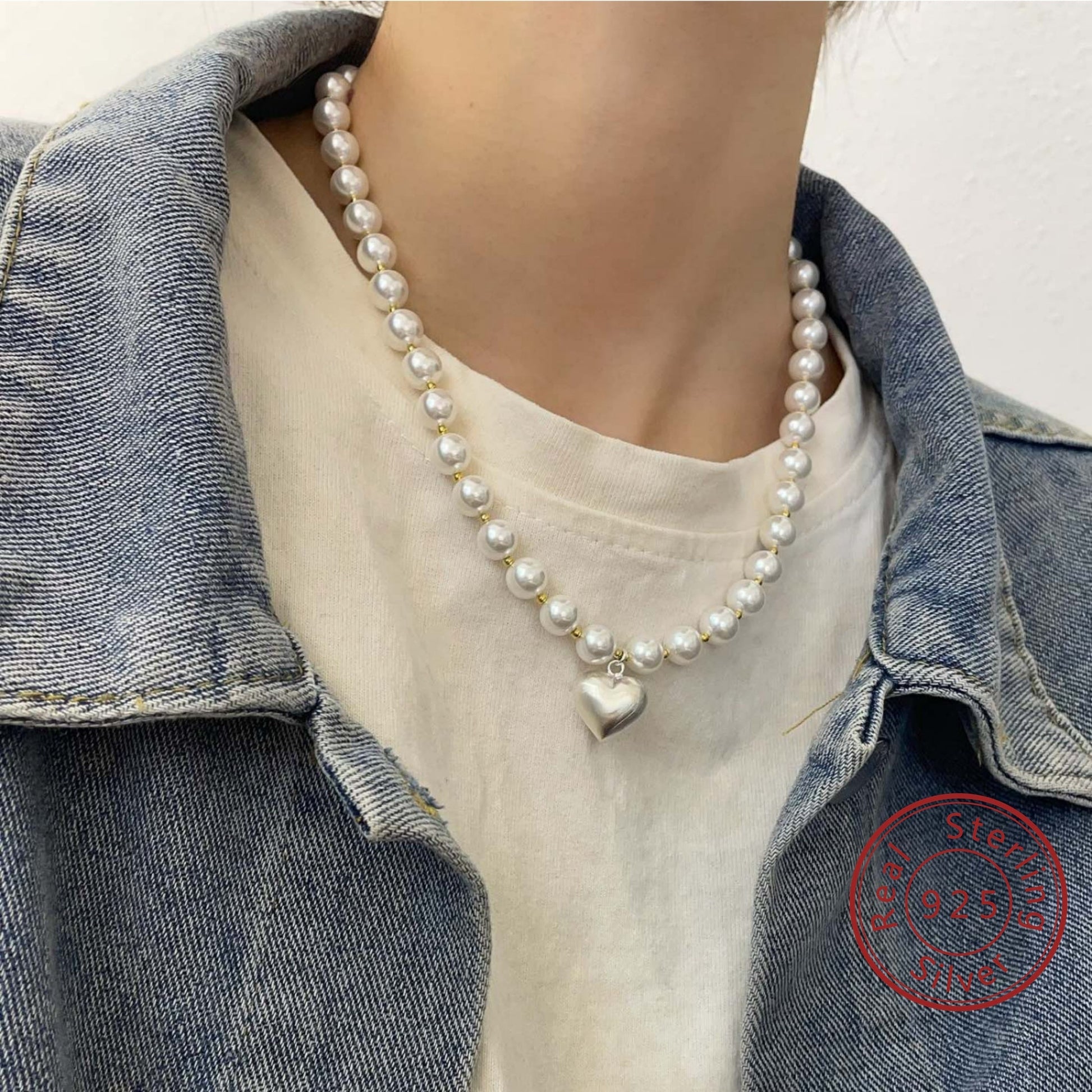 Zamonaviy Boho 925 Sterling Silver va Qobiq Beadli Marjon, Muzlatilgan Sevgi Pendanti bilan - Har kuni kiyish, sovg'a berish va maxsus tadbirlar uchun ideal