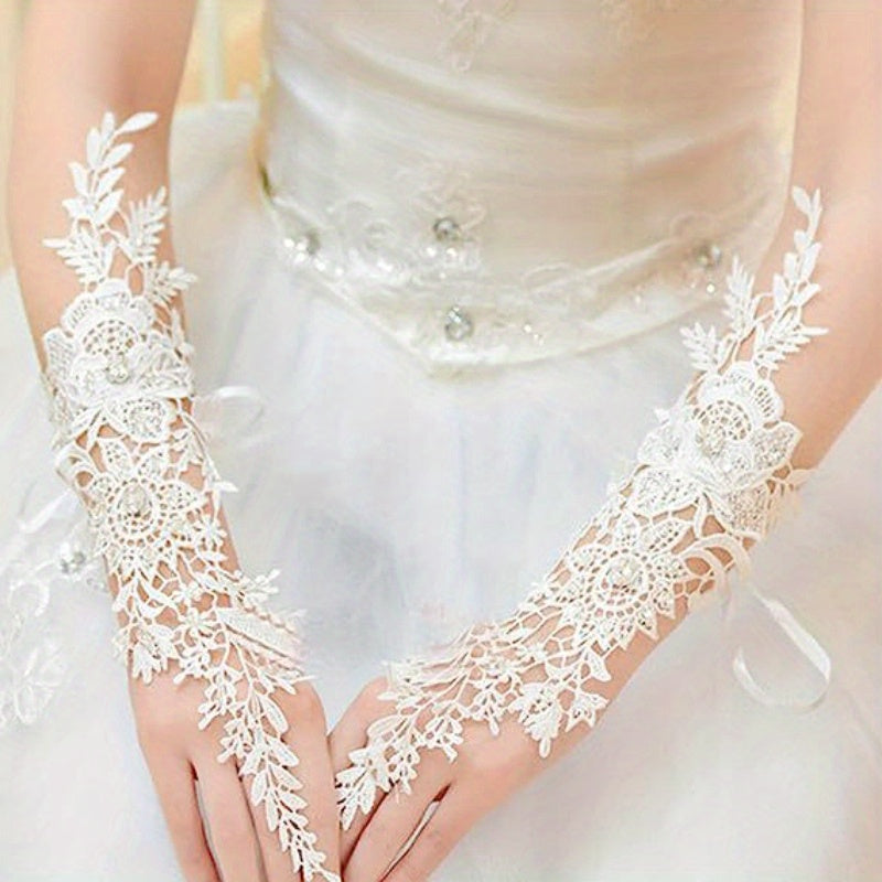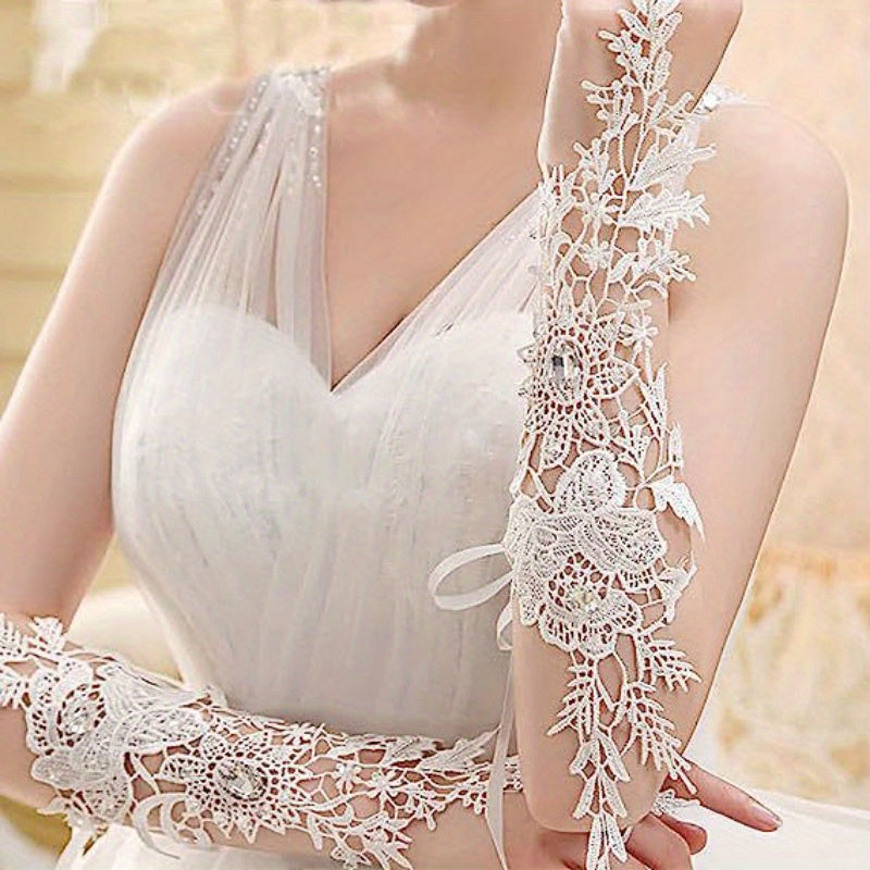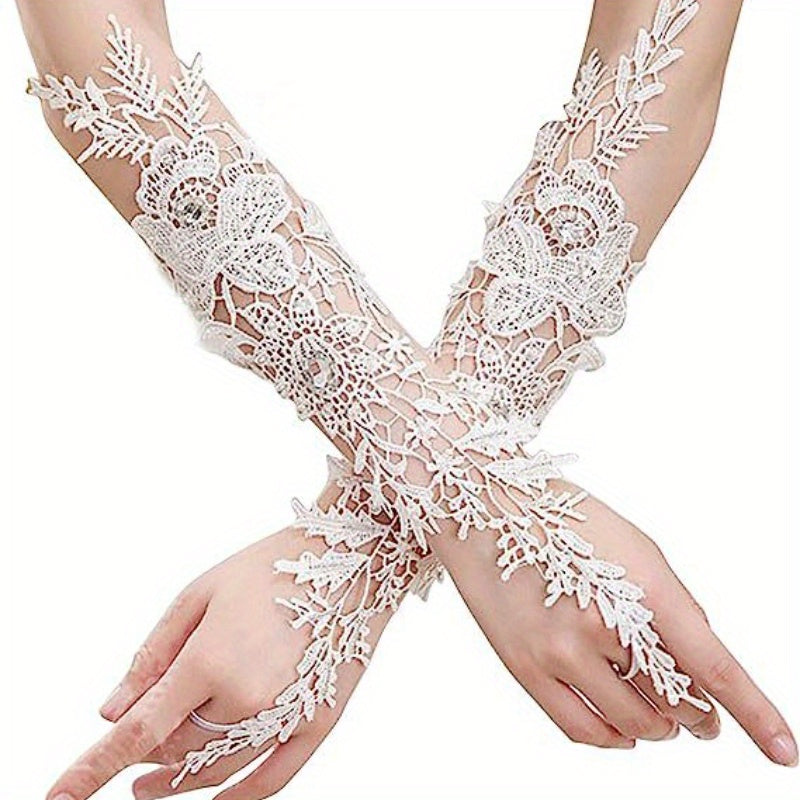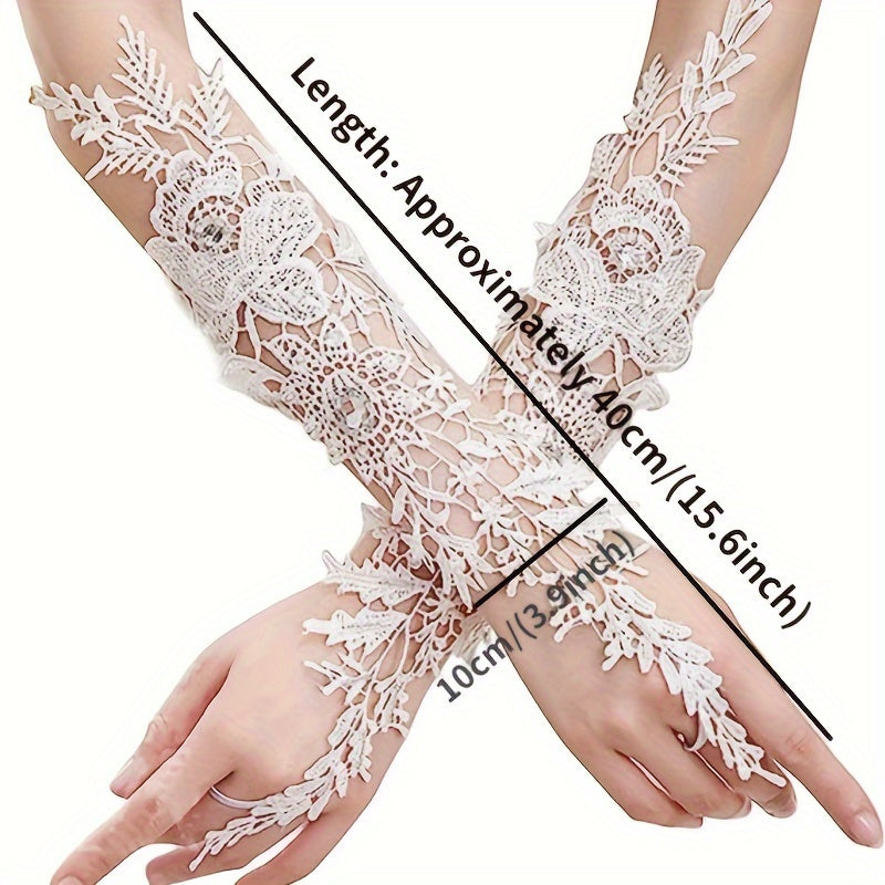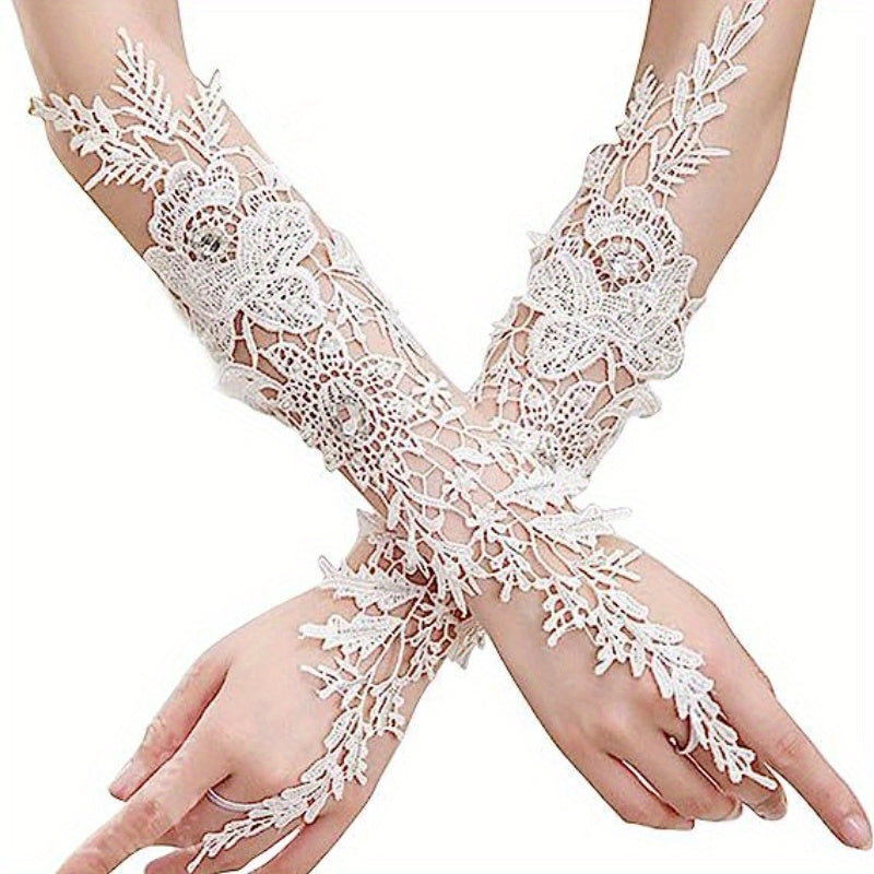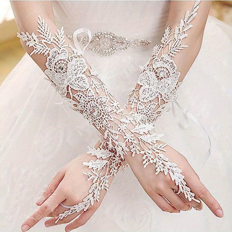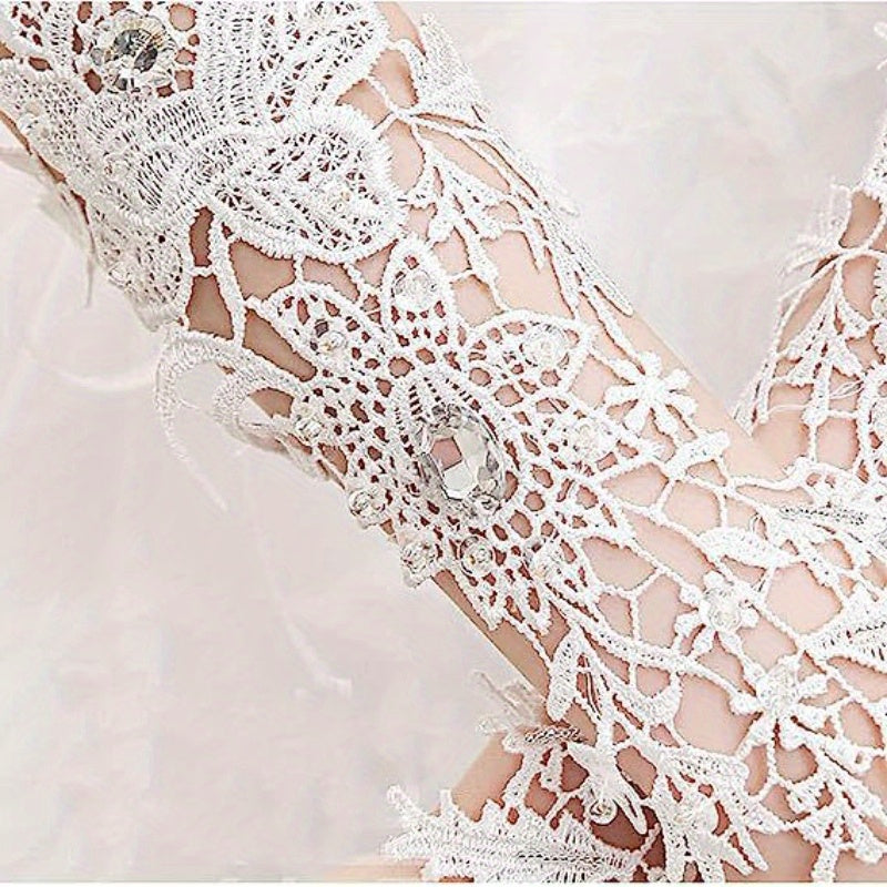 Ayollar uchun toʻqilgan nikoh qoʻllari, rhinestone aksentlari va bo'sh dizayni bilan