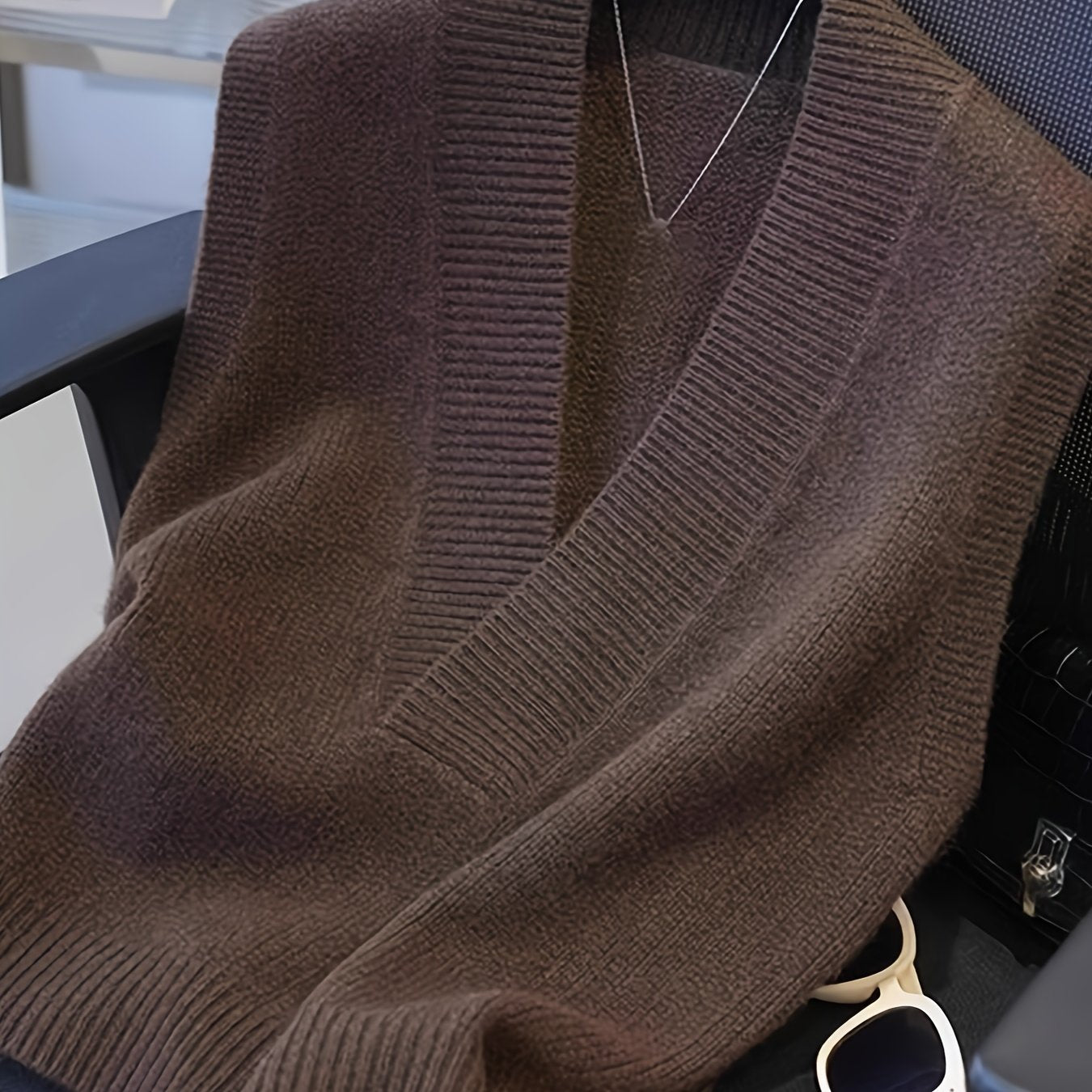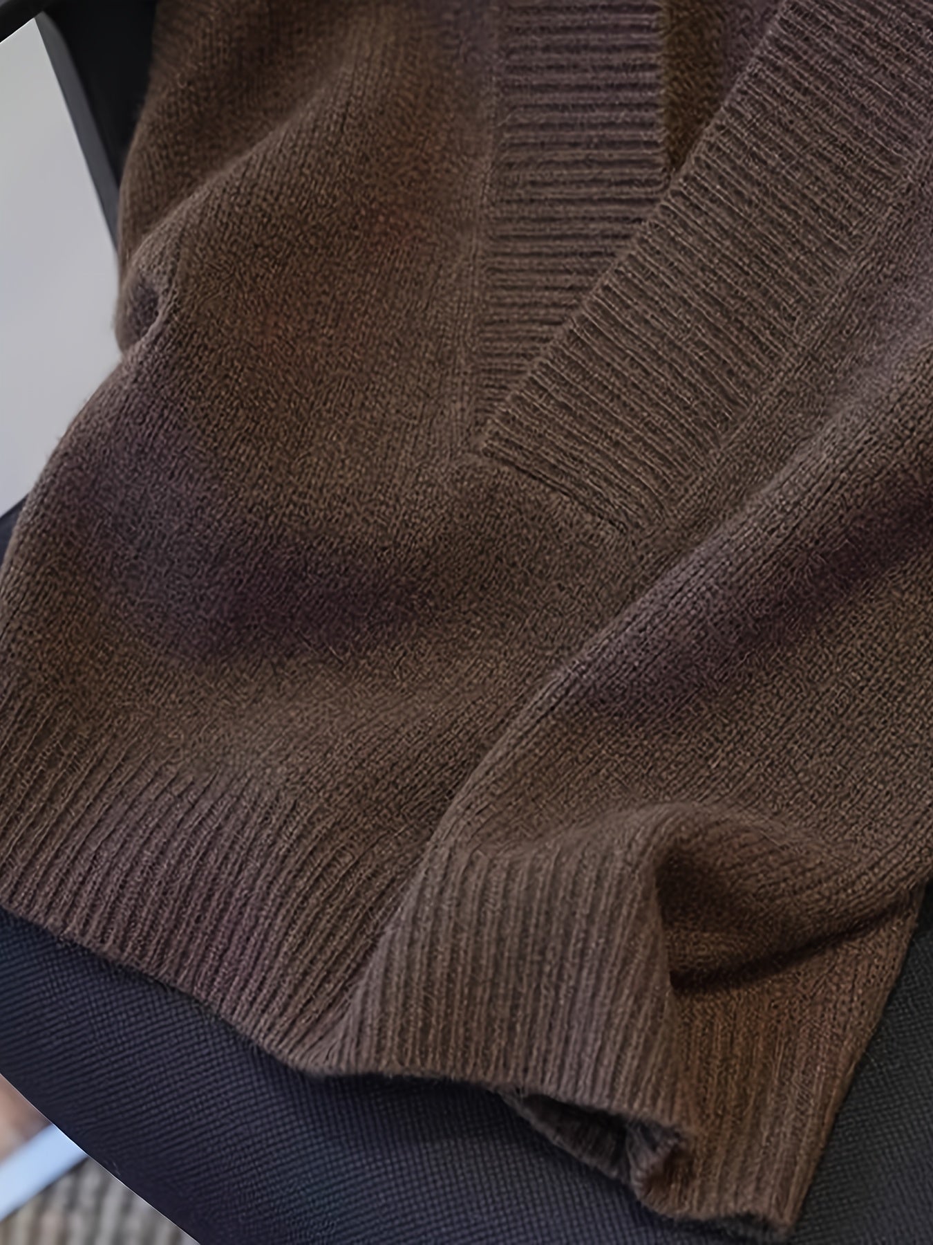 Qorong'i V-shaklli bo'yinli, qo'lsiz, qishda qatlamlash uchun to'qilgan yengil yengil yengil akril polyester vest