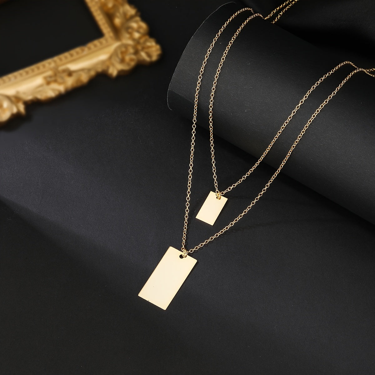 Zamonaviy Ikki Qavatli Zanjirli Marjon, Silliq To‘g‘ri Burchakli Pendant, Gotik/Hip-Hop Uslubi, 18K Oltin Qoplangan Mis, Kundalik Kiymak va Musiqa Festivaliga Mos, Uzoq Pendant, Moda Aksessuar