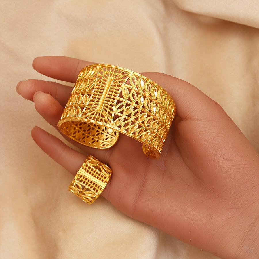 Zamonaviy Juftlik: Retro Ilhomlangan Bo'sh Bangle va Halqa To'plami - To'ylar, Partiyalar va Festival uchun Ideal