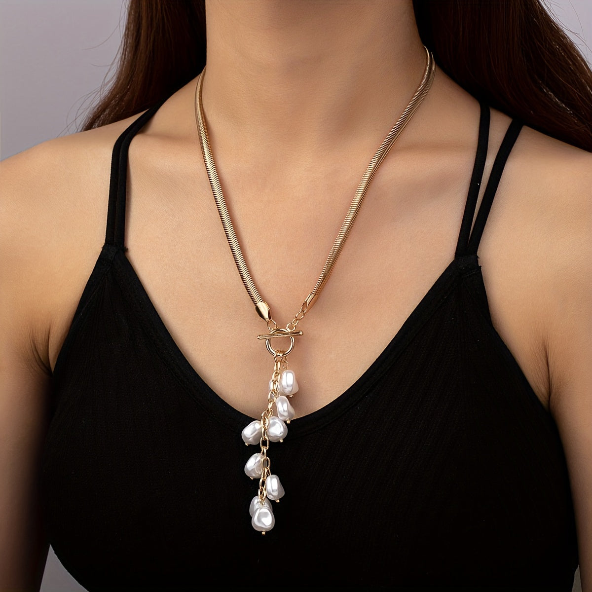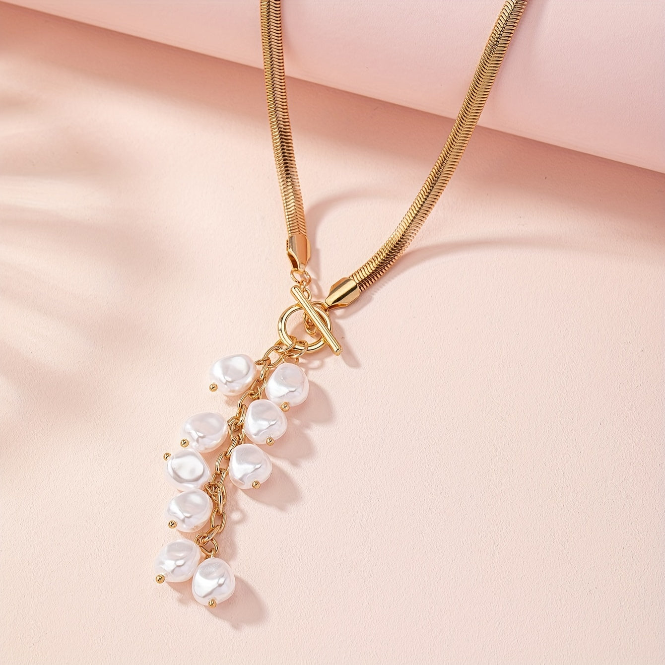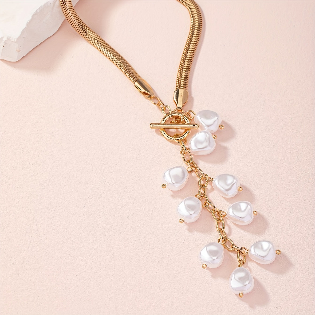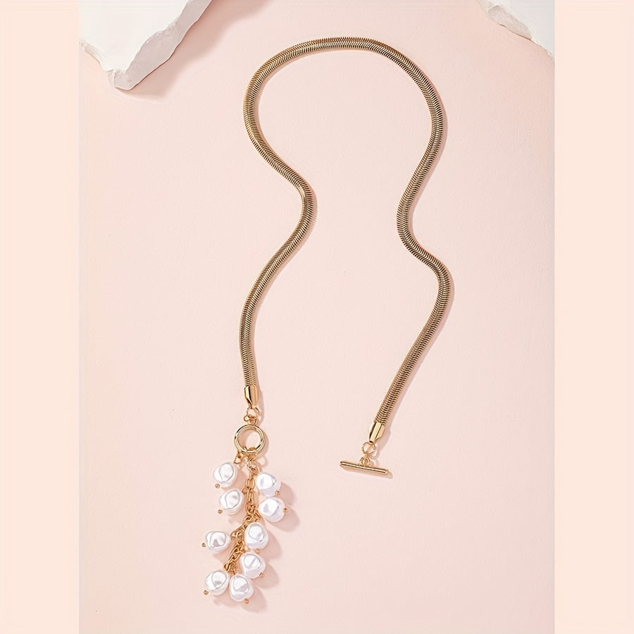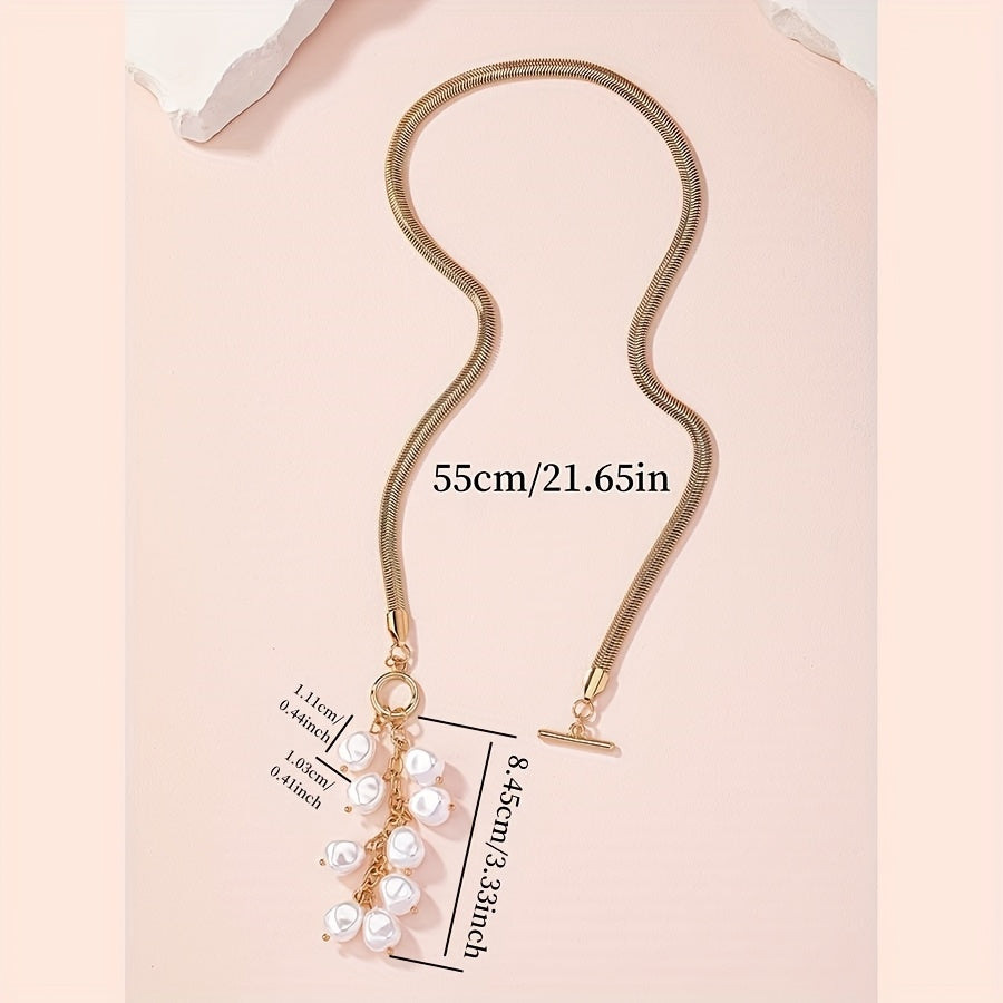 Zamonaviy fransuz uslubidagi soxta marvaridli pandant bilaguzuk, 1 dona, silliq temir ilon zanjiri, oq akril marvaridlar, har kuni va maxsus tadbirlar uchun mukammal, ayollar uchun ideal sovg'a.
