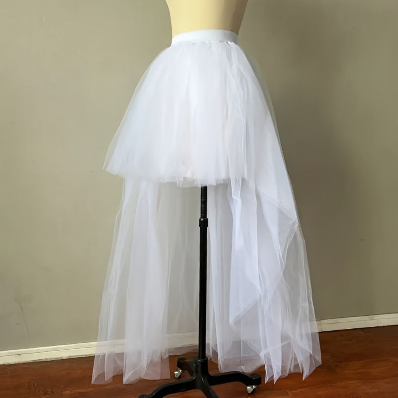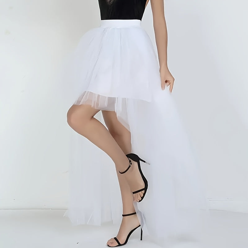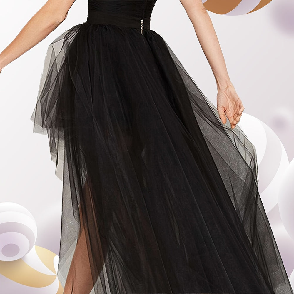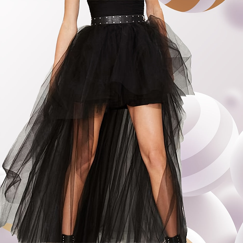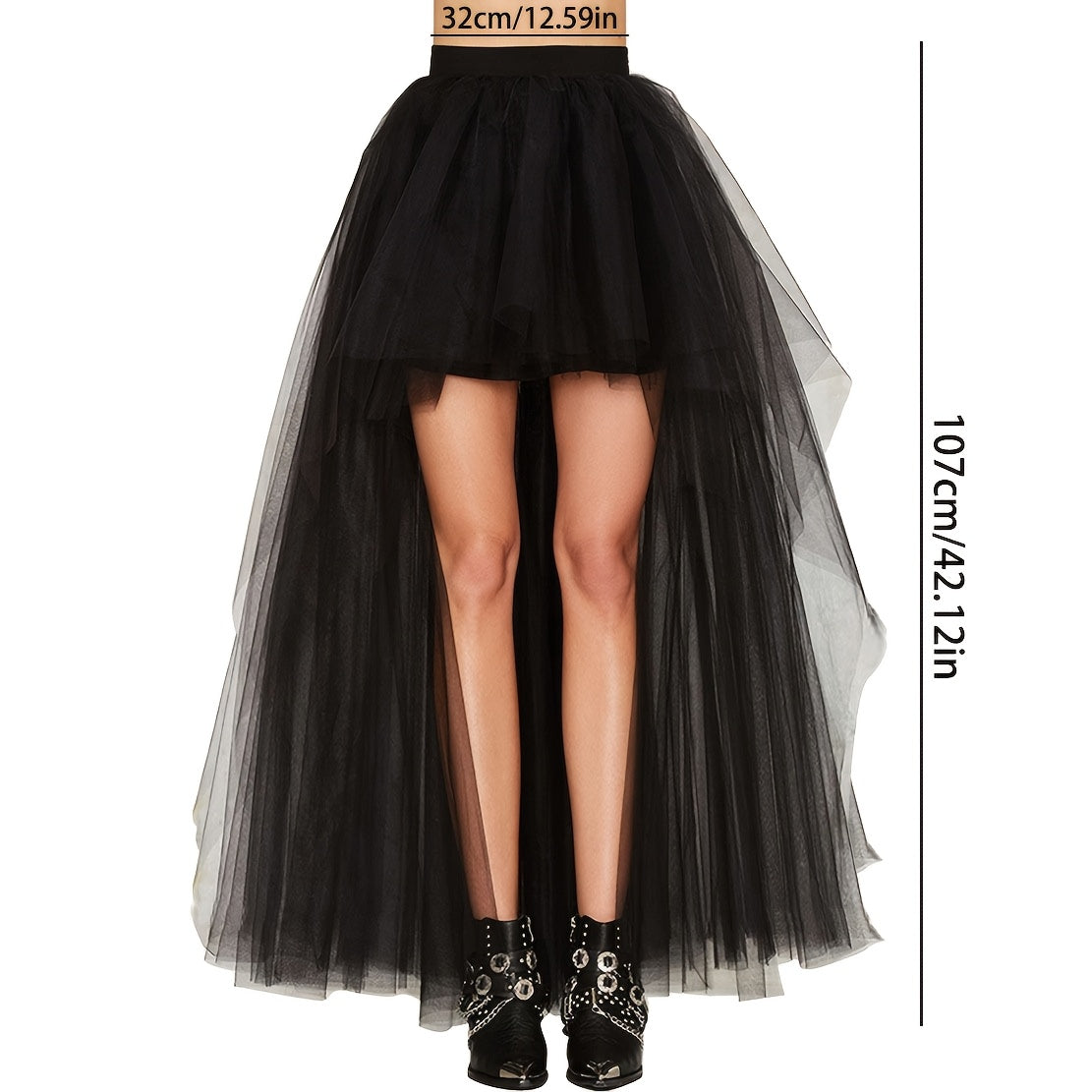 Ayollar uchun qora yuqori-pastki shaffof gauze yubkasi, to'ylar va bayramlar uchun