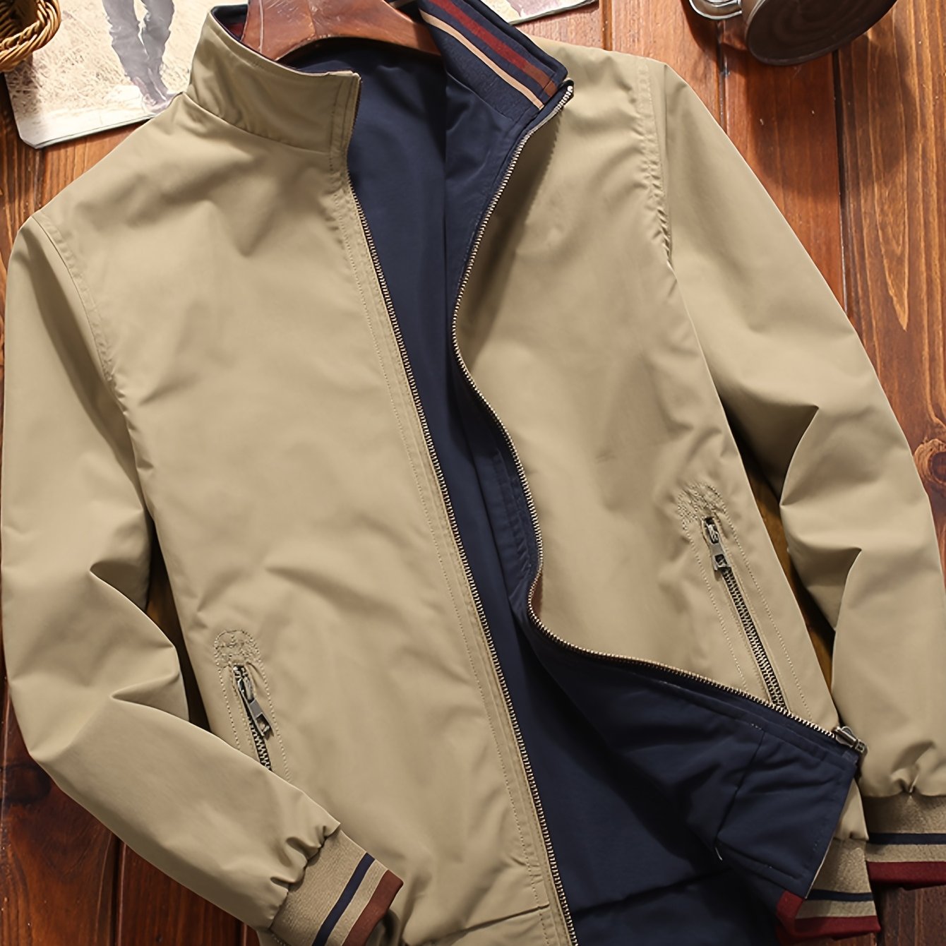 Zamonaviy Pearson OBM Erkaklar uchun Tasodifiy Ikki Tomonlama Kurtka, Chiziqli Uzoq Yengli Zip-Up, Cho'ntaklar, Turg'un Yelka, Yengil Polyester Aralashmasi, Bahor va Kuz uchun Ideal