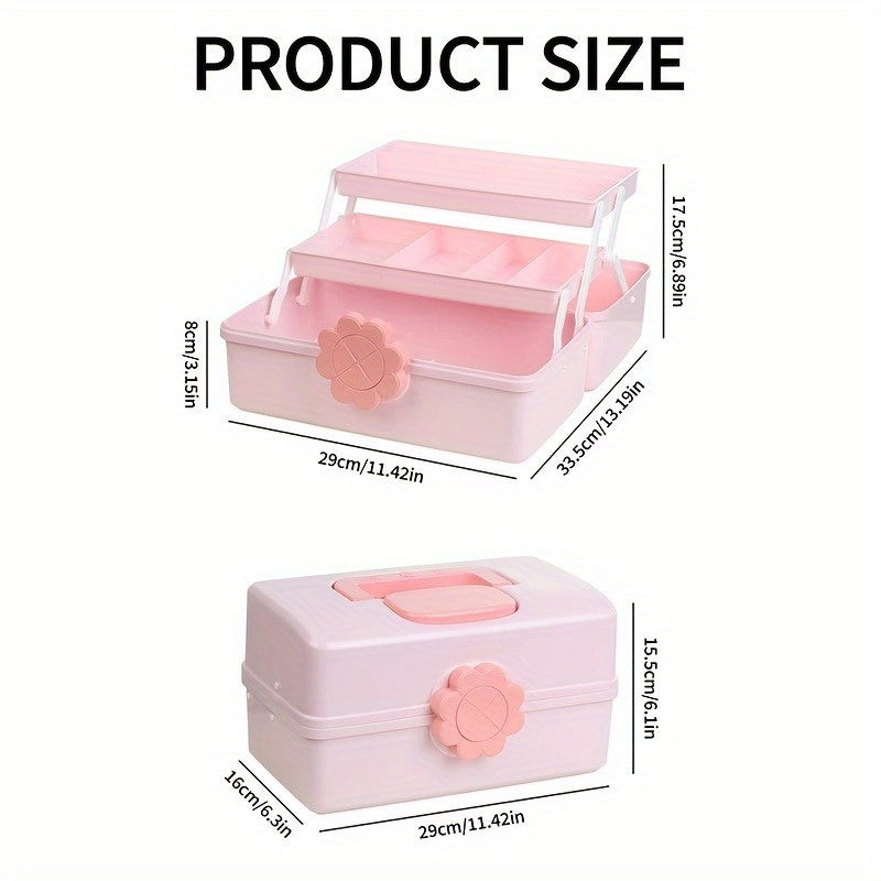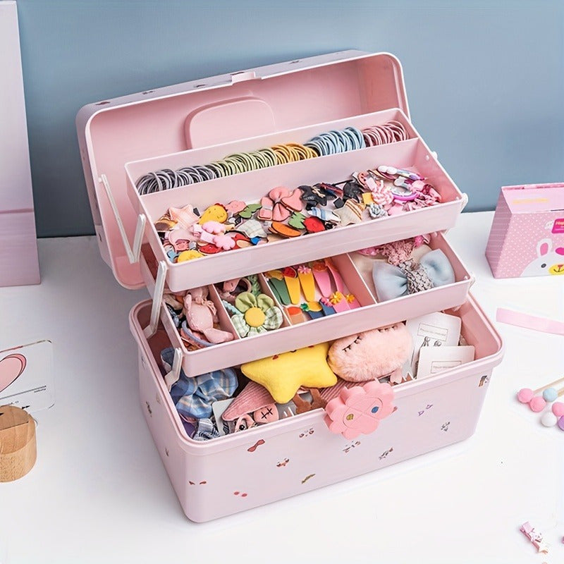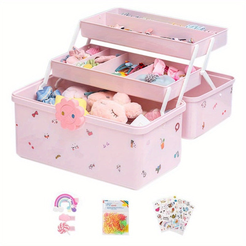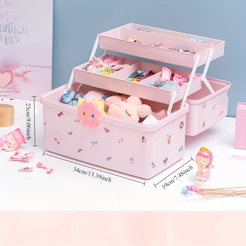 Qizlar uchun zargarlik buyumlari va soch aksessuarlari uchun ko‘p qavatli va qopqog‘li pushti soch aksessuari saqlash qutisi