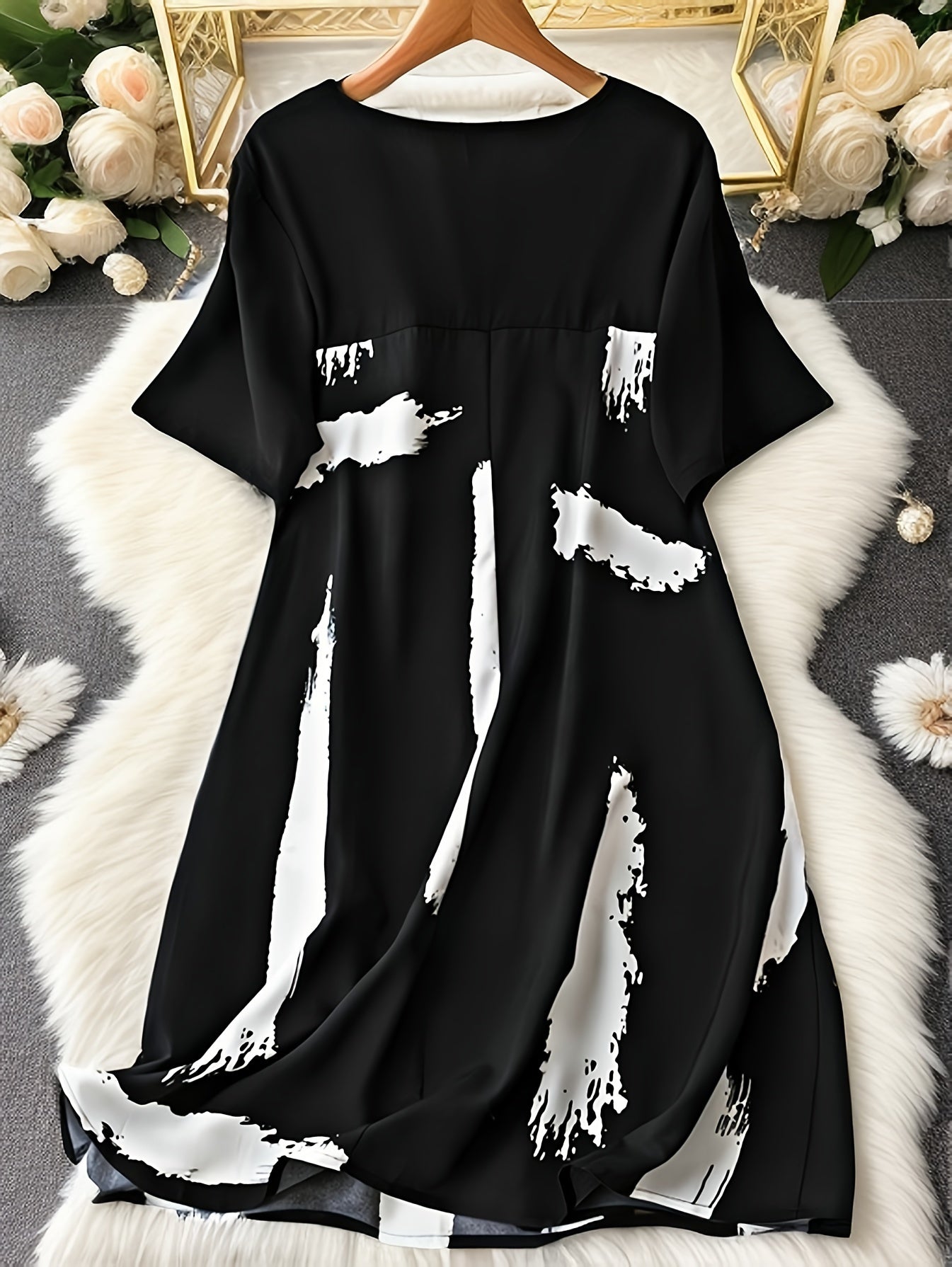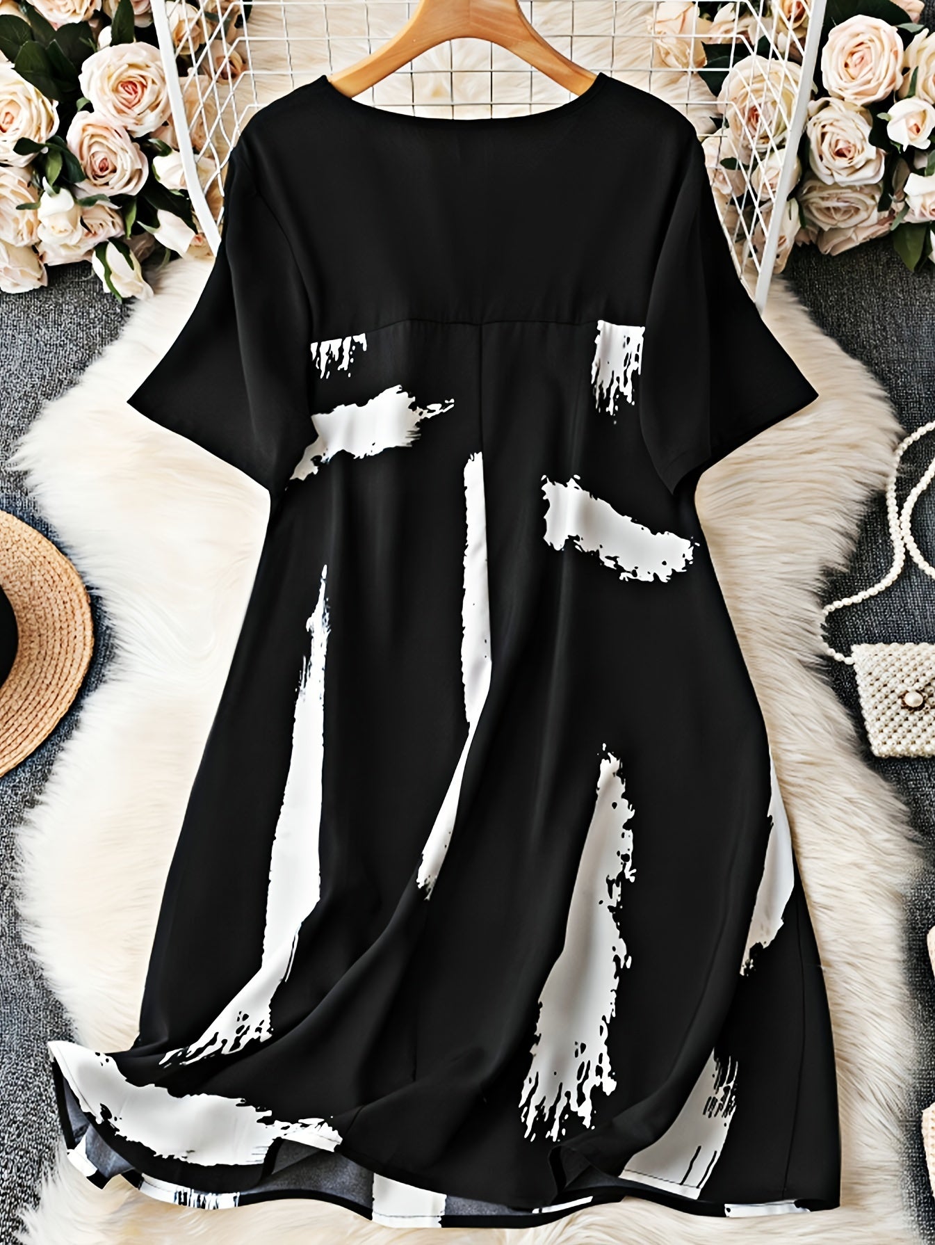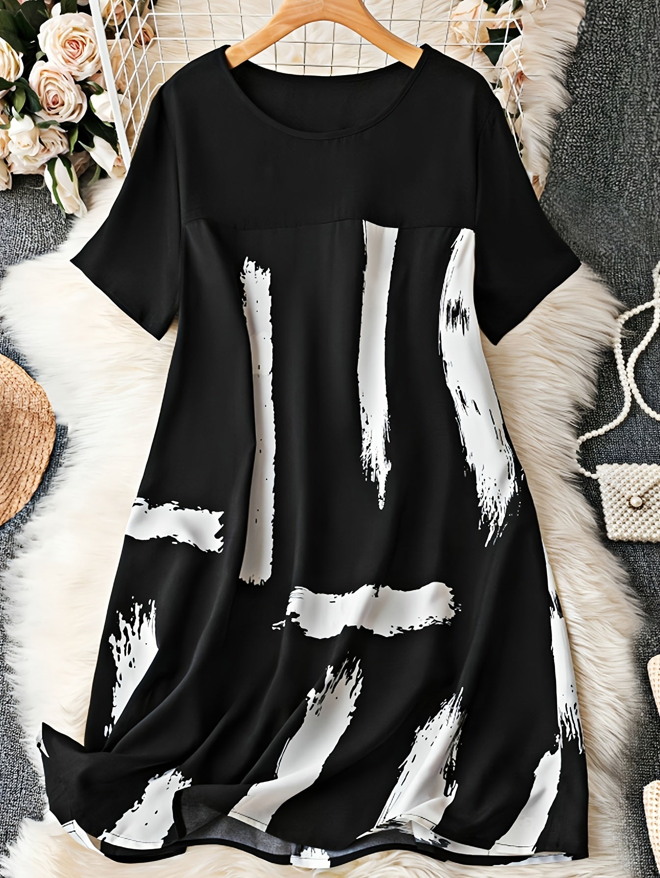 Zamonaviy Katta O'lchamli Cho'tka Izlari Libosi, Qisqa Yengli Krujka Bo'yin, Bahor va Yoz uchun, Ayollar Moda