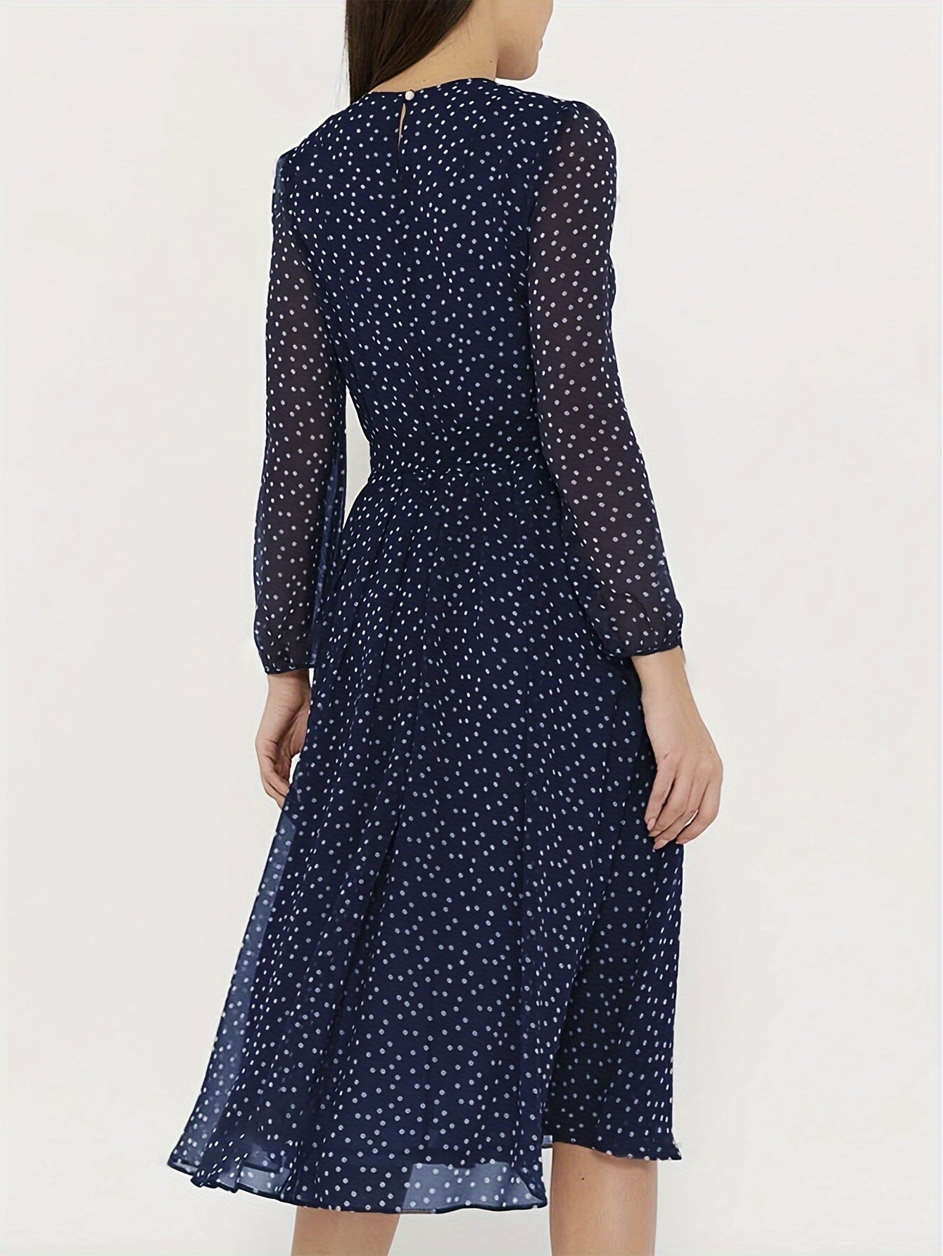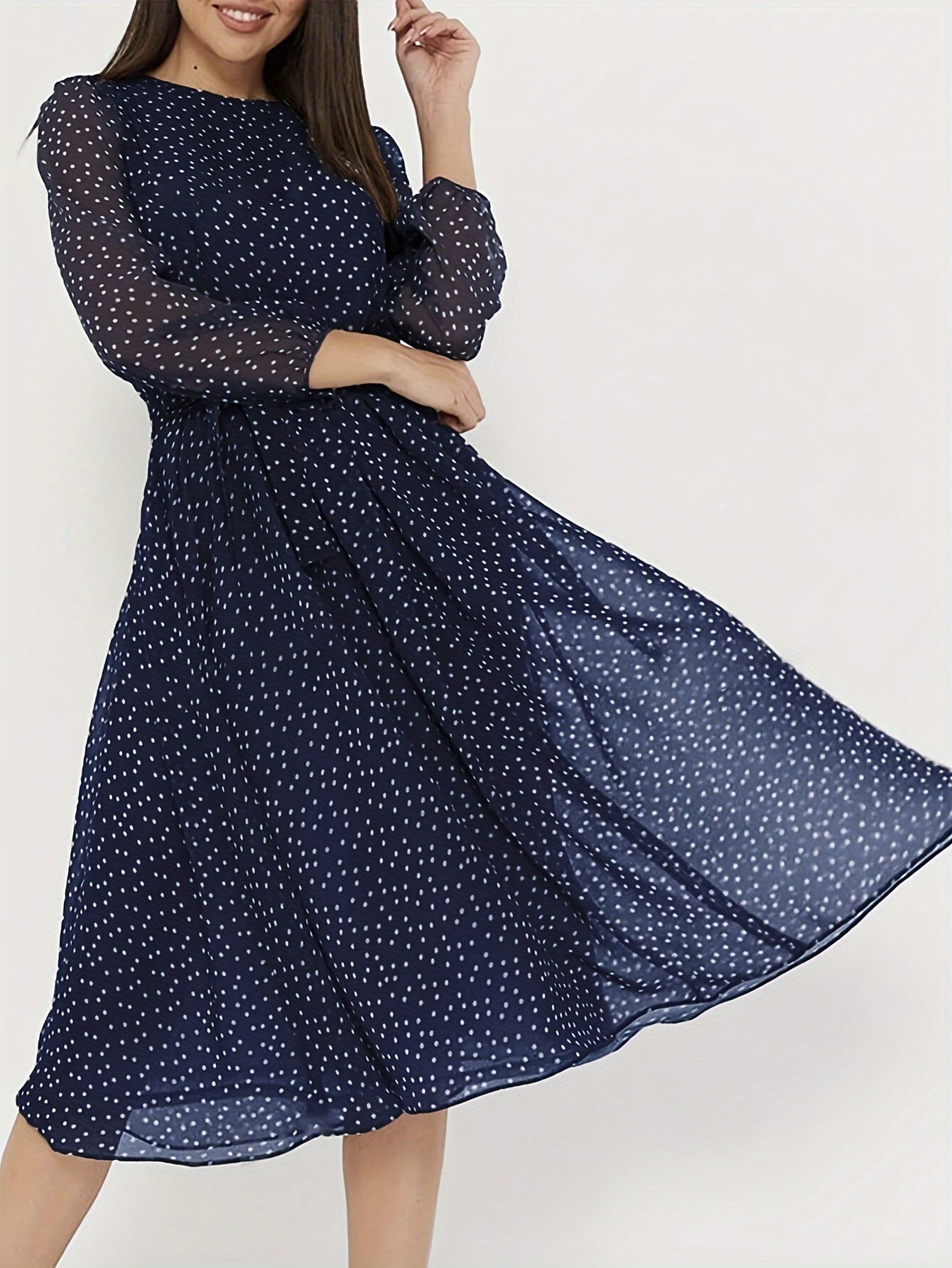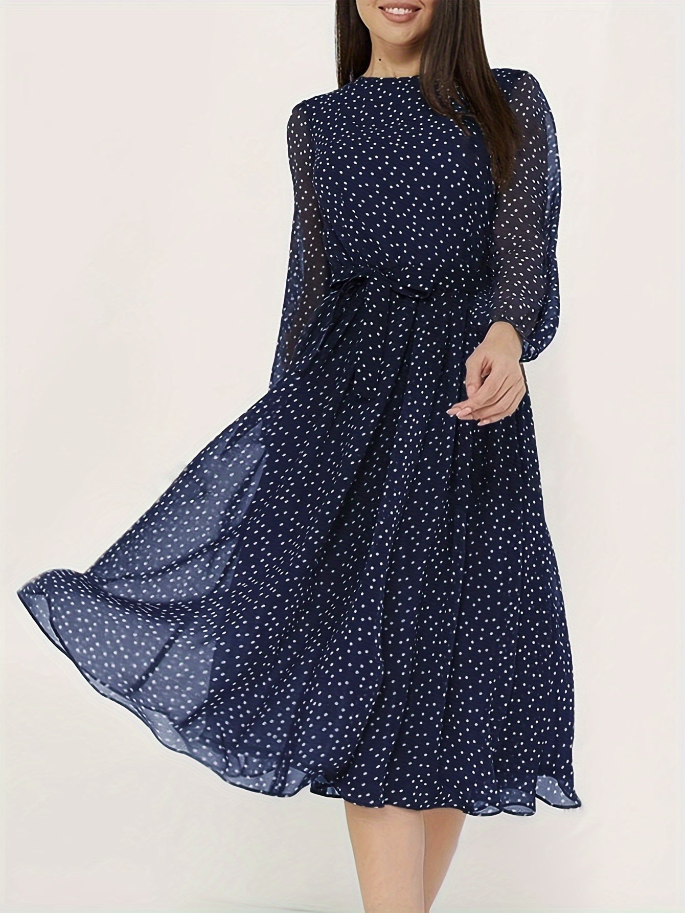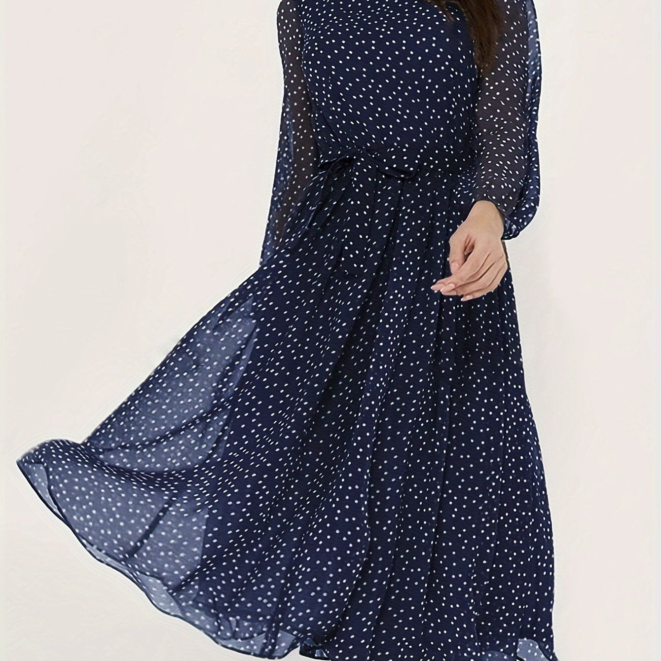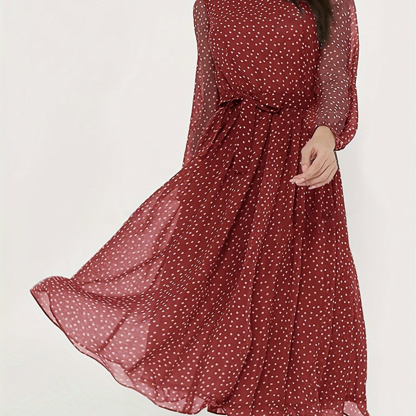 Usmonli Polka Nuqtali A-Line Kiyim, Bog'ichli Bel - Bahor/Yoz/Kuz uchun Mos
