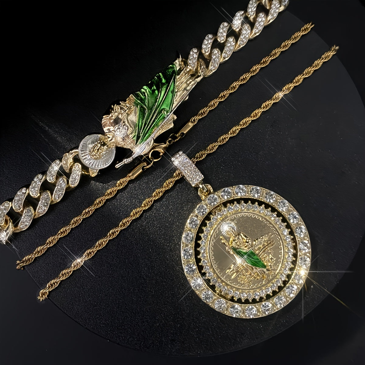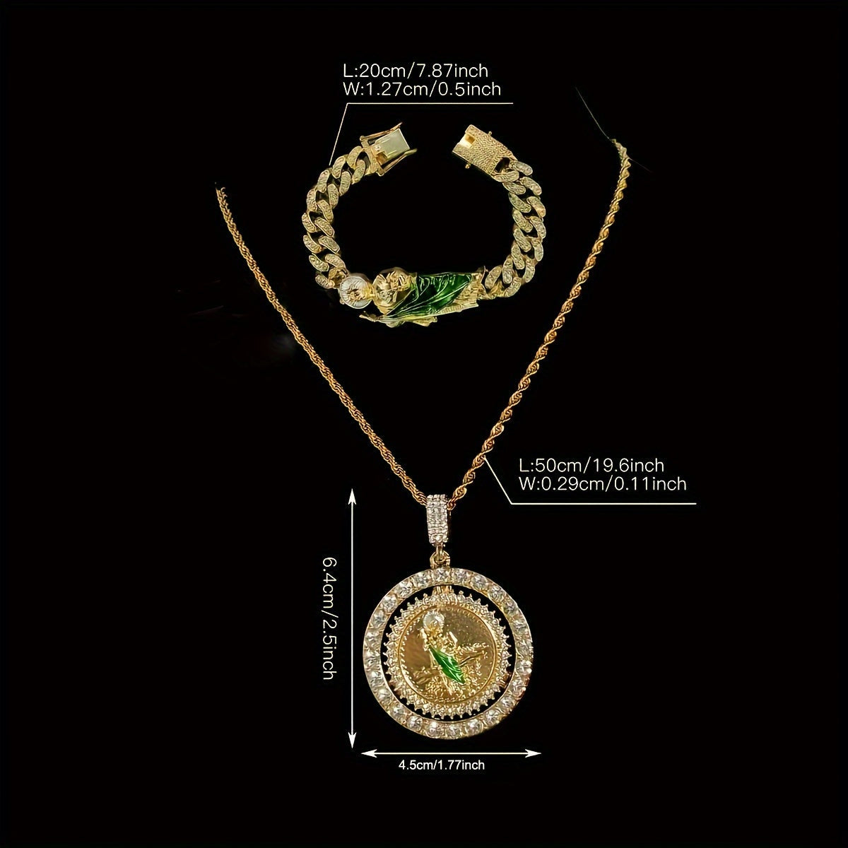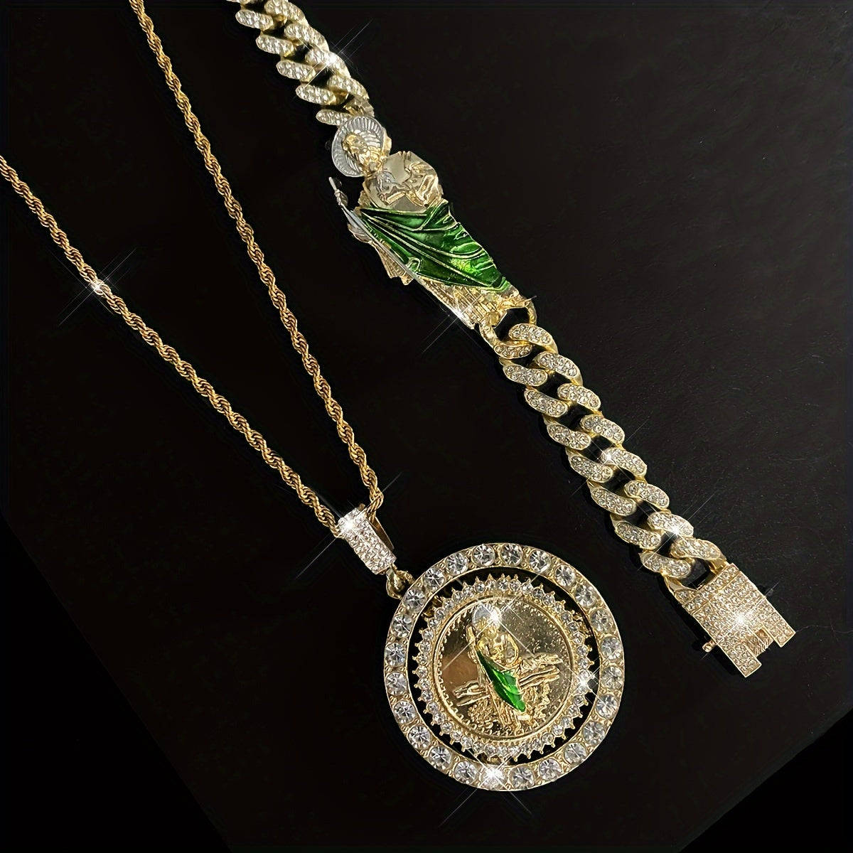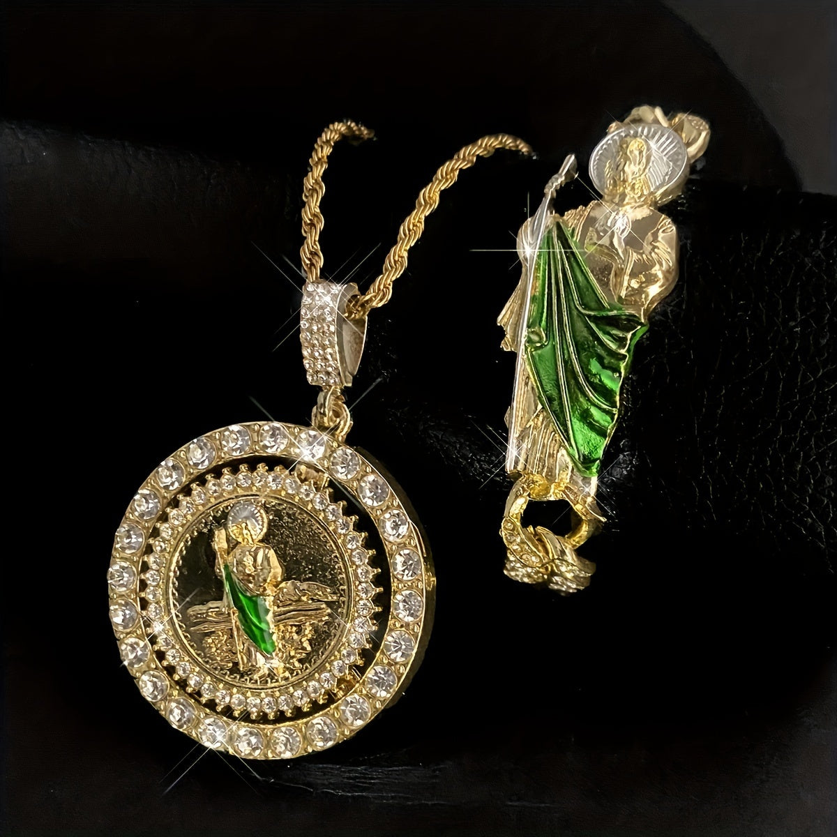 Uniseks zargarlik to'plami, zanglamaydigan po'latdan yasalgan diniy ramzlar, pendants va bilaguzuk, yashil emal bilan