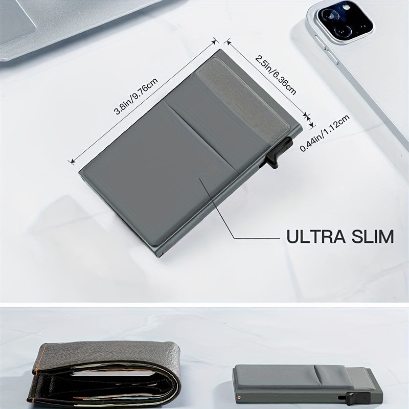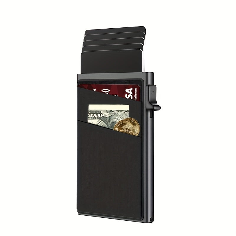 Erkaklar uchun avtomatik pop-up kredit karta tutgichi bilan qora RFID-qarshi alyuminiy hamyon