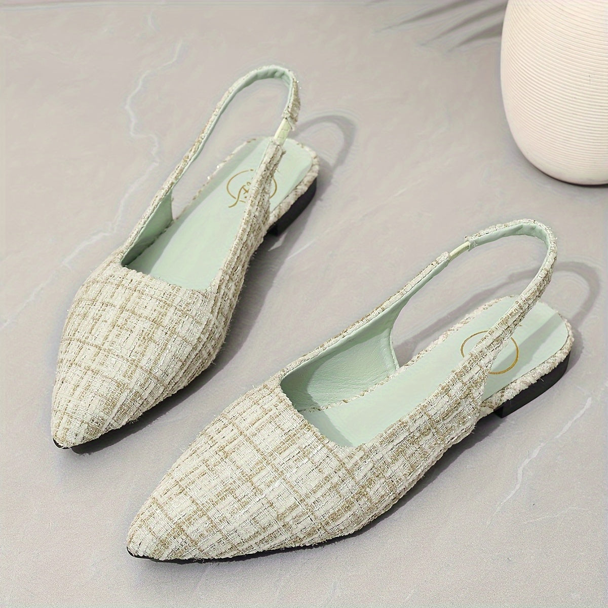 Kundalik kiyish uchun nozik burunli va past tovonli slingback sandallar.