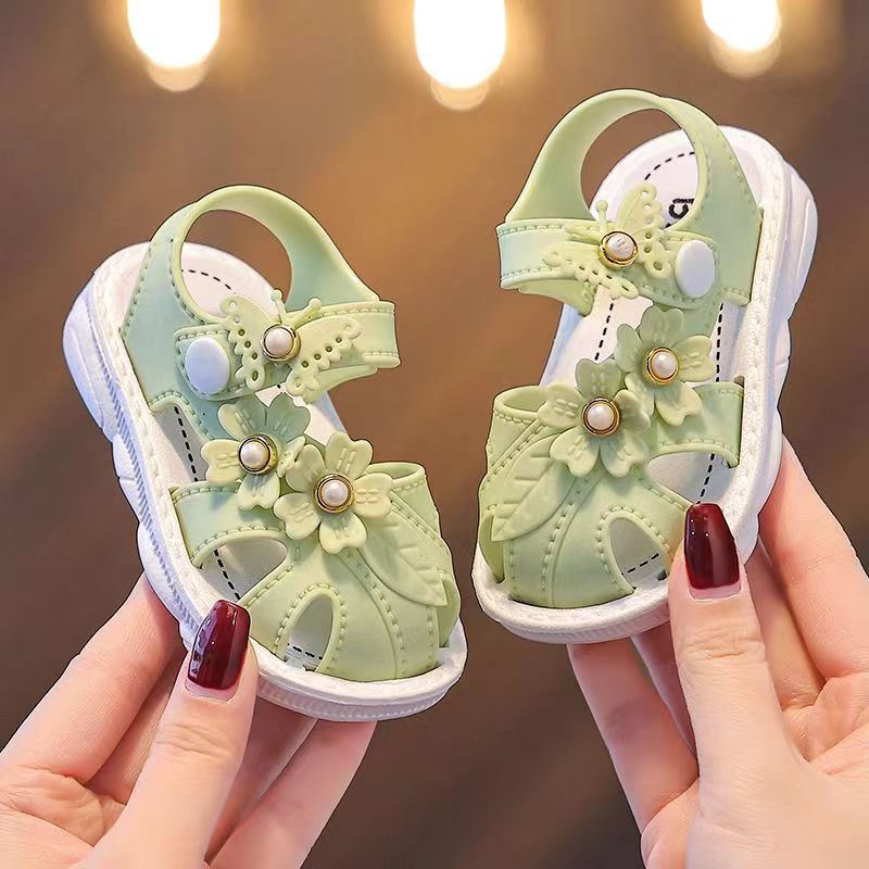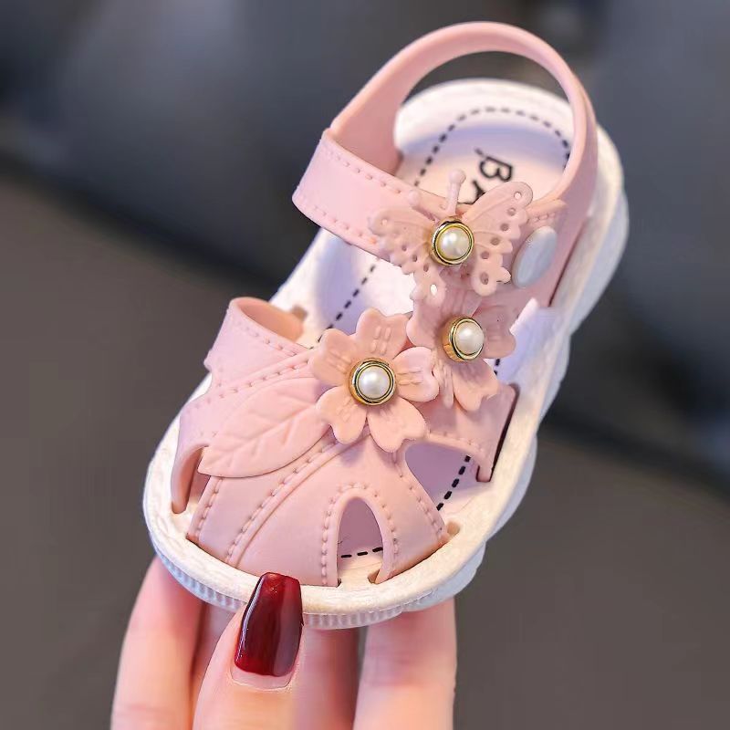 Kichkina qizlar uchun yozgi nafas oladigan, sirpanmaydigan, gul naqshli PVC poyabzal