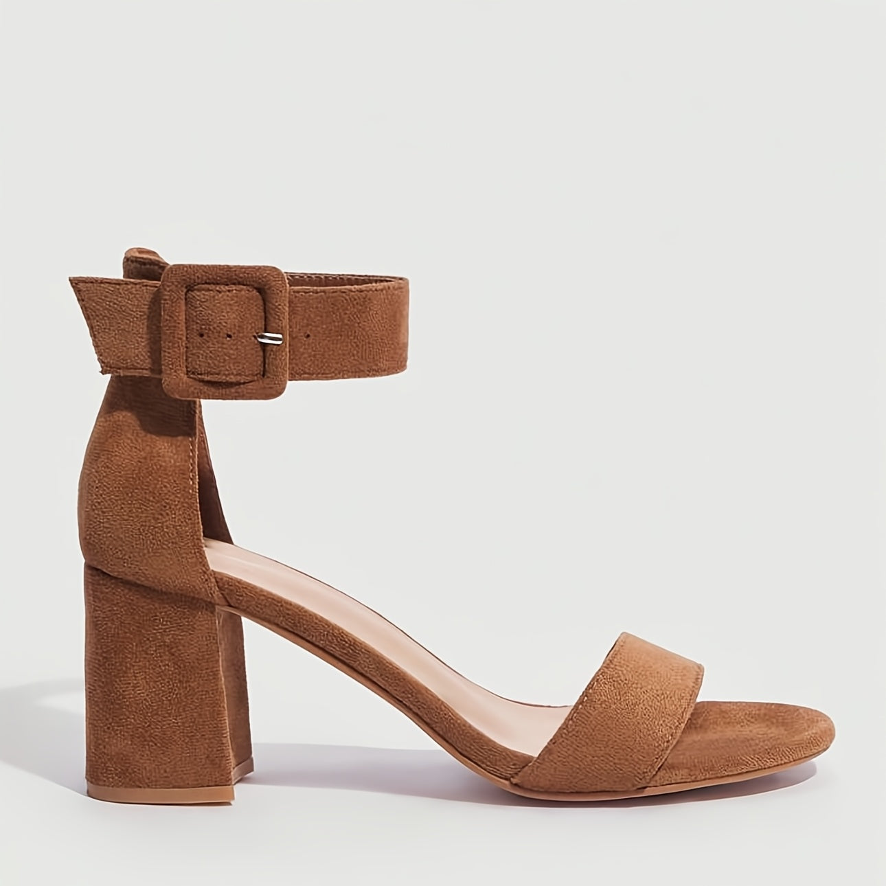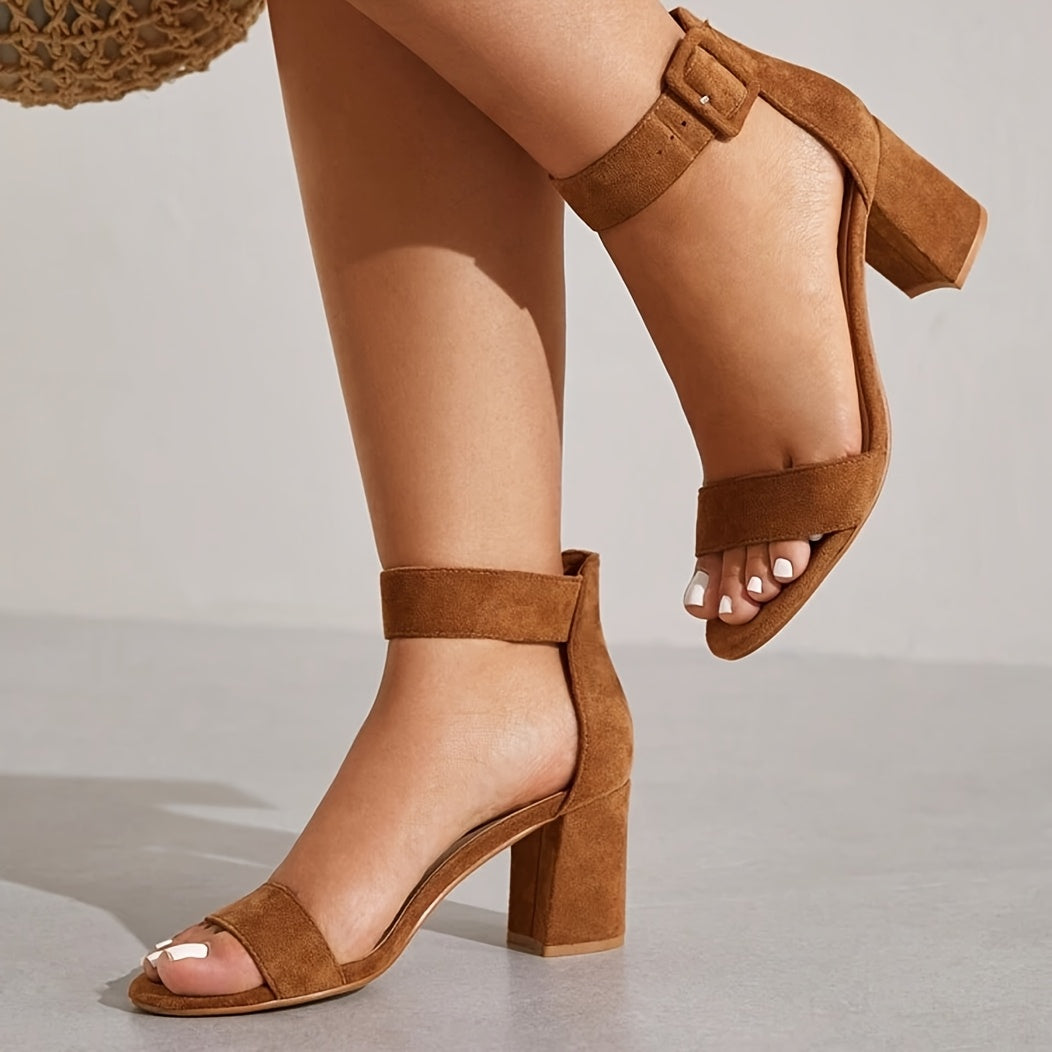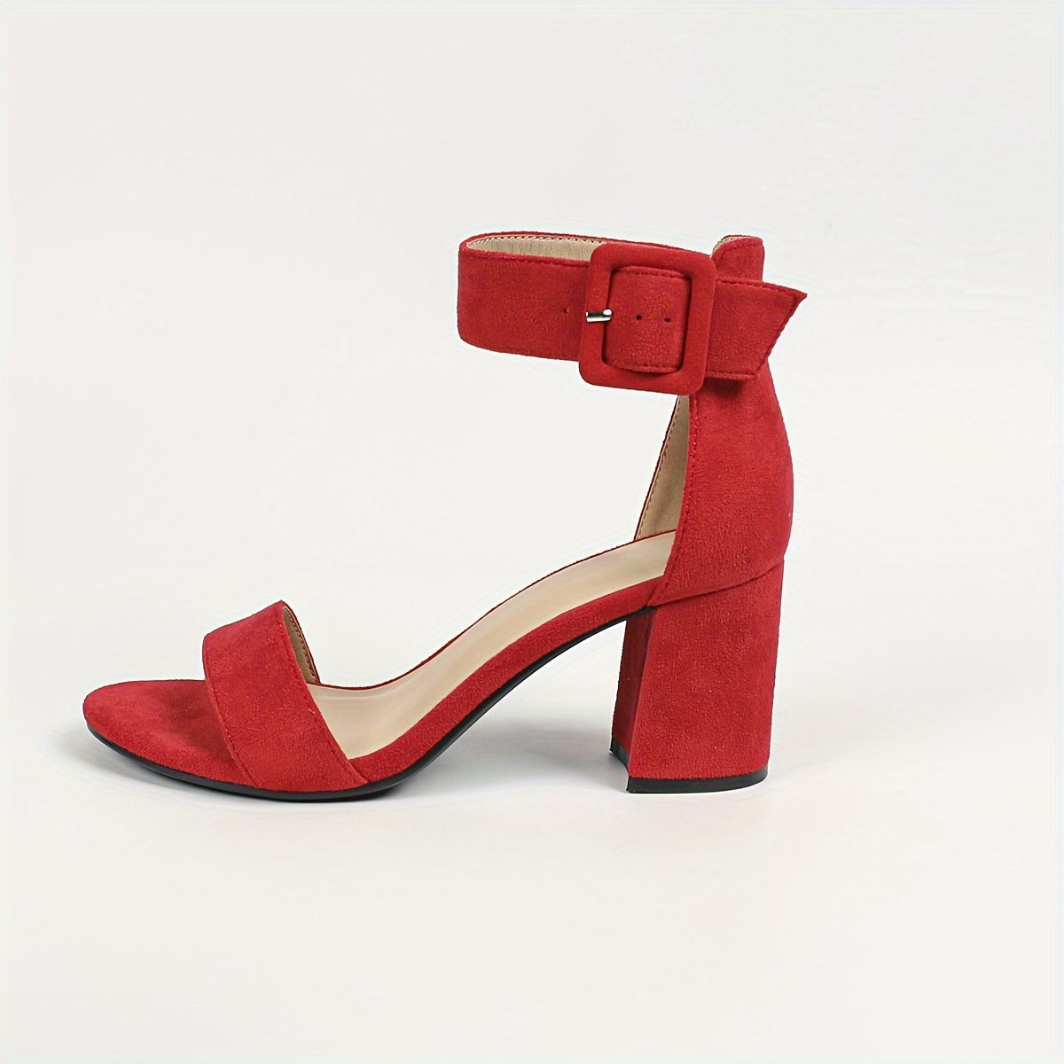 Qulupnay oyoq bilagida tasma va ochiq barmoq bilan zamonaviy oq blok tovonli sandlelar, har qanday holat uchun mos va qulay.