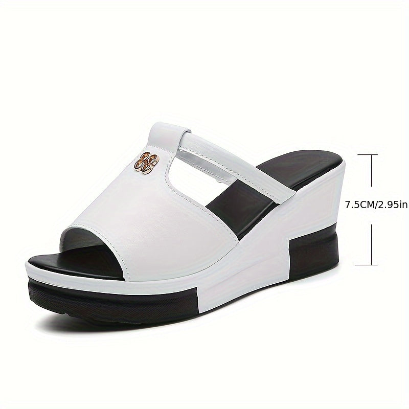 Yozgi tasodifiy kiyimlar uchun mukammal, ochiq barmoq bilan bezatilgan, sun'iy charm qoplamali zamonaviy ayollar uchun wedge sandallar, qulay taglik bilan.