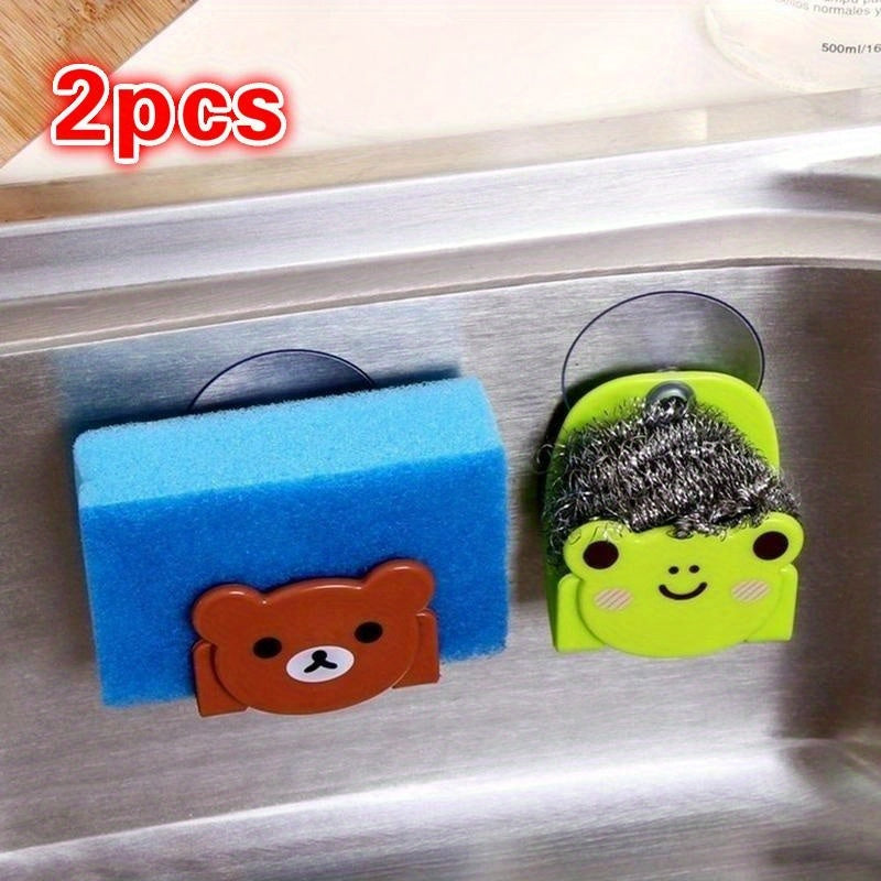 Oshxona cho'kmasi, hammom yoki dush uchun so'rg'ichli gubka ushlagich to'plami - Multfilm dizayni, idishlar va tozalash vositalari uchun plastik saqlash tokchasi, gubkalar va artishlar uchun mustahkam quritish tokchasi