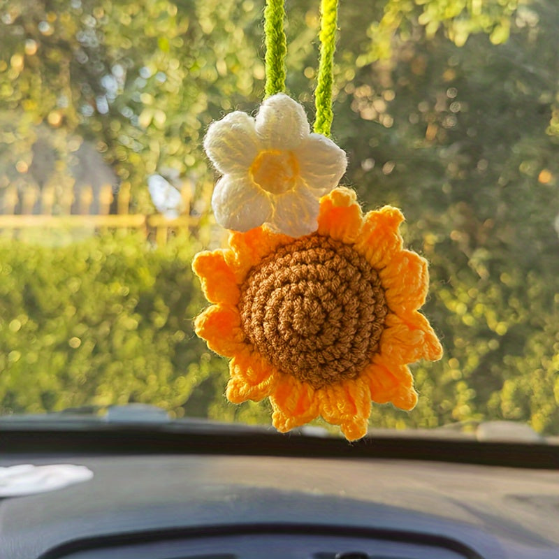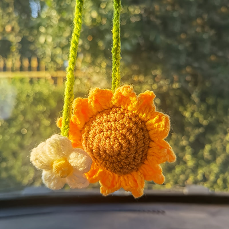 Quyosh gulidan tayyorlangan mashina uchun osma bezak, qo'lda to'qilgan quyosh gul ornamentlari