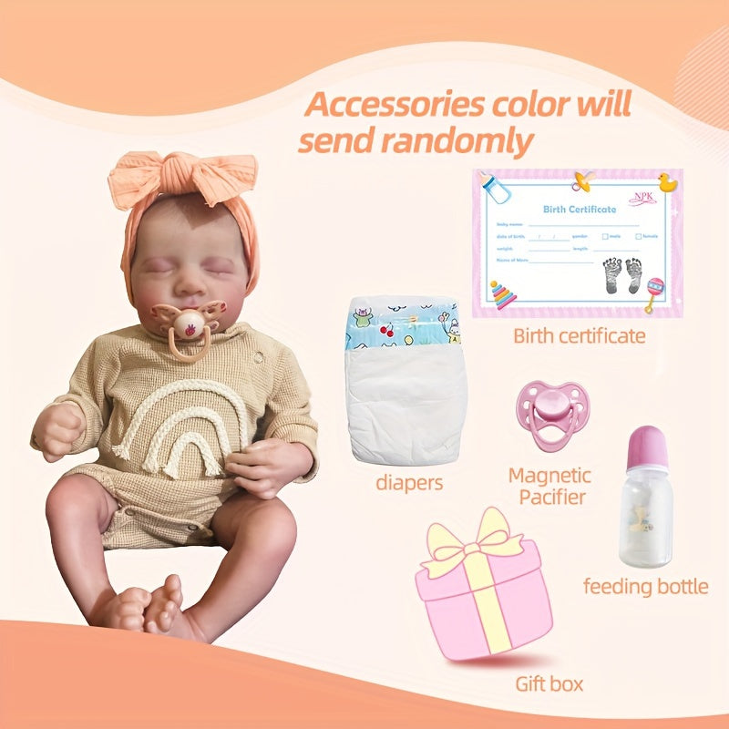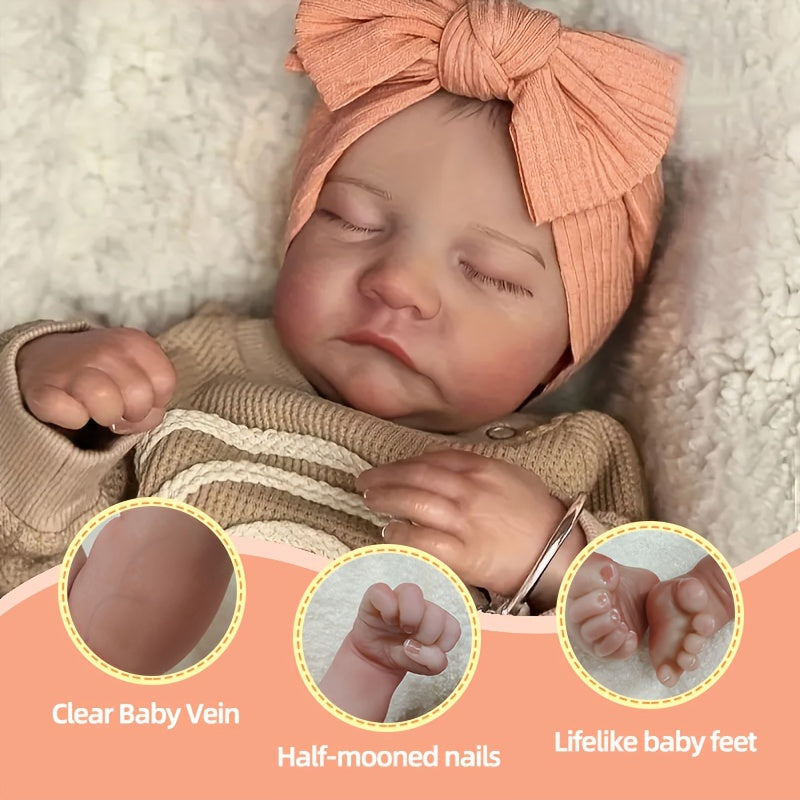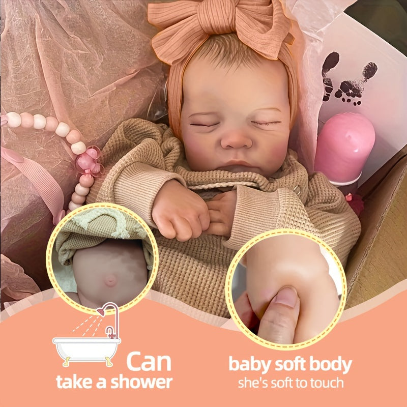 Shirin 43.18 sm o'ziga xos xususiyatlarga ega qayta tug'ilgan chaqaloq qo'g'irchoq, yuvilishi mumkin bo'lgan vinil tanasi - bolalar uchun ideal sovg'a.