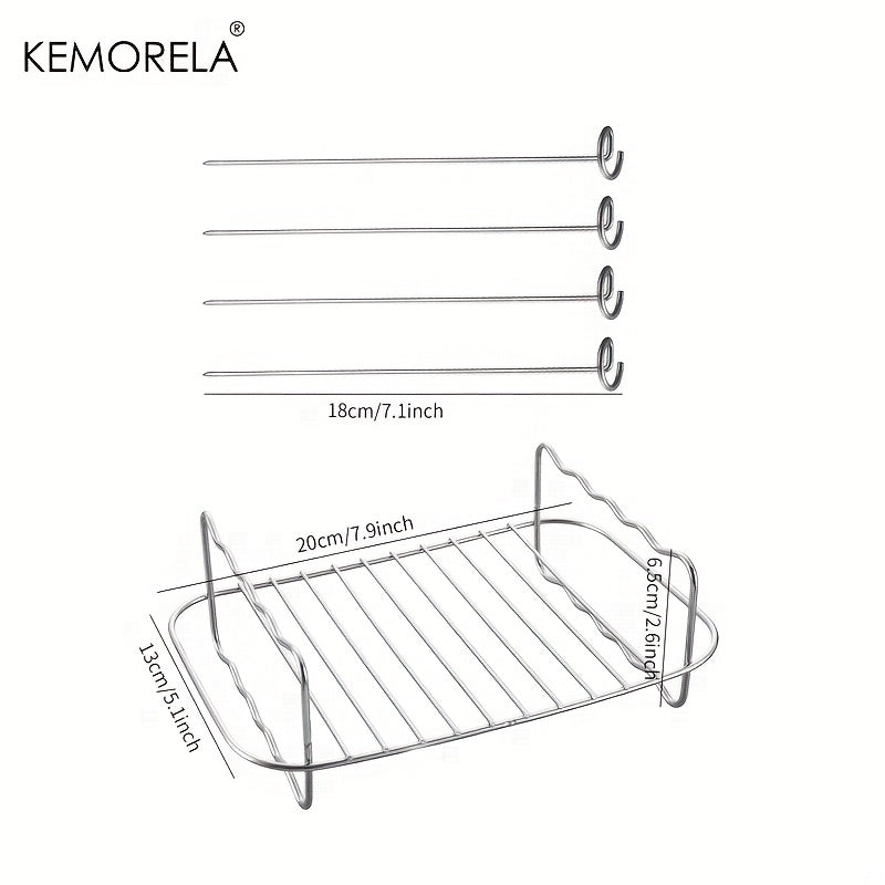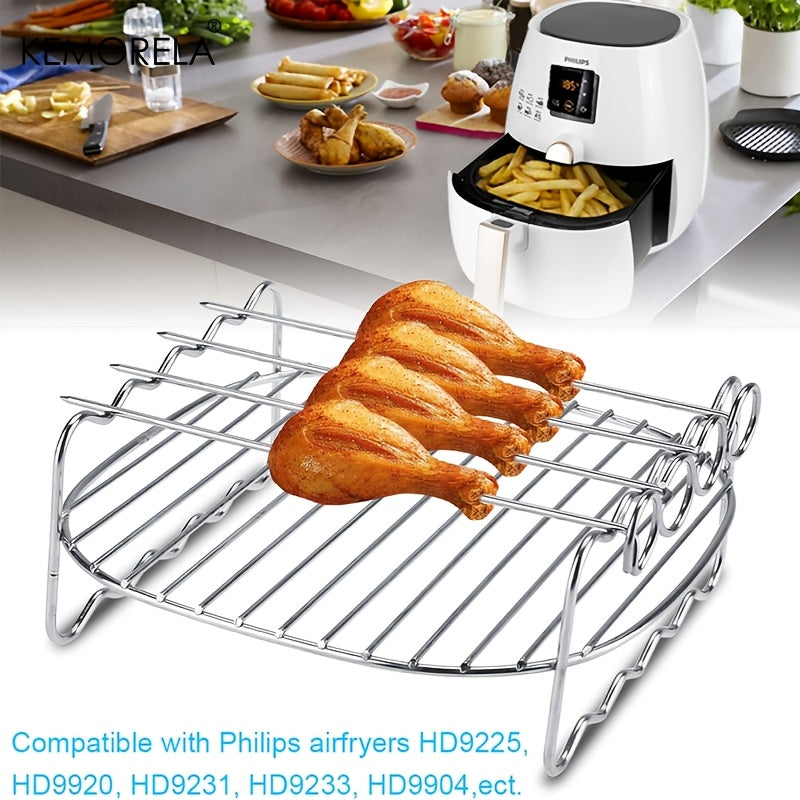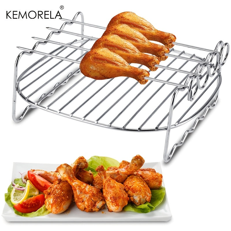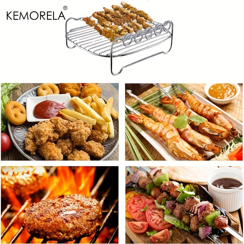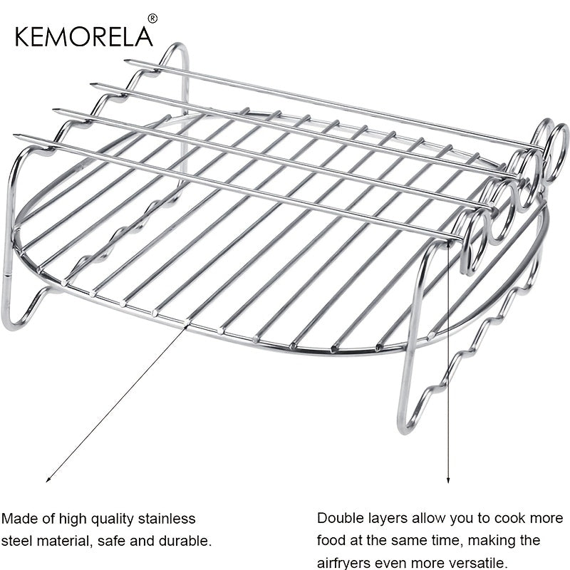 Havo qovurish uchun aksessuarlar to'plami 6 ta qismli ikki qavatli qavatlar, shishlar, pishirish panjarasi, sabzavotlar