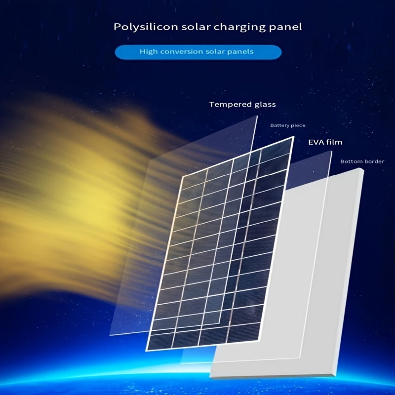Quyosh energiyasi bilan ishlaydigan zaryadlash stripi bir vaqtning o'zida bir nechta qurilmalarni zaryadlash imkonini beruvchi to'rtta USB portiga ega bo'lib, soatiga 600-800mA chiqish quvvatini taqdim etadi. U standart 5 metrli kabelni o'z ichiga oladi.