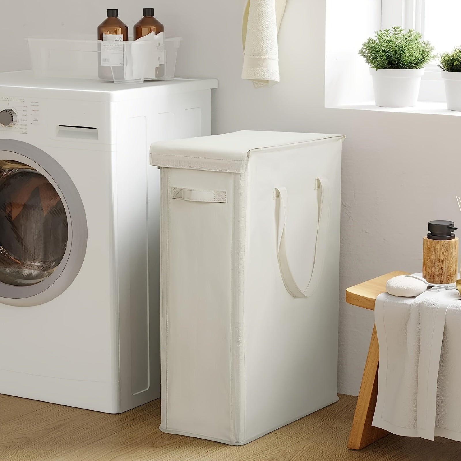 60L yig'iladigan kir yuvish qutisi, qopqog'i va tutqichlari bilan, yotoqxona, hammom, yotoqxona uchun
