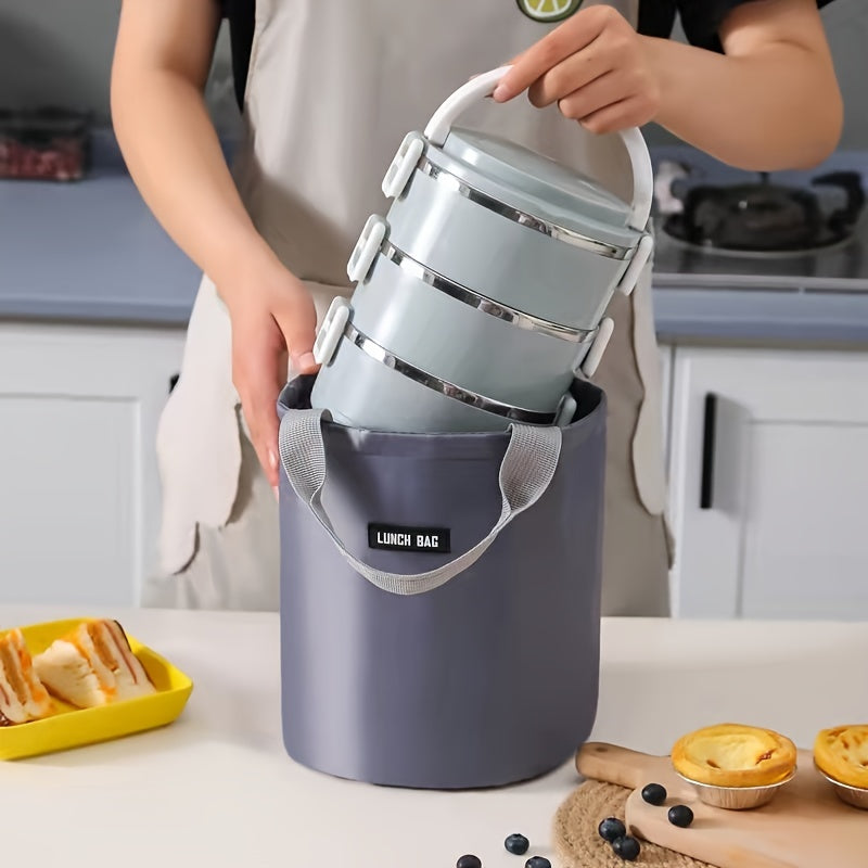 Twill silindr Bento sumkasi, muz paketi bilan, suv o'tkazmaydigan izolyatsiyalangan tushlik qutisi