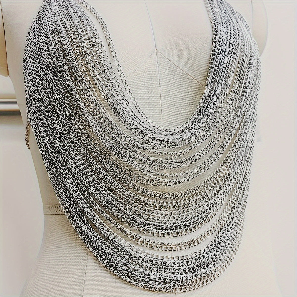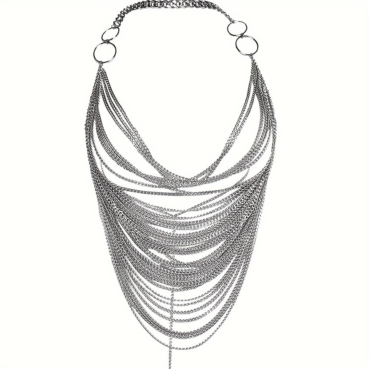 Y2K osilgan kumush tanali zanjir musiqa festivallari va ko'cha rok modasi uchun mukammaldir.