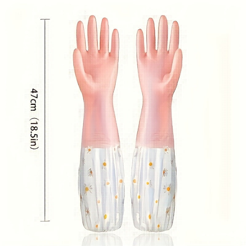 Ushbu zamonaviy kichik romashka naqshli kauchuk bilak qo'lqoplari uy ishlarini va oshxona tozalashni bajarish uchun mukammaldir. Ular bardoshli kauchuk lateksdan tayyorlangan bo'lib, sirpanmas dizaynga ega, shuningdek, nafis va amaliy.