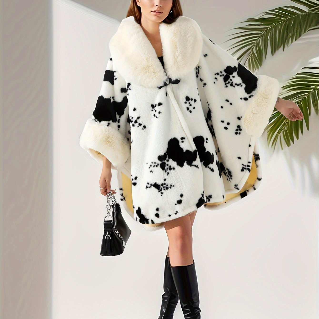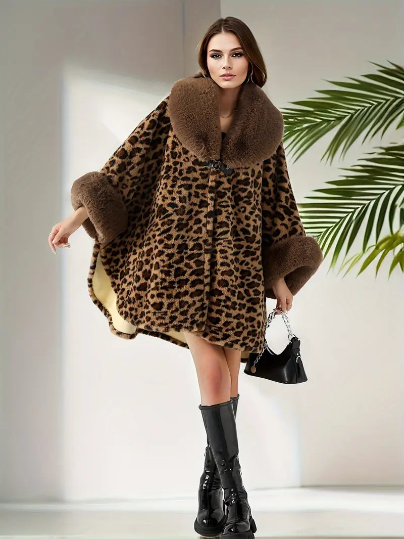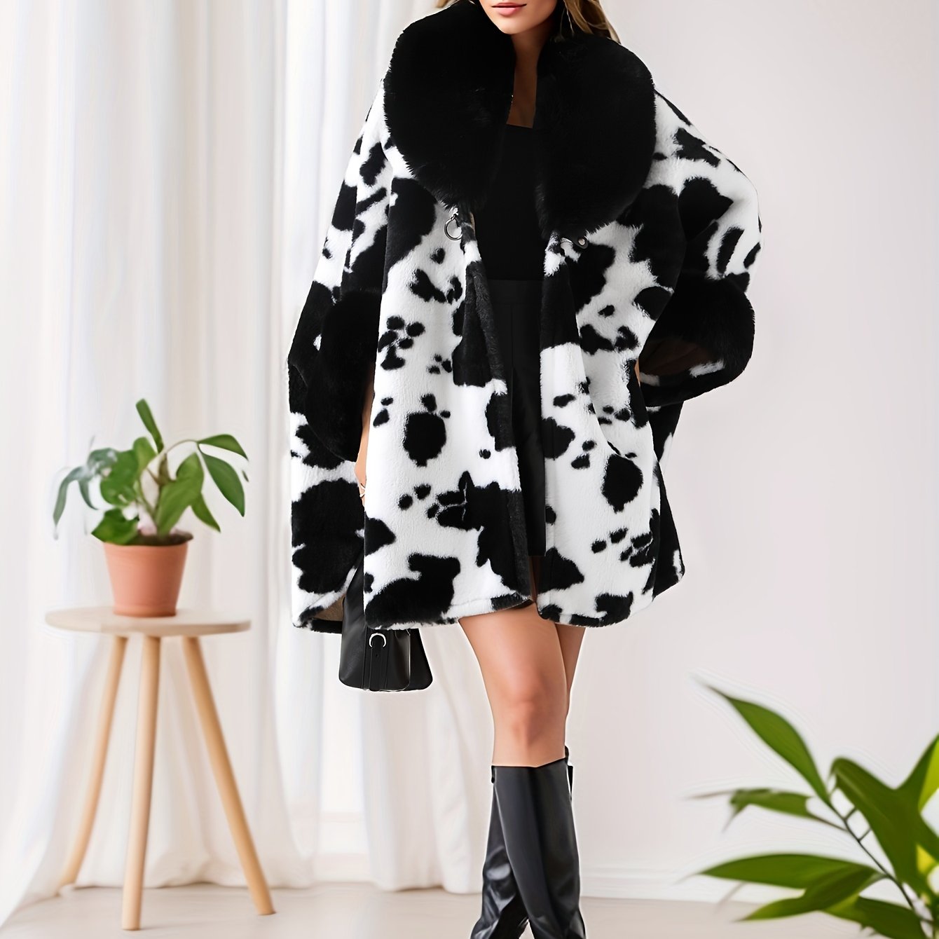 Hayvon naqshli qalin sun'iy mo'ynali yarasa uslubidagi kardigan.