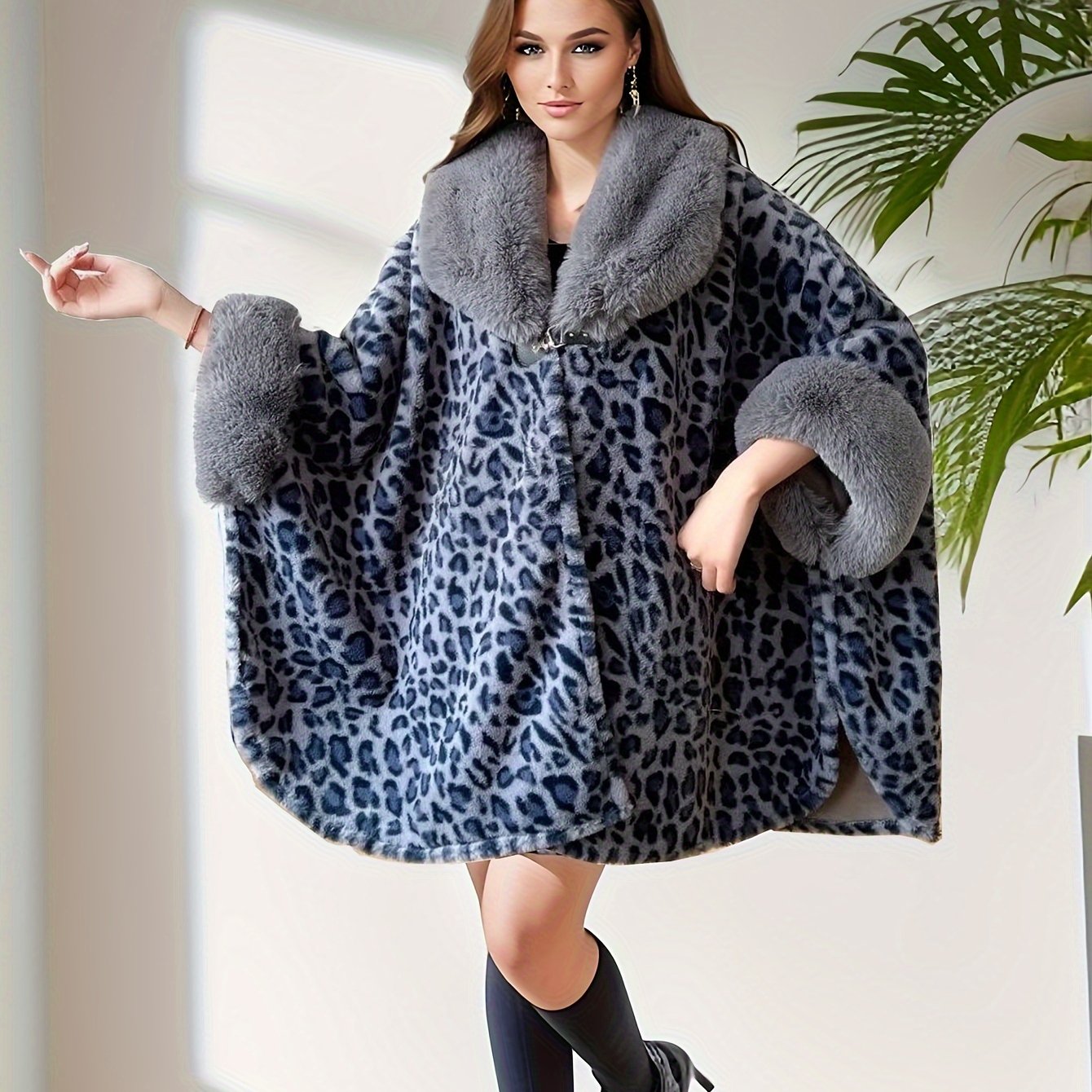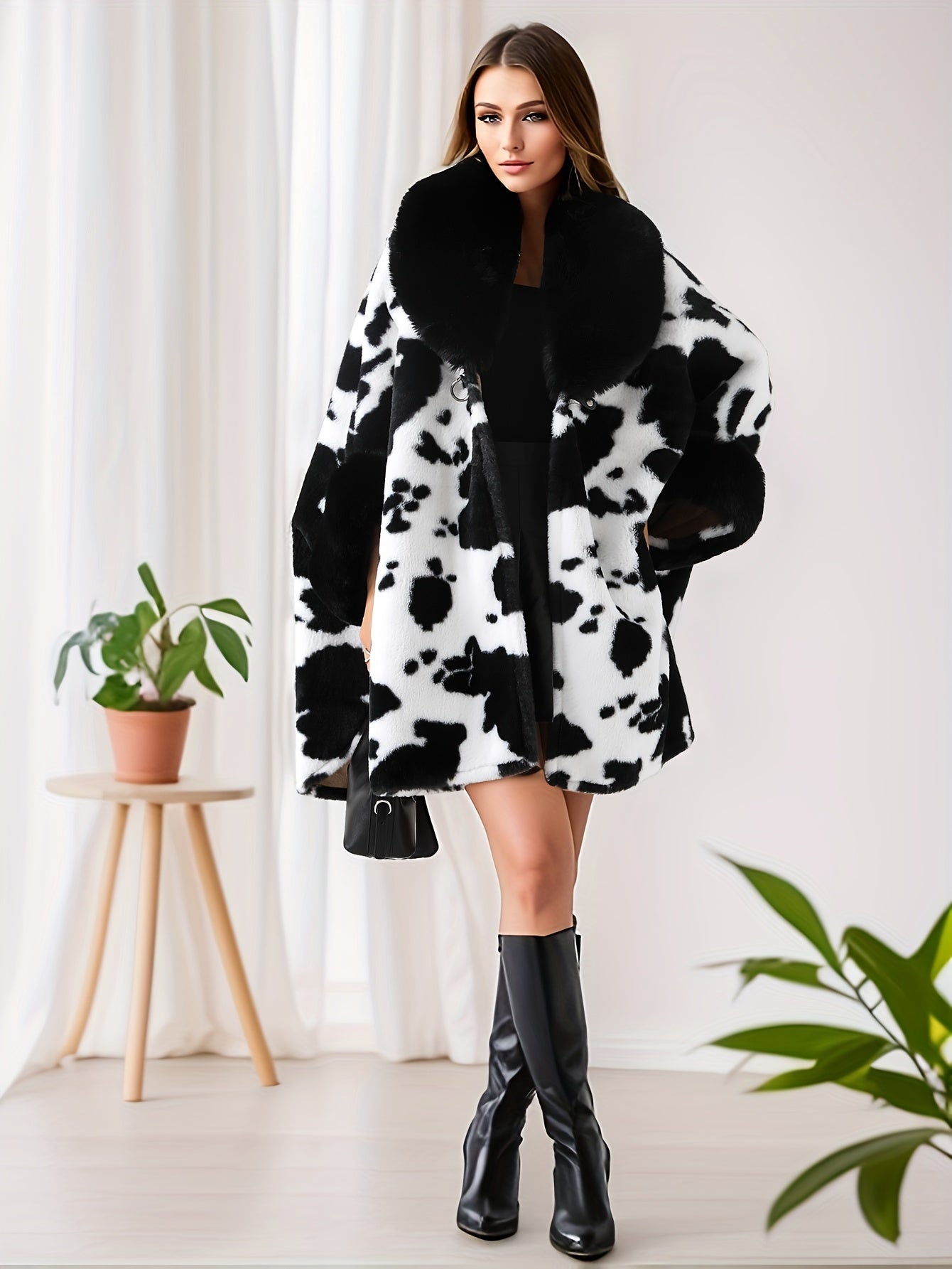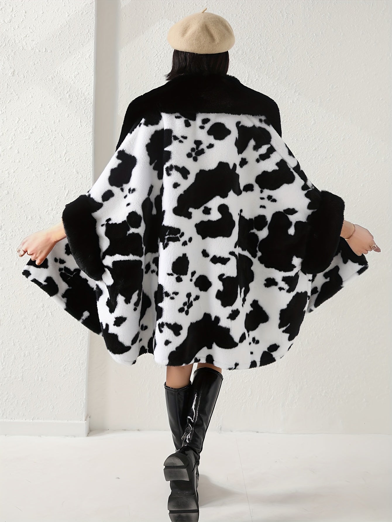 Hayvon naqshli qalin sun'iy mo'ynali yarasa uslubidagi kardigan.