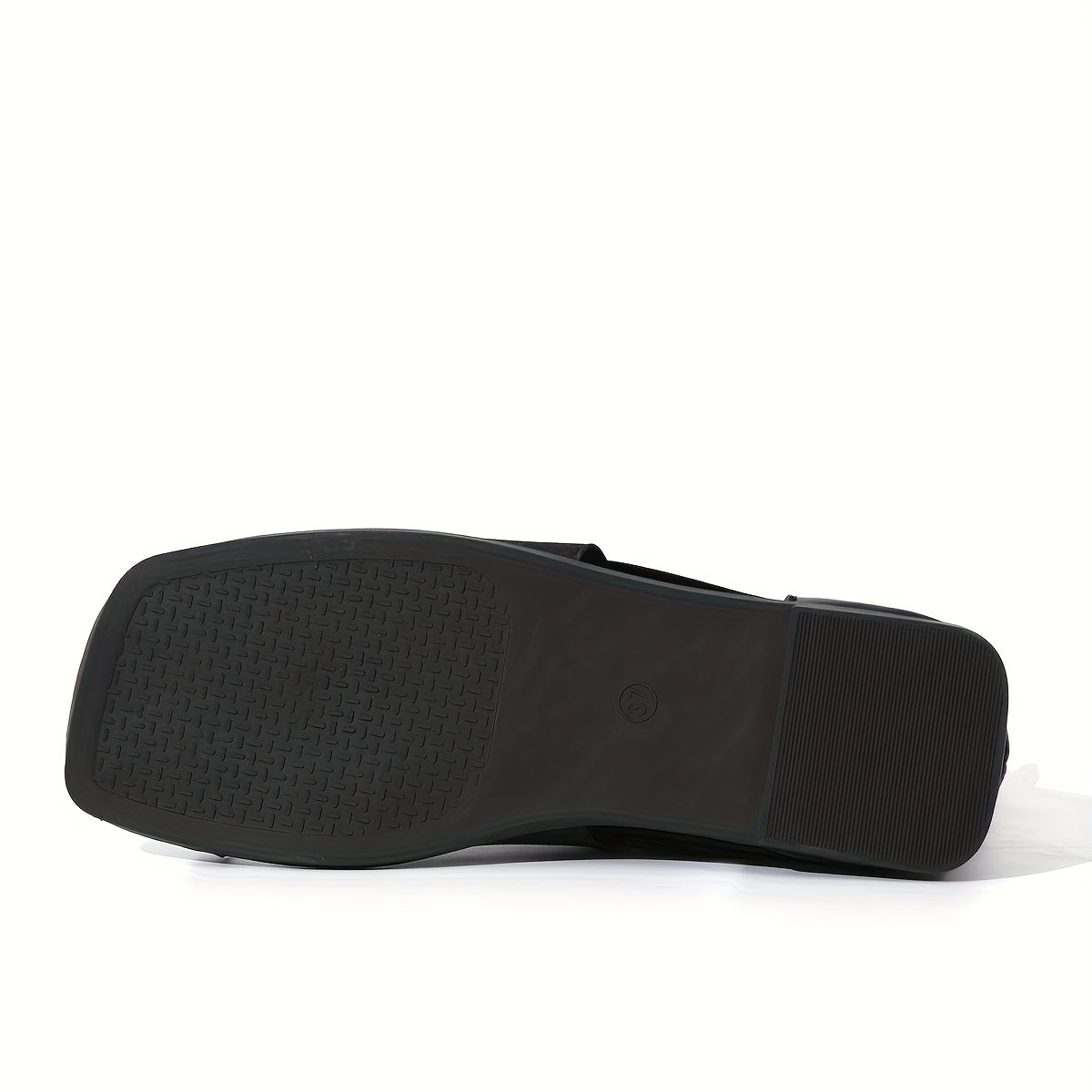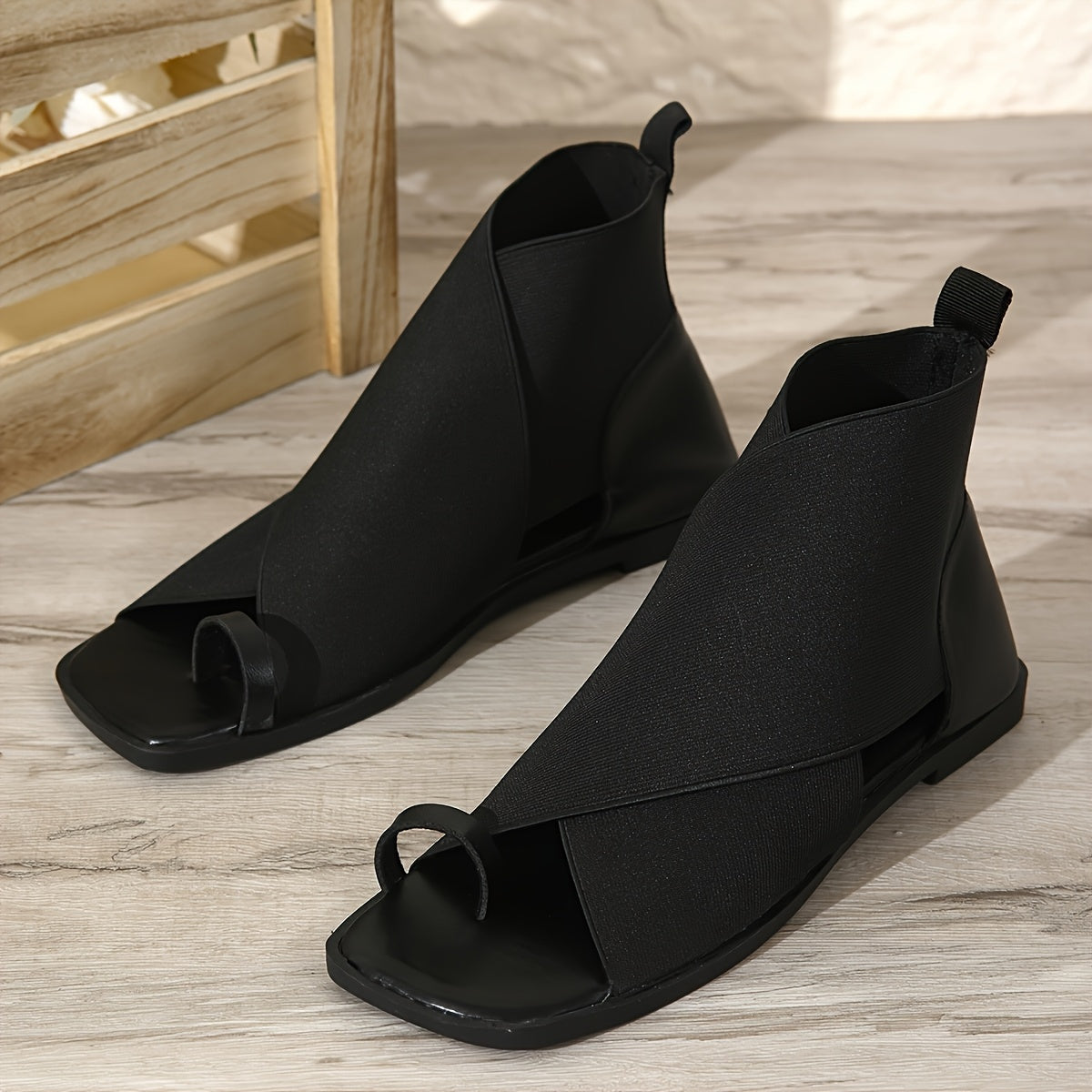 Qalin tovonli moda sandallari, barmoq bog'ichli, ikki qatlamli sintetik materialdan tayyorlangan.