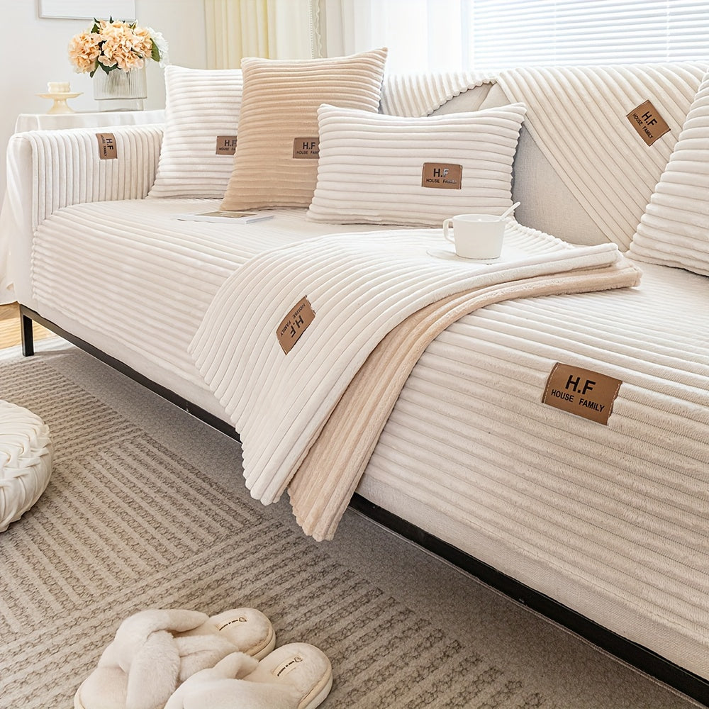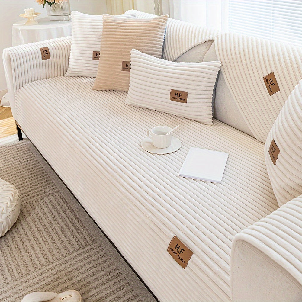 Zamonaviy uslubda qalin plush divan qoplamasi, uyda yoki ofisda ifloslanish, sirpanish, chizish va uy hayvonlaridan himoya qilish uchun.