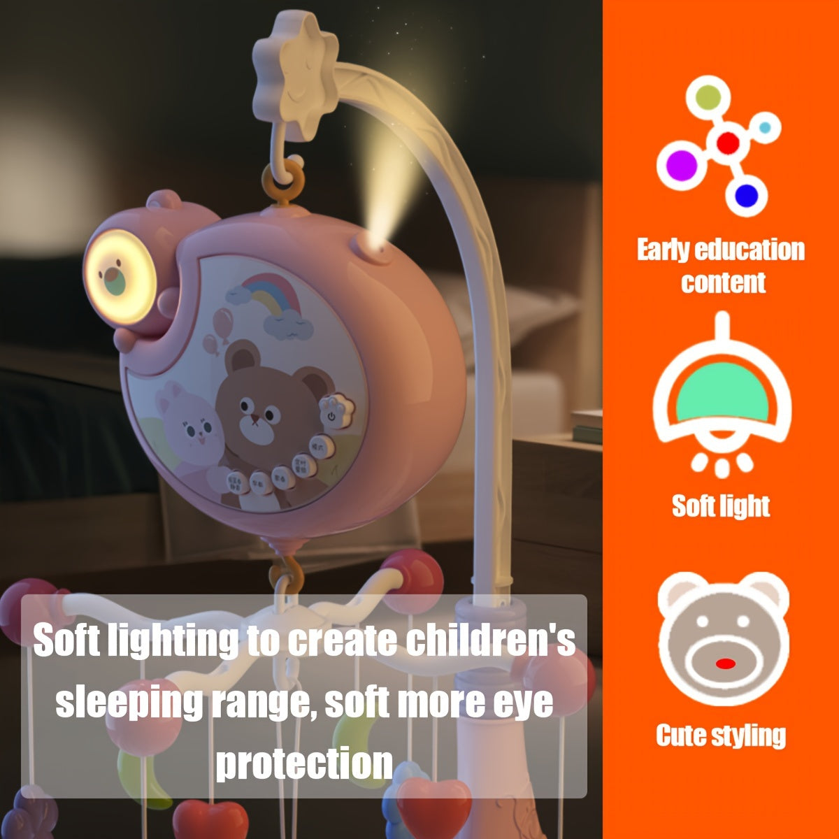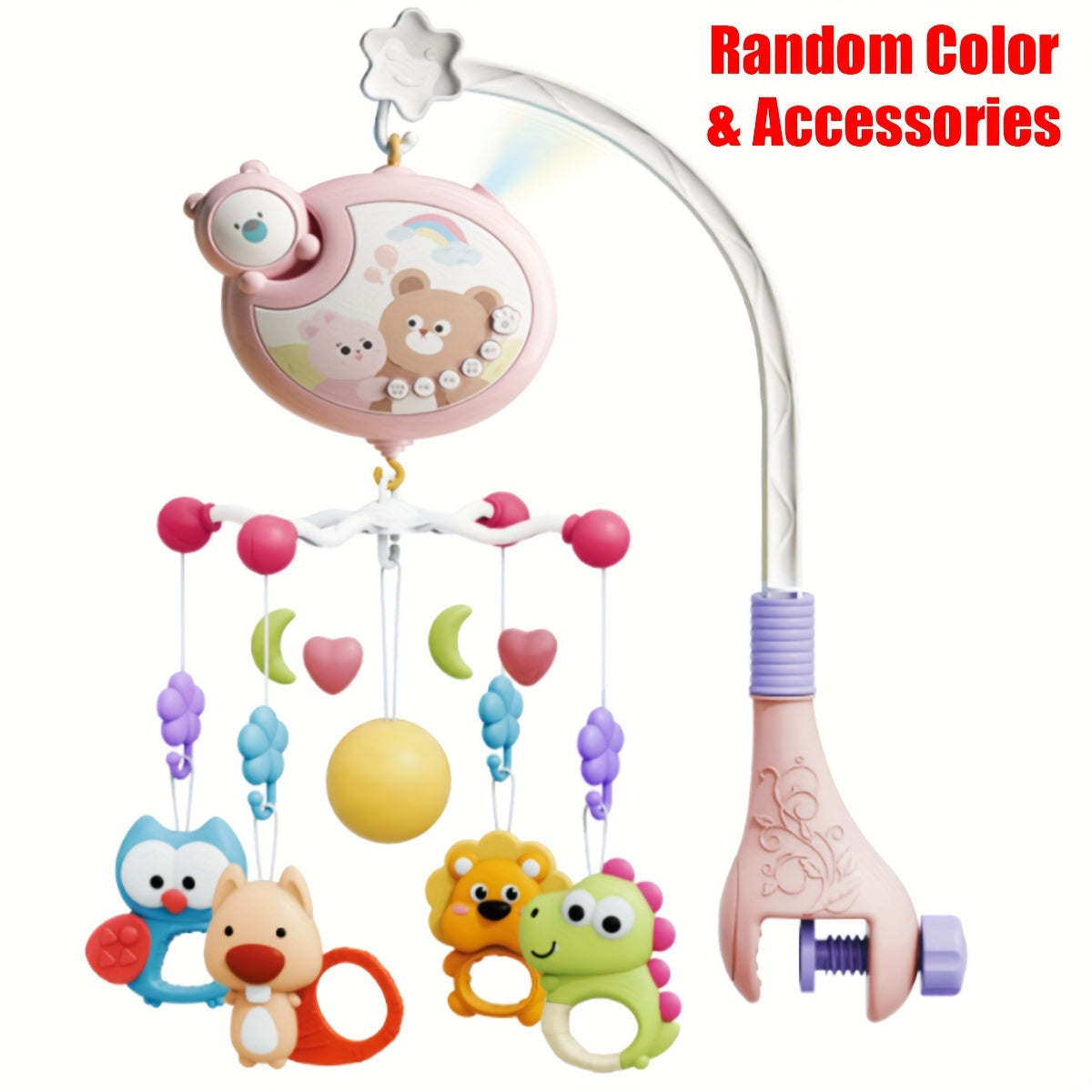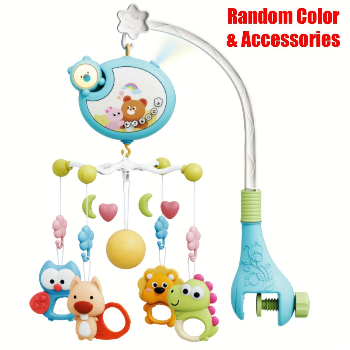 Bolalar uchun yoritgichli mobil, musiqa va aylanuvchi o'yinchoqlar bilan, BPAsiz plastmassa, aralash ranglar
