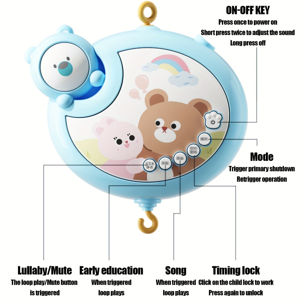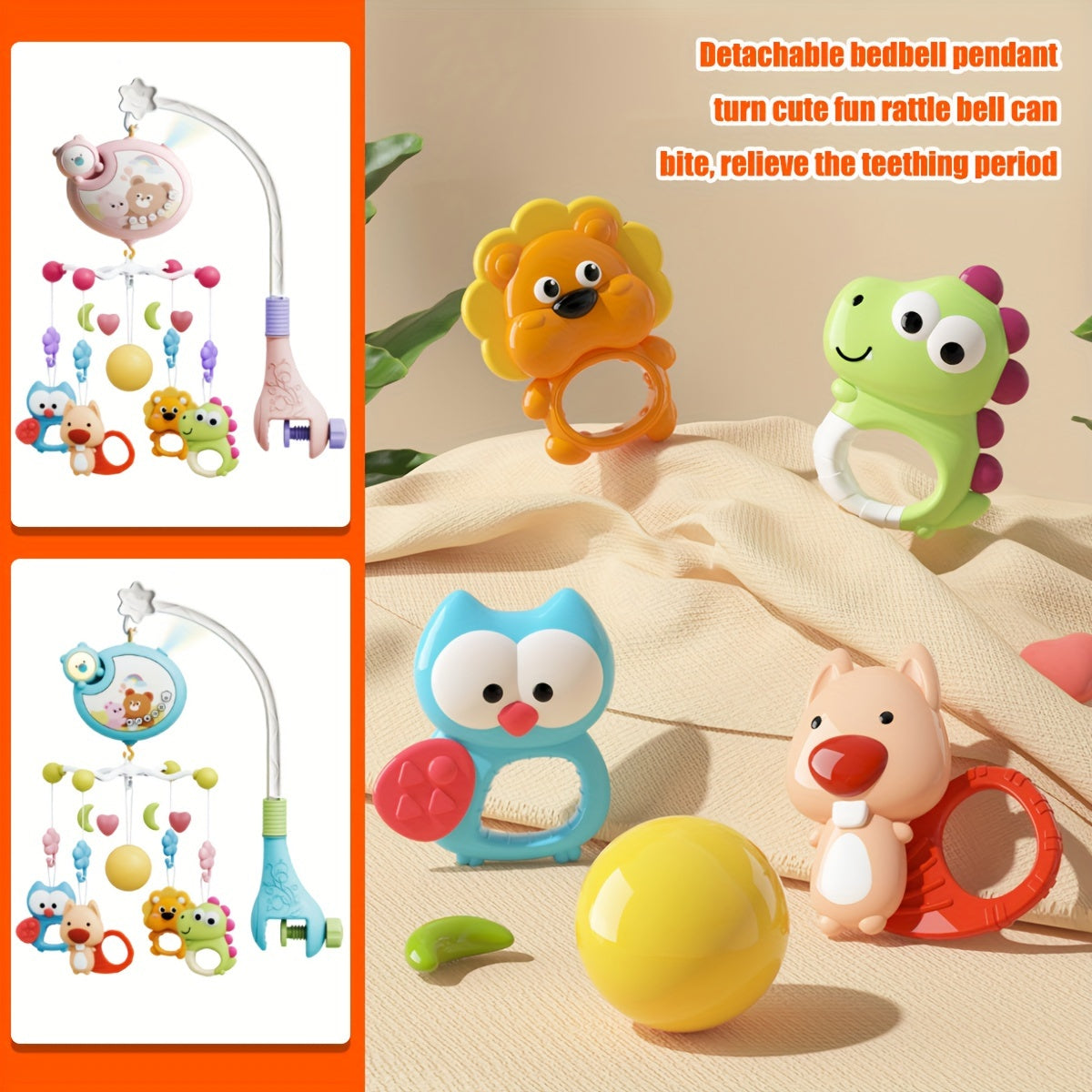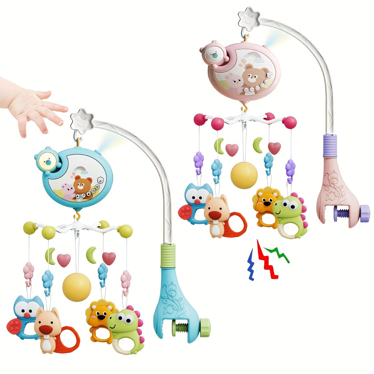 Bolalar uchun yoritgichli mobil, musiqa va aylanuvchi o'yinchoqlar bilan, BPAsiz plastmassa, aralash ranglar