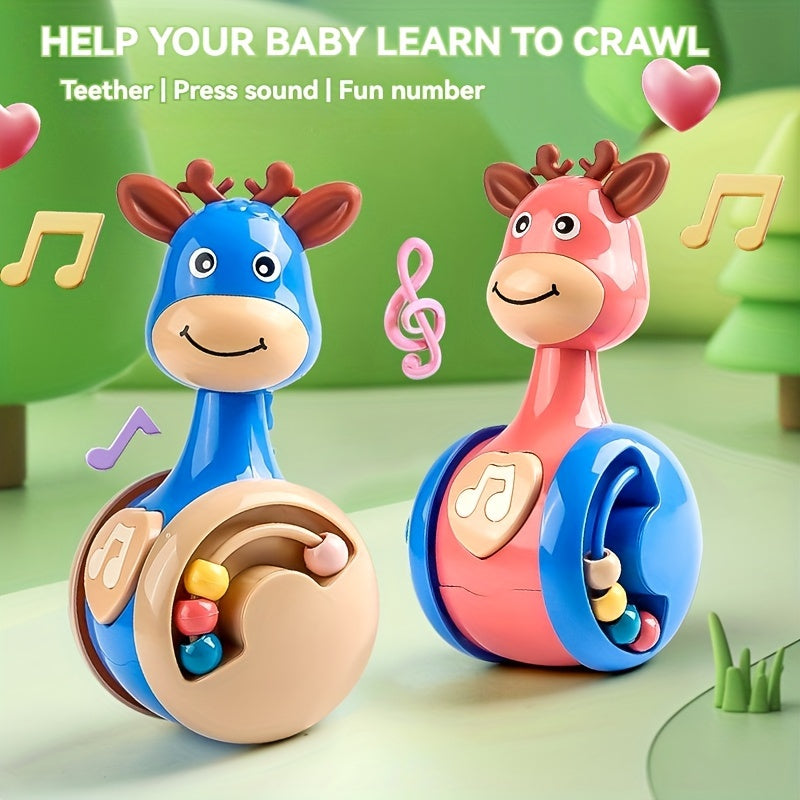 Bolalar uchun Musiqali Giraffa Tumbler O'yinchoq Interaktiv Qadam qo'yish Hamkori Ovoz va Tilla bilan