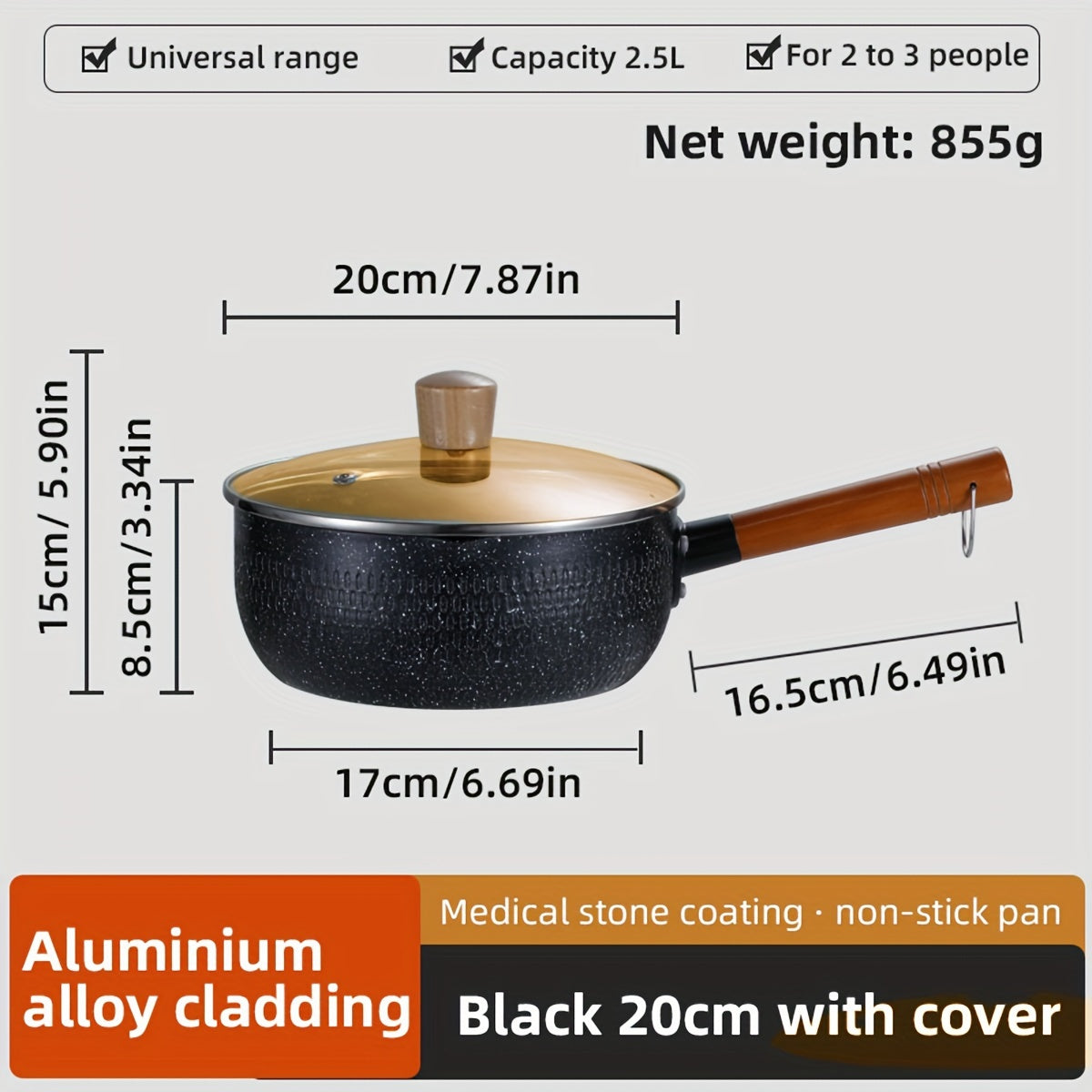 Ushbu yopishqoq bo'lmagan alyuminiy qozon sho'rva, sut va makaron tayyorlash uchun mo'ljallangan. U induktsion pechlar bilan mos keladi va uy oshxonalarida foydalanish uchun ideal.